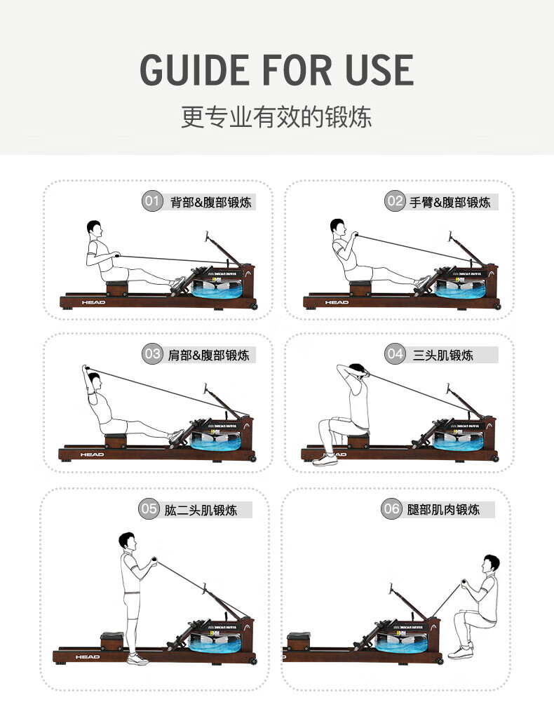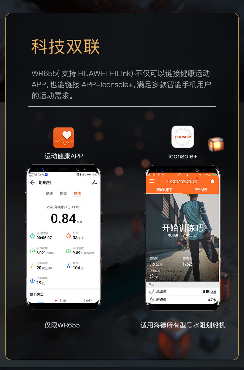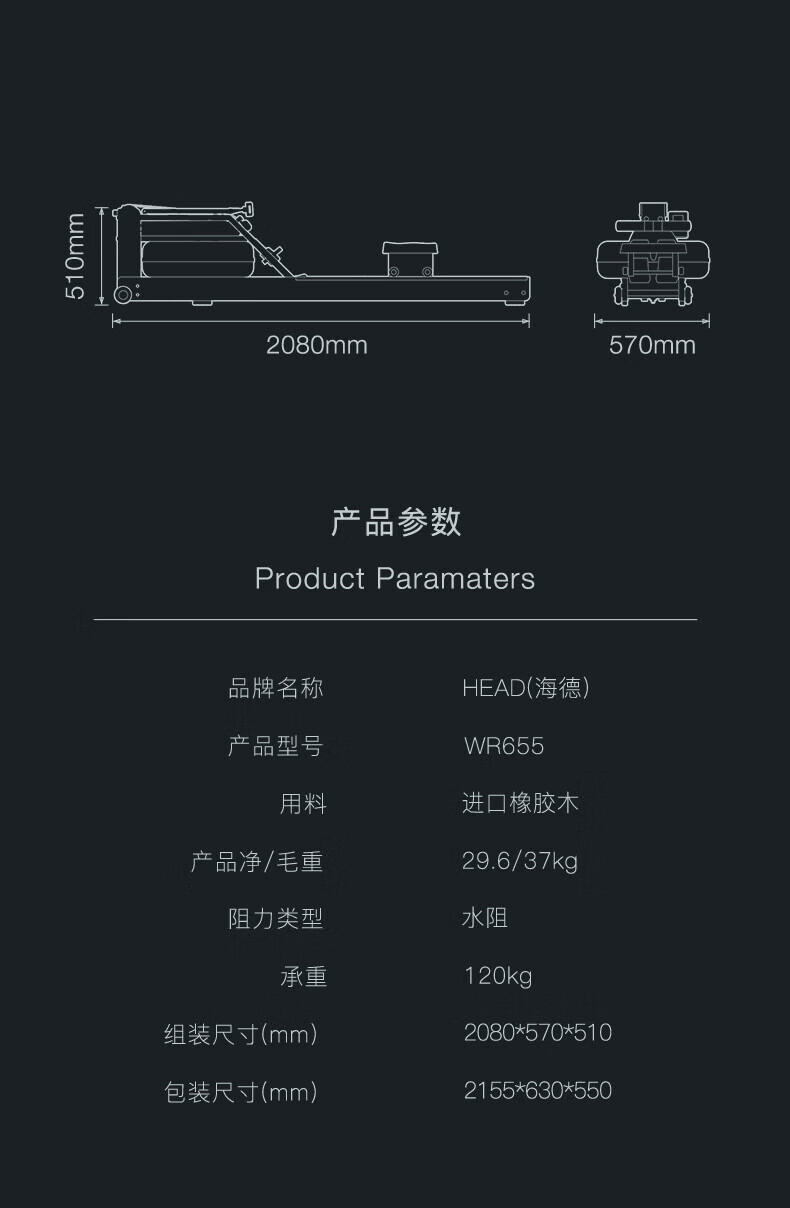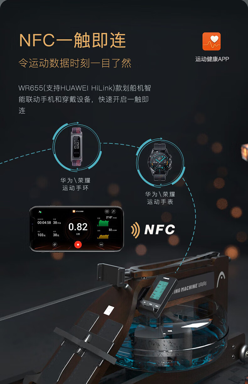 HEAD smart water resistance rowing machine WR655 (supports HUAWEI HiLink) imported rubber wood%7CWR655 upgraded dark version%7