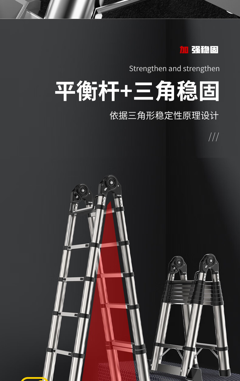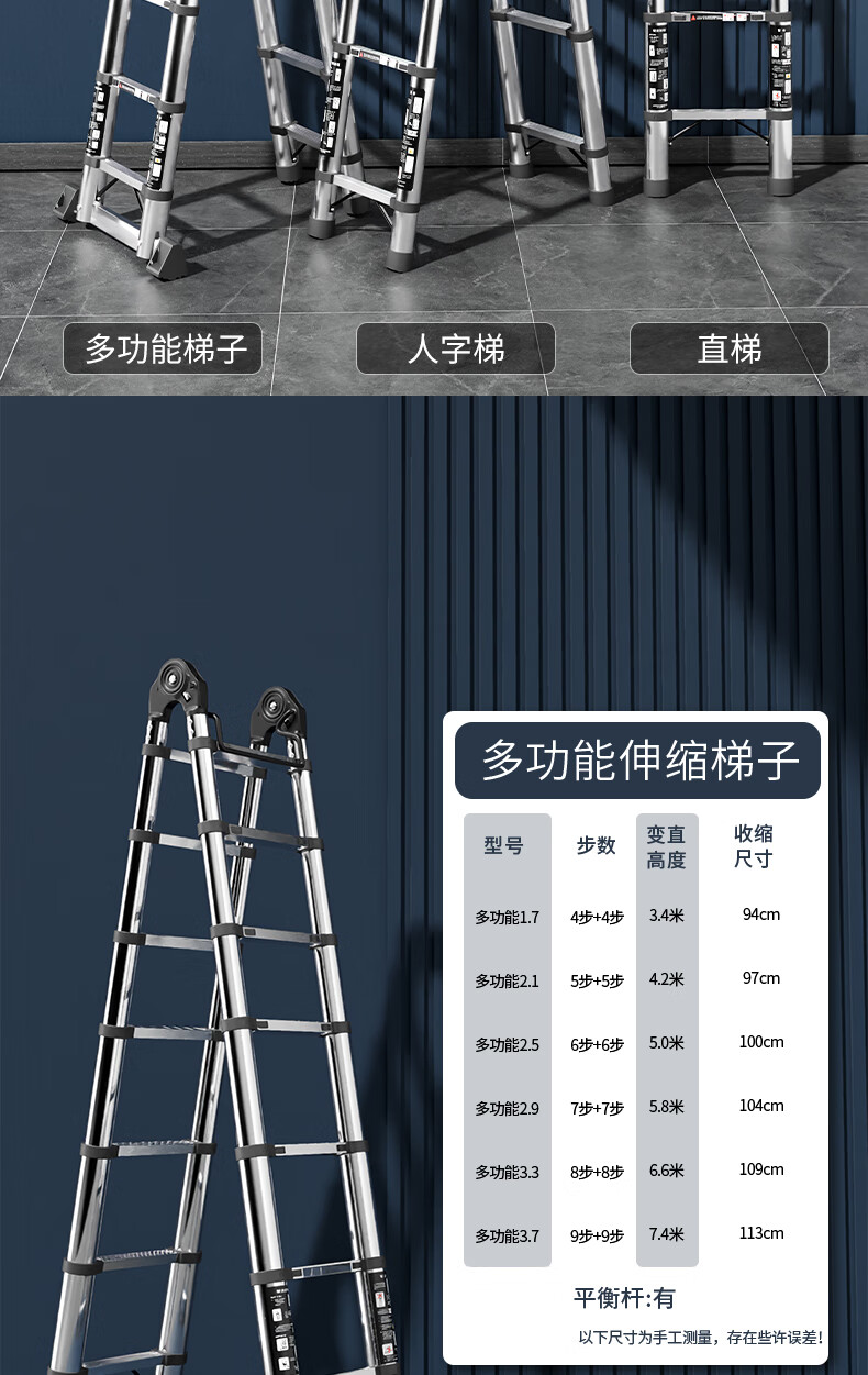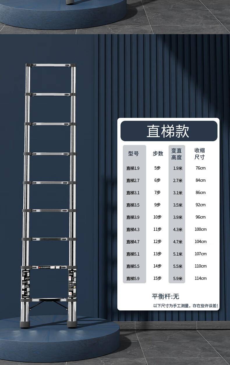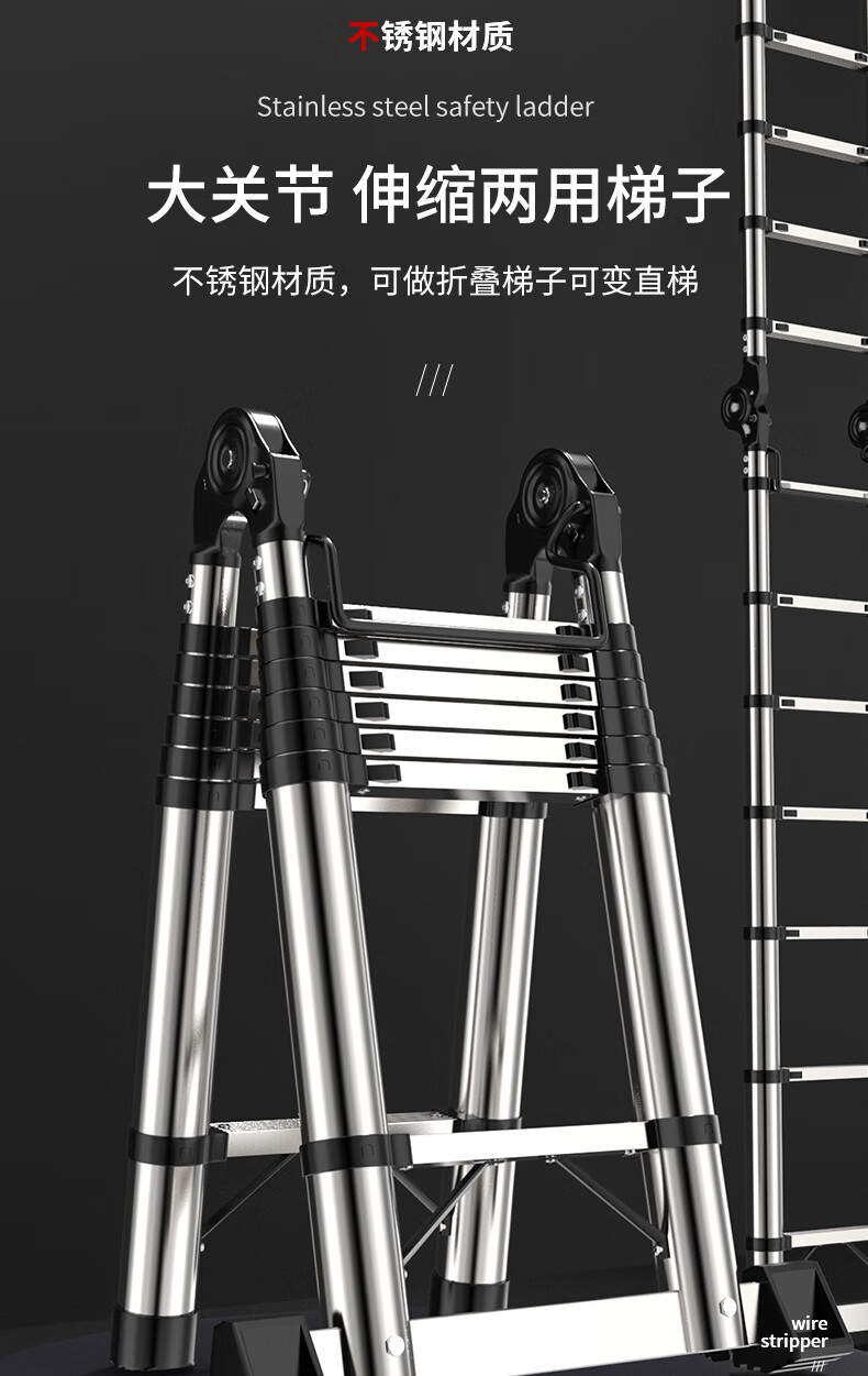 Jiangzhicheng telescopic ladder household herringbone ladder stainless steel bamboo ladder portable folding ladder multi-functional lift staircase stainless steel straight ladder 4.3 for use against the wall