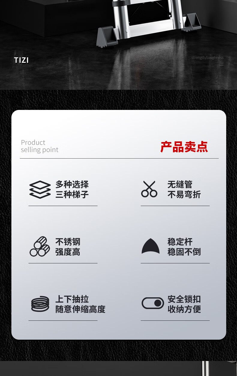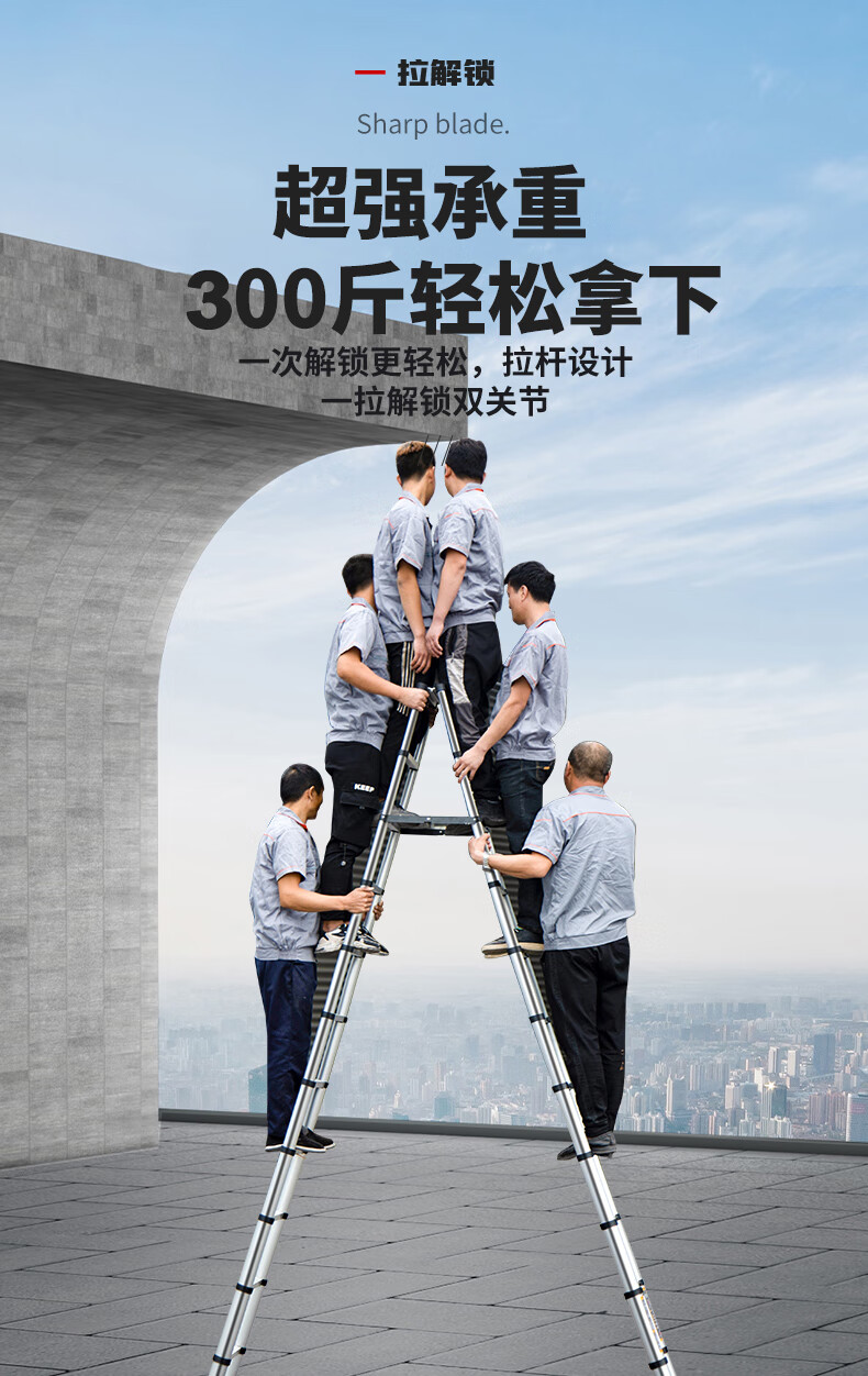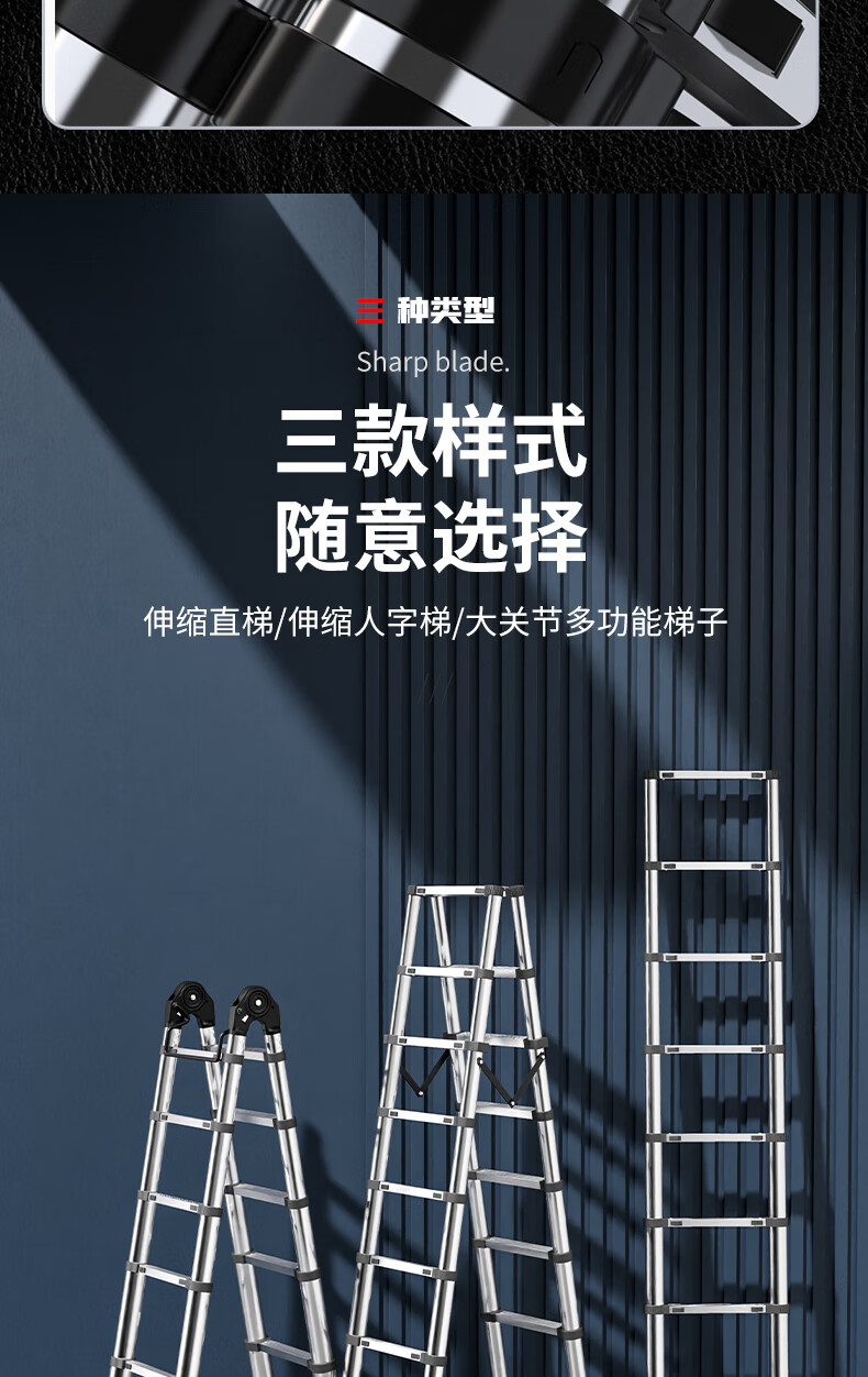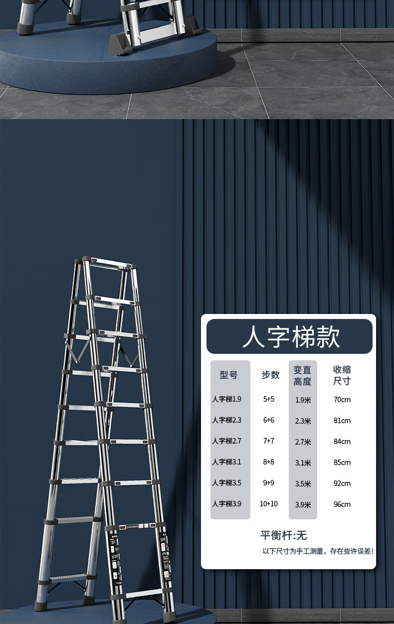 Jiangzhicheng telescopic ladder household herringbone ladder stainless steel bamboo ladder portable folding ladder multi-functional lift staircase stainless steel straight ladder 4.3 for use against the wall