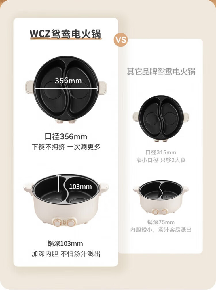 WCZ German Yuanyang Pot household special electric hot pot cooking pot barbecue split one-piece dual-purpose multi-functional pot 3-4 large capacity 8 liter micro-pressure Yuanyang Pot independent temperature control 35.6 inches