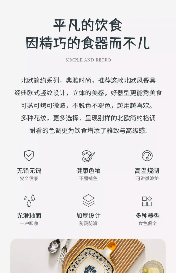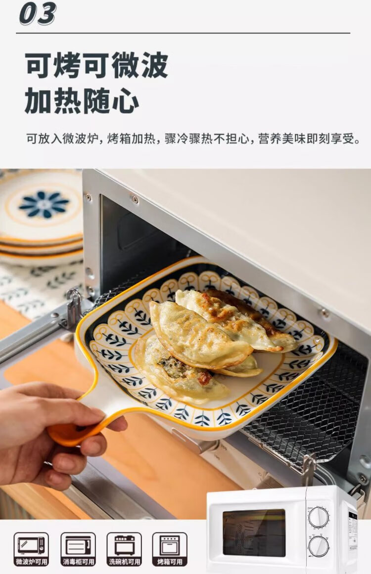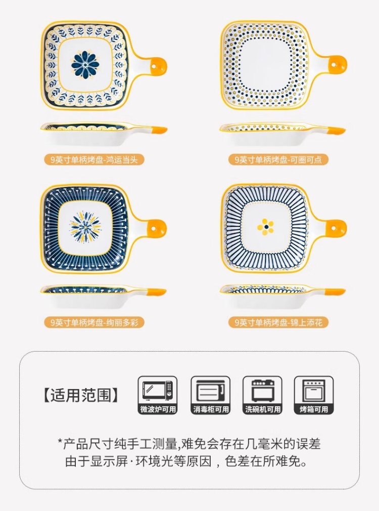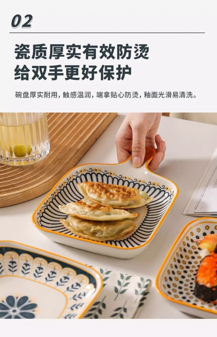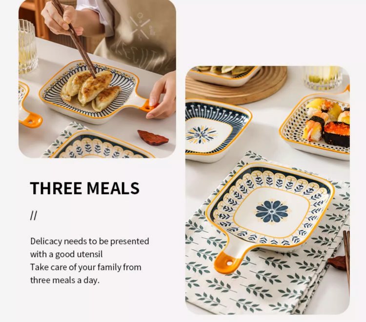 Persson Nordic plate dish household ceramic snack bowl dish tableware oven handle baking pan creative dumpling plate breakfast plate 9-inch handle plate-Hongyun Dangtou