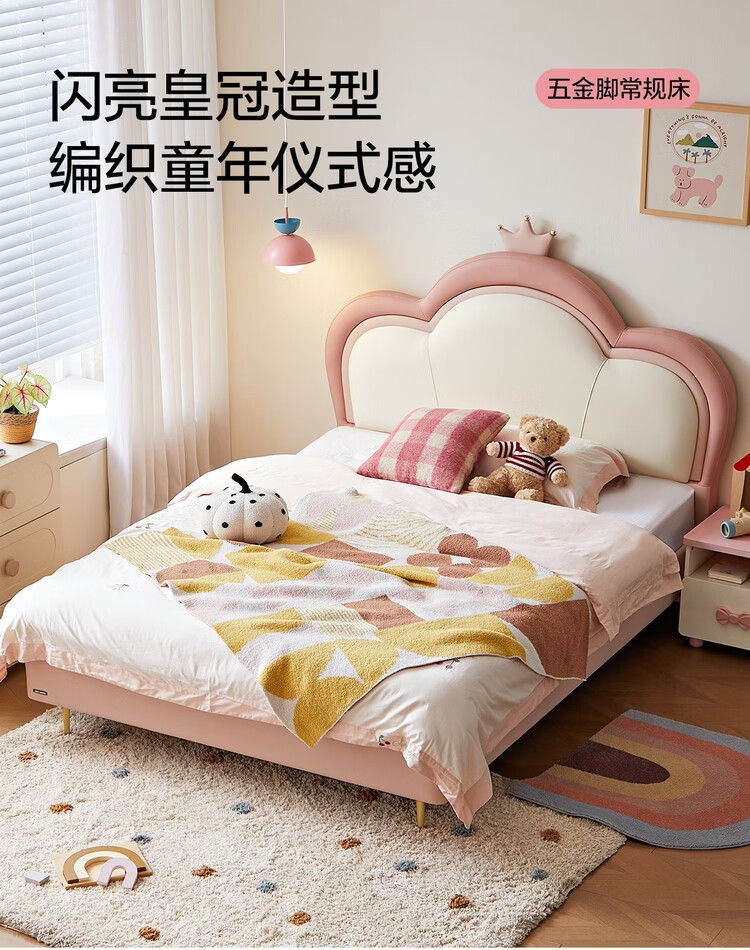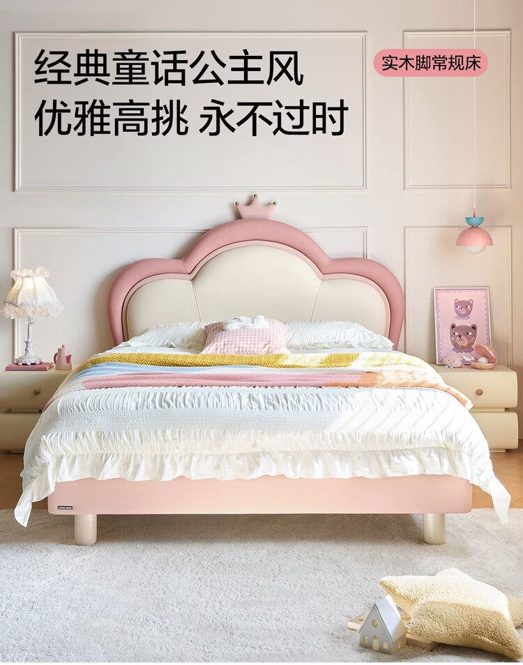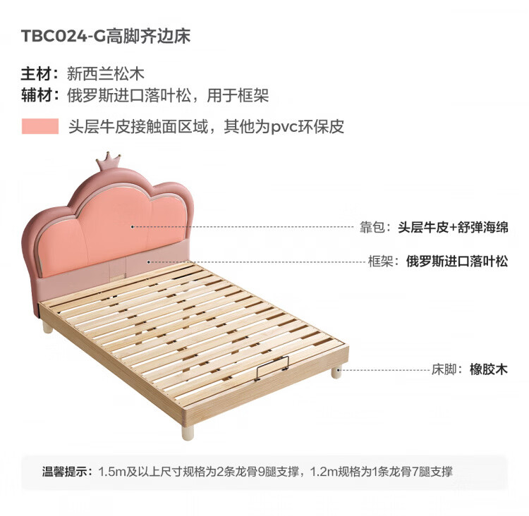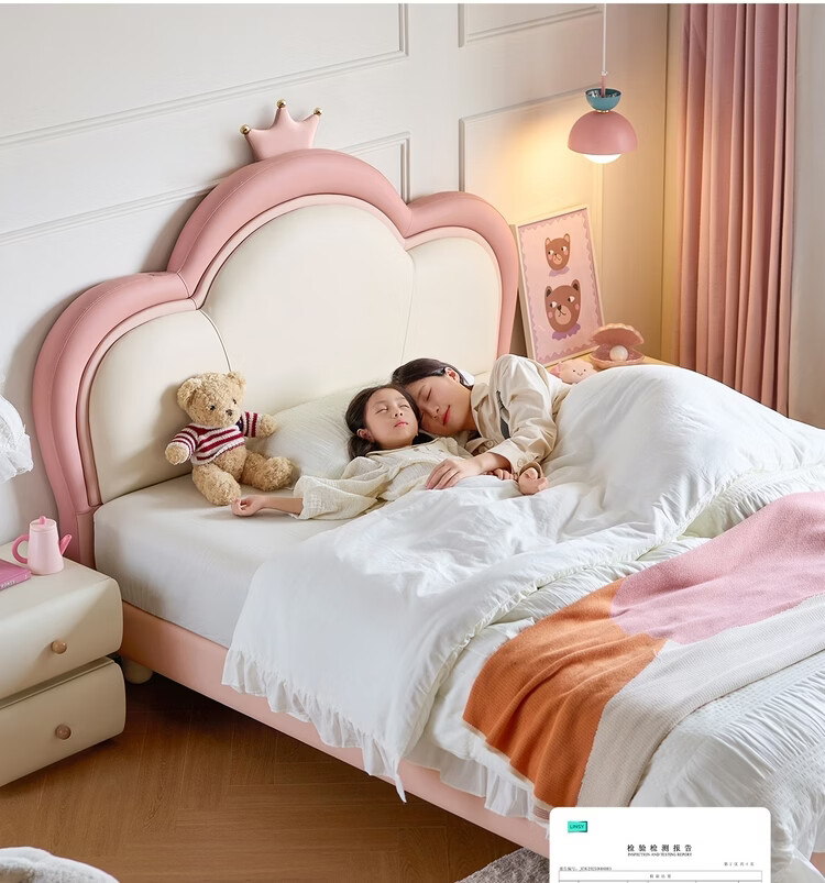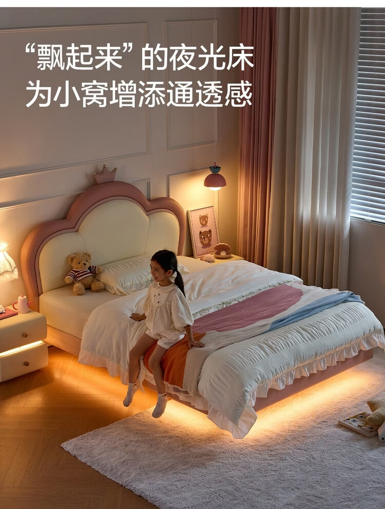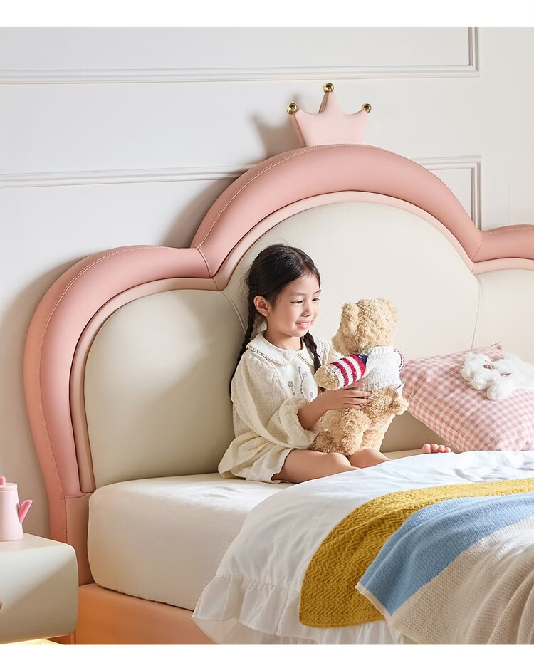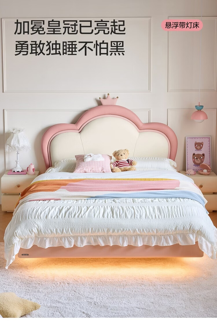 Lin's Home Children's Bed Princess Bed Double Bed Girl Sensor Light Suspended Bed Crib Single Bed Furniture Queen Bed TBC024 Genuine Leather | 100% Solid Wood Frame High Bed 1.2x2 Meters Bed + 20cm Spine Protector Mat (CKD103B)