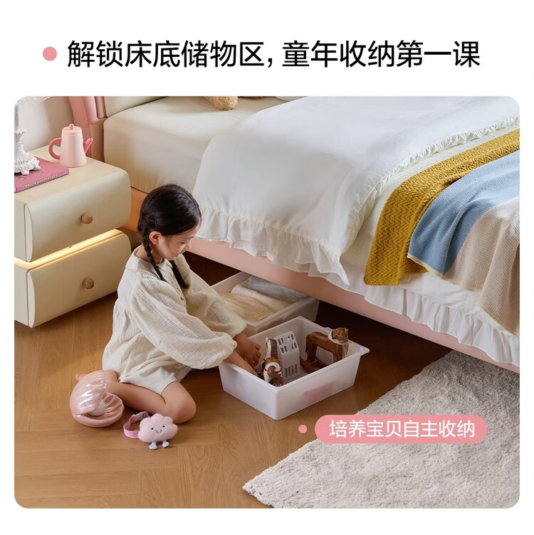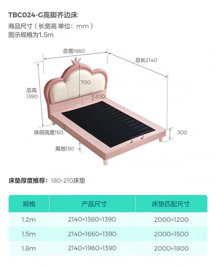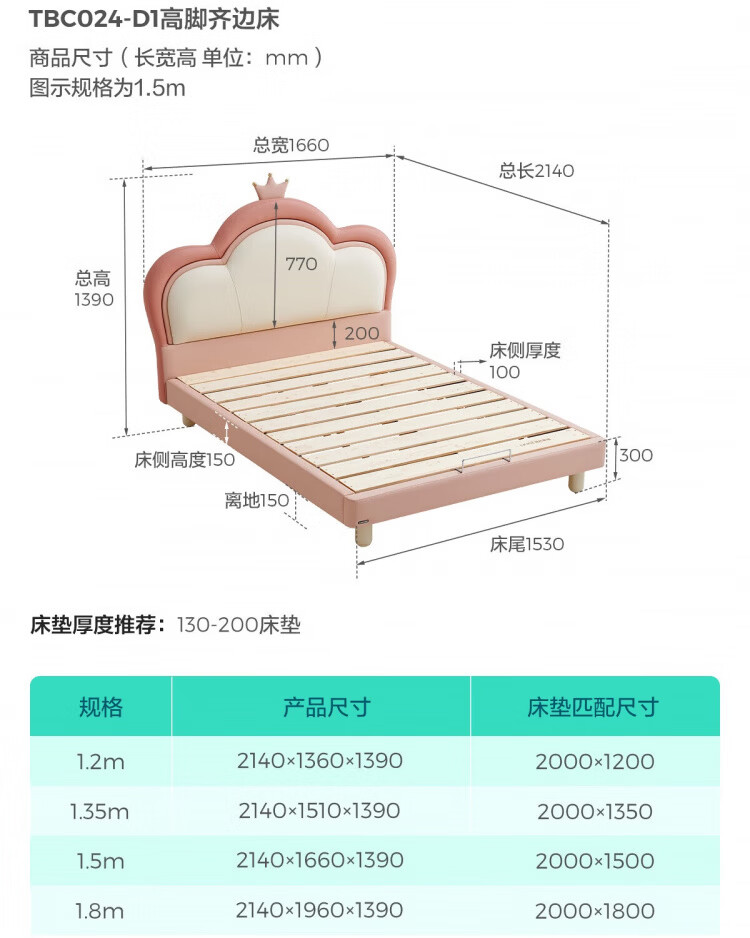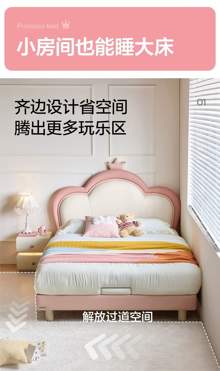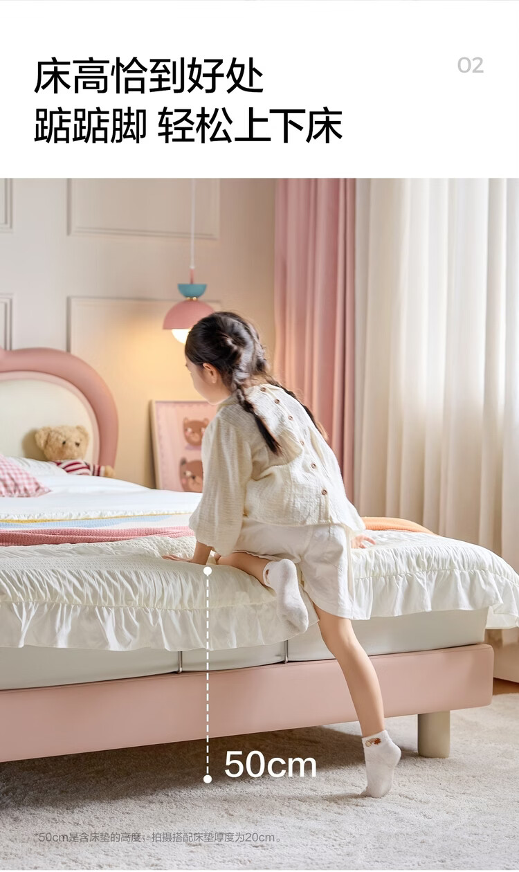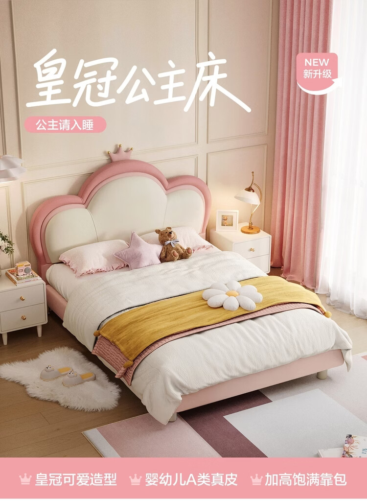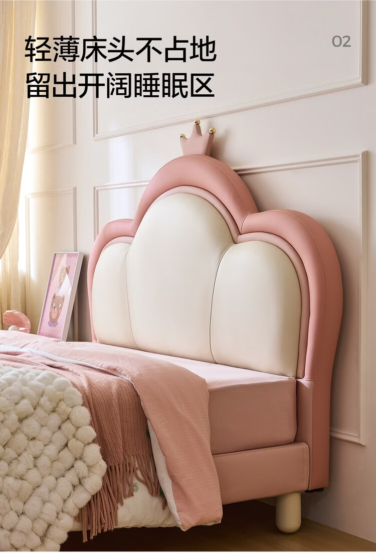 Lin's Home Children's Bed Princess Bed Double Bed Girl Sensor Light Suspended Bed Crib Single Bed Furniture Queen Bed TBC024 Genuine Leather | 100% Solid Wood Frame High Bed 1.2x2 Meters Bed + 20cm Spine Protector Mat (CKD103B)