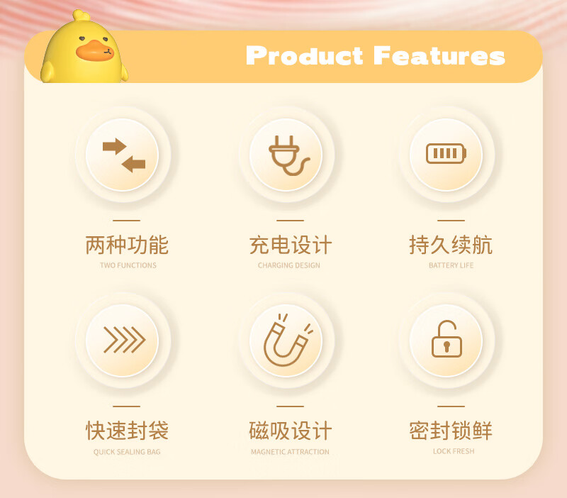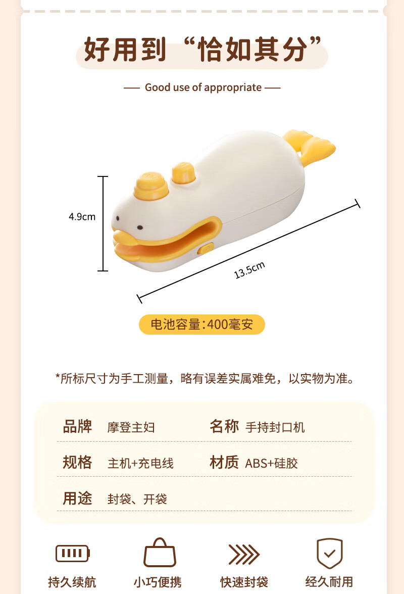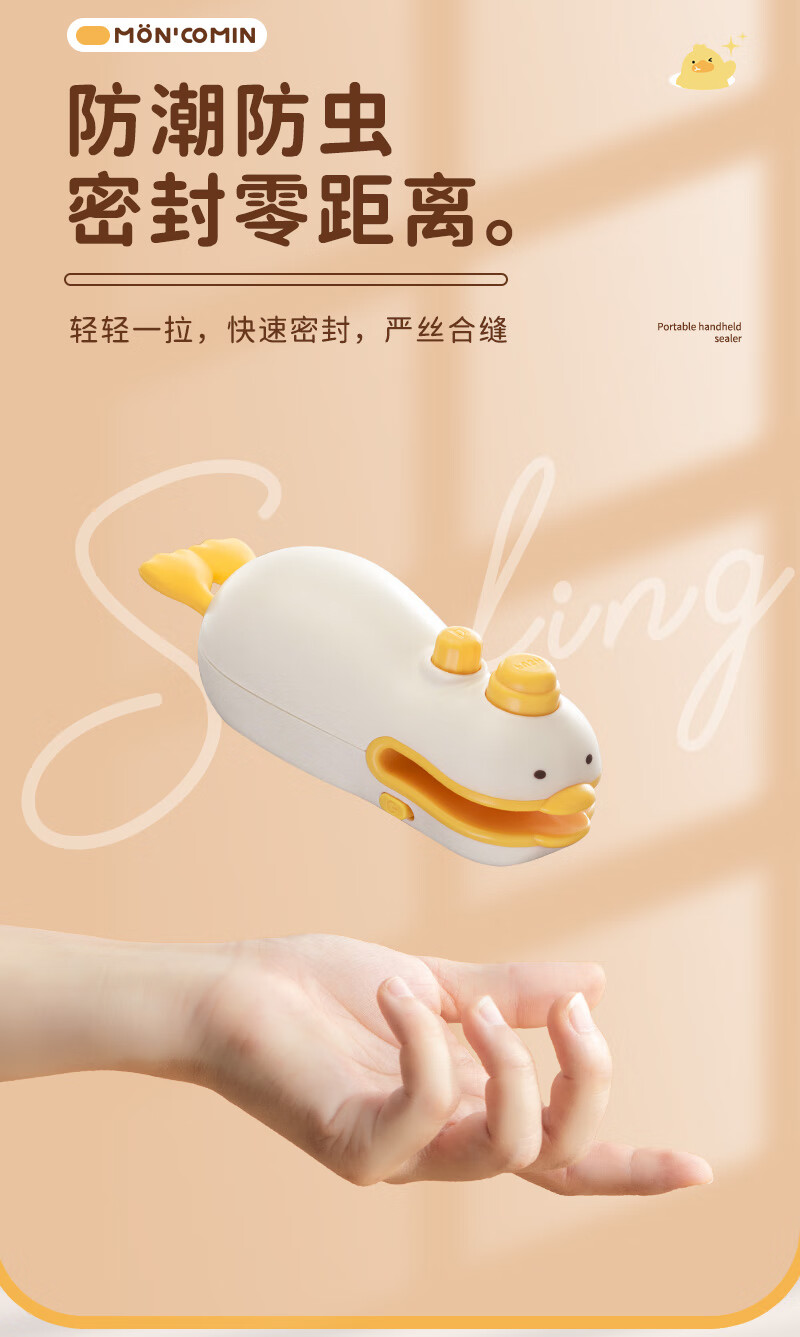 Modern housewife sealing machine mini portable small household plastic food packaging sealer snack sealing artifact long battery life yellow yellow duck sealing machine