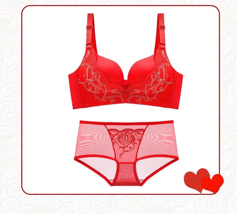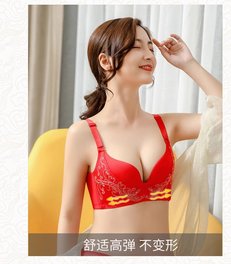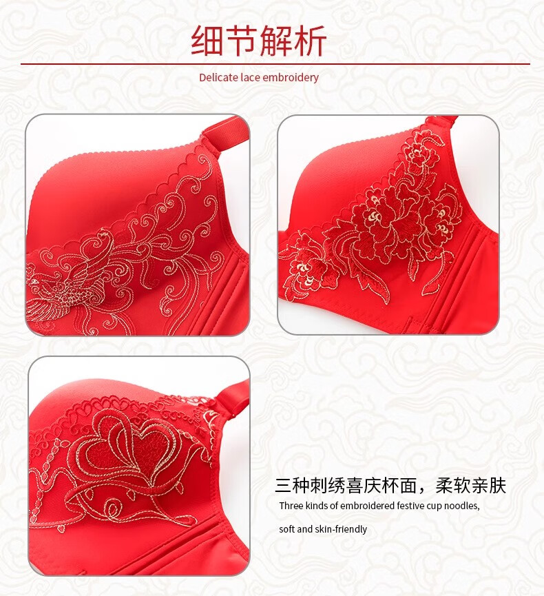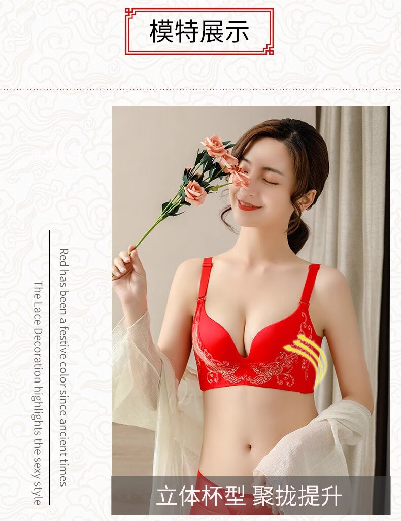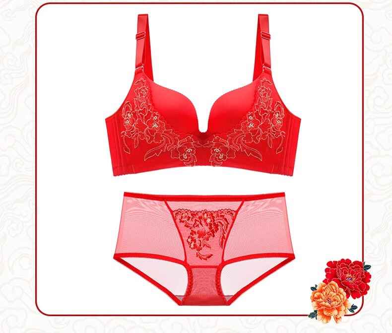 Victoria Palace Zodiac Year Bra Festive Wireless Underwear Sexy Lace Push Up Push Up Side Breast Bra Set Big Red Flowers Blooming Rich 80B 36B Medium Thick