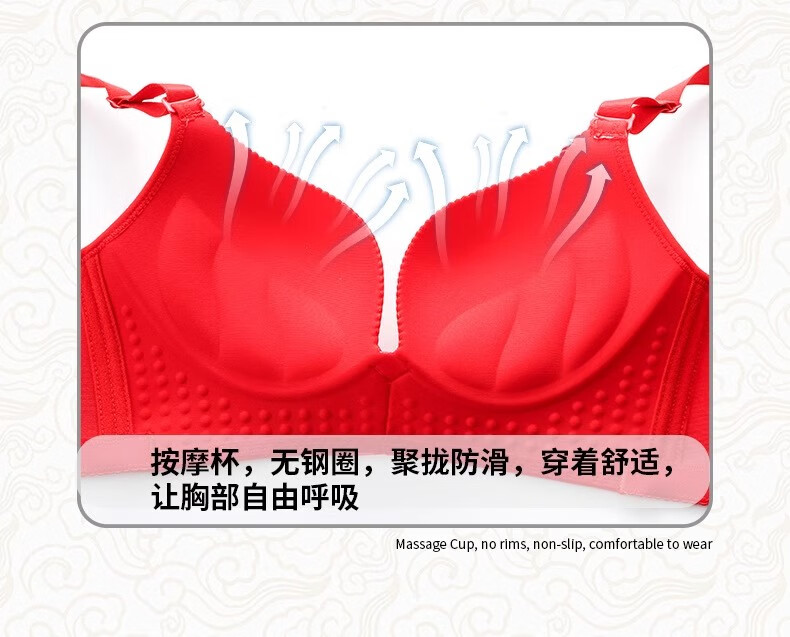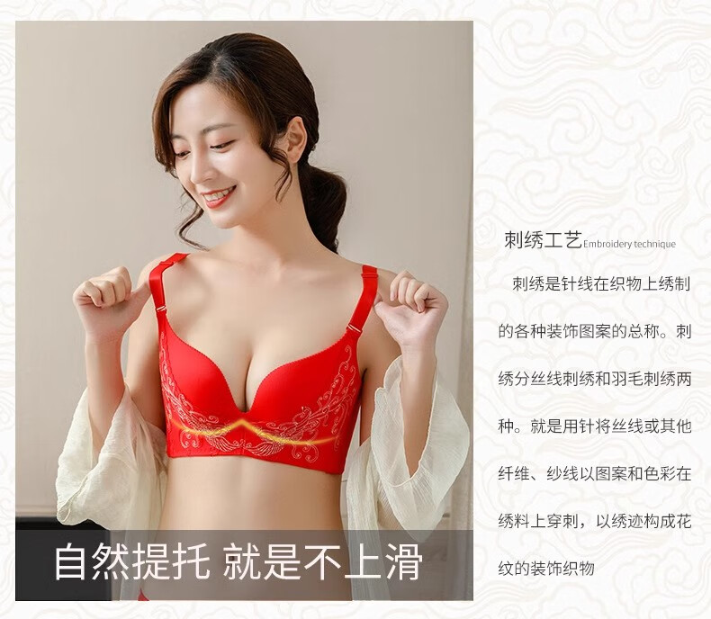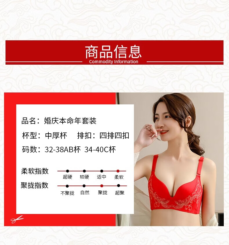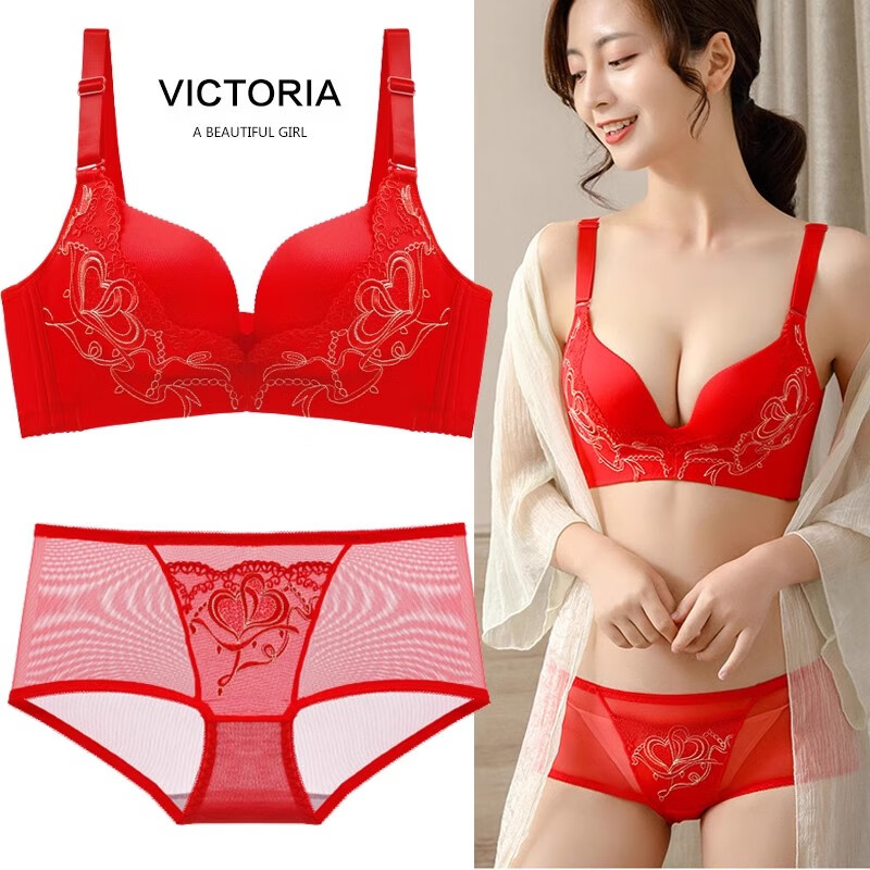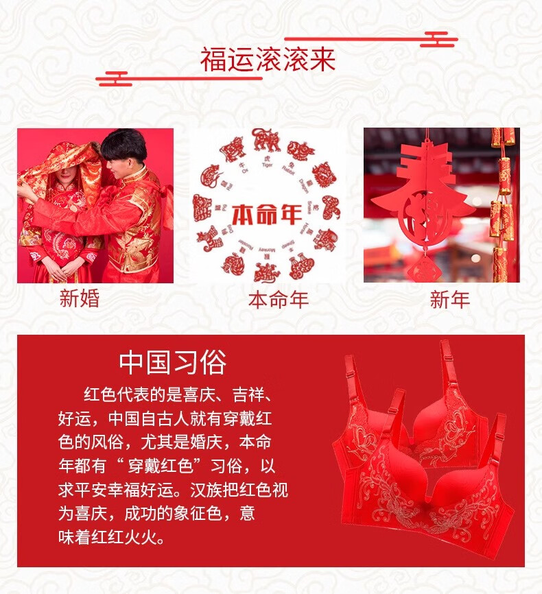 Victoria Palace Zodiac Year Bra Festive Wireless Underwear Sexy Lace Push Up Push Up Side Breast Bra Set Big Red Flowers Blooming Rich 80B 36B Medium Thick