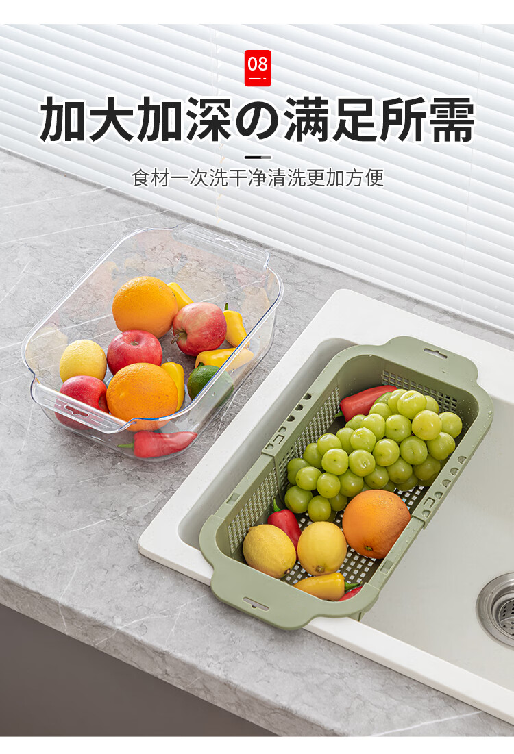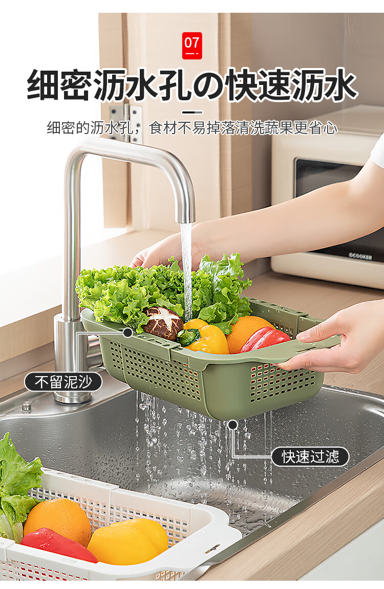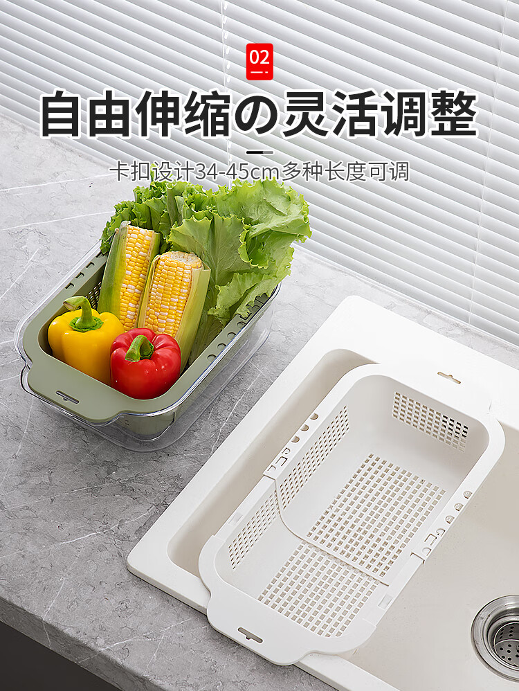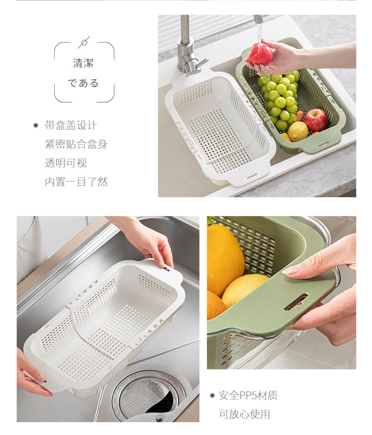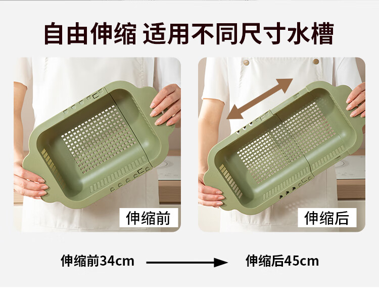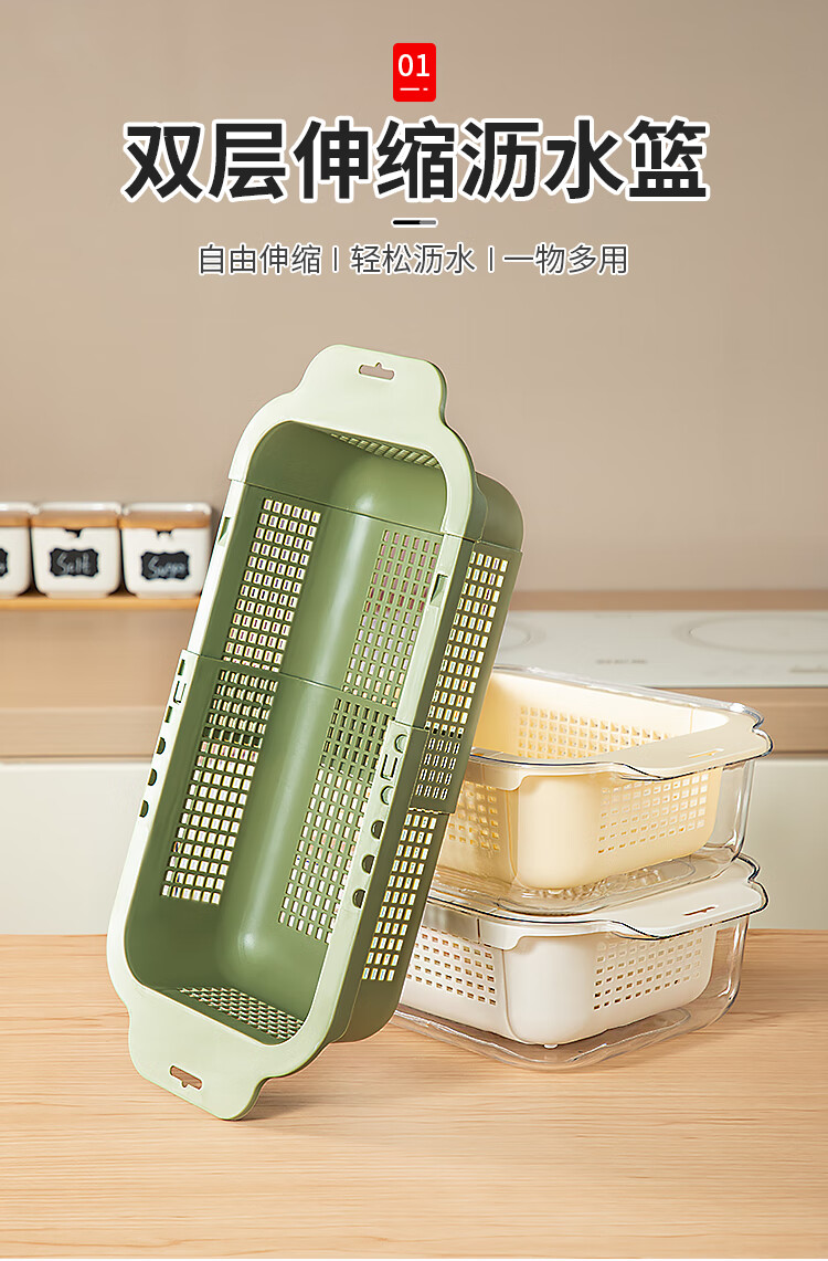 Home KATEI STORY Japanese sink drain basket double layer retractable sink basket kitchen fruit sink sink drain basket plastic double layer sink drain basket green 1 set