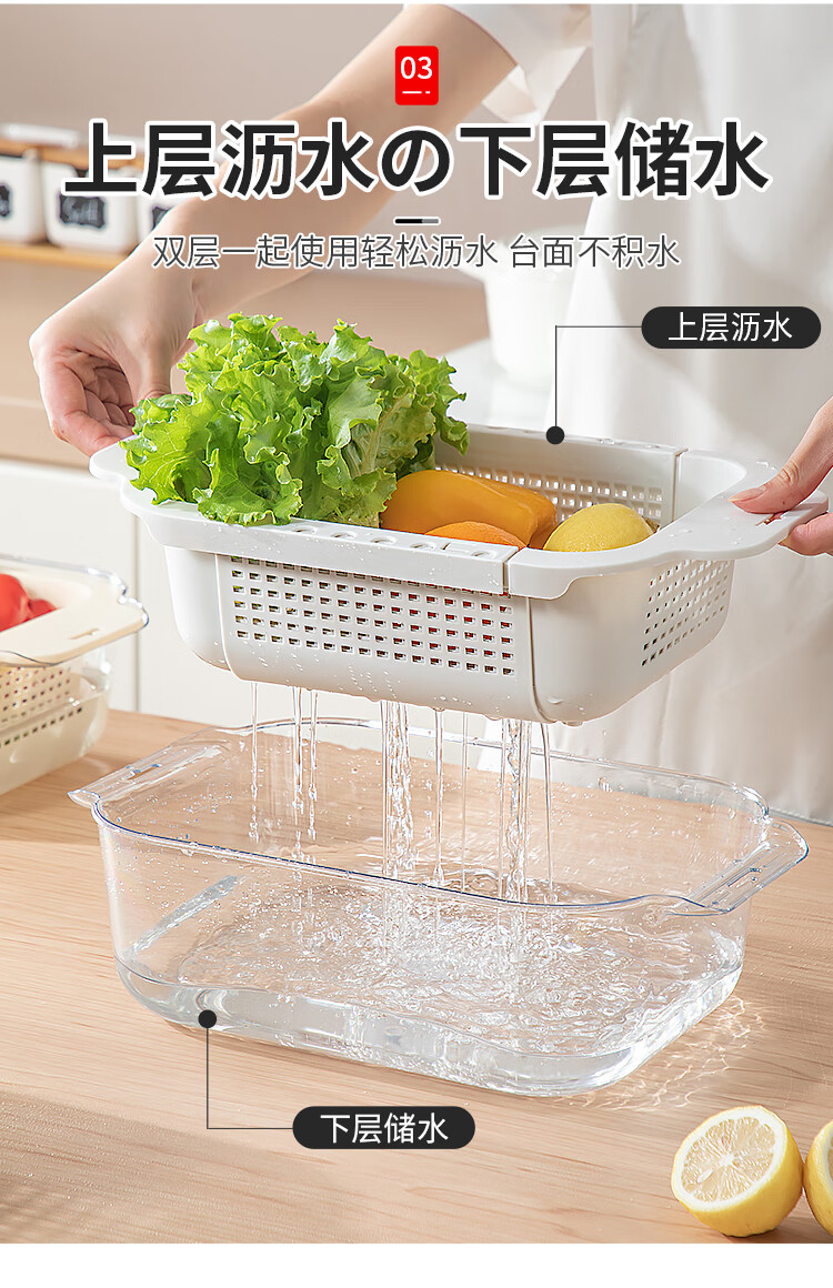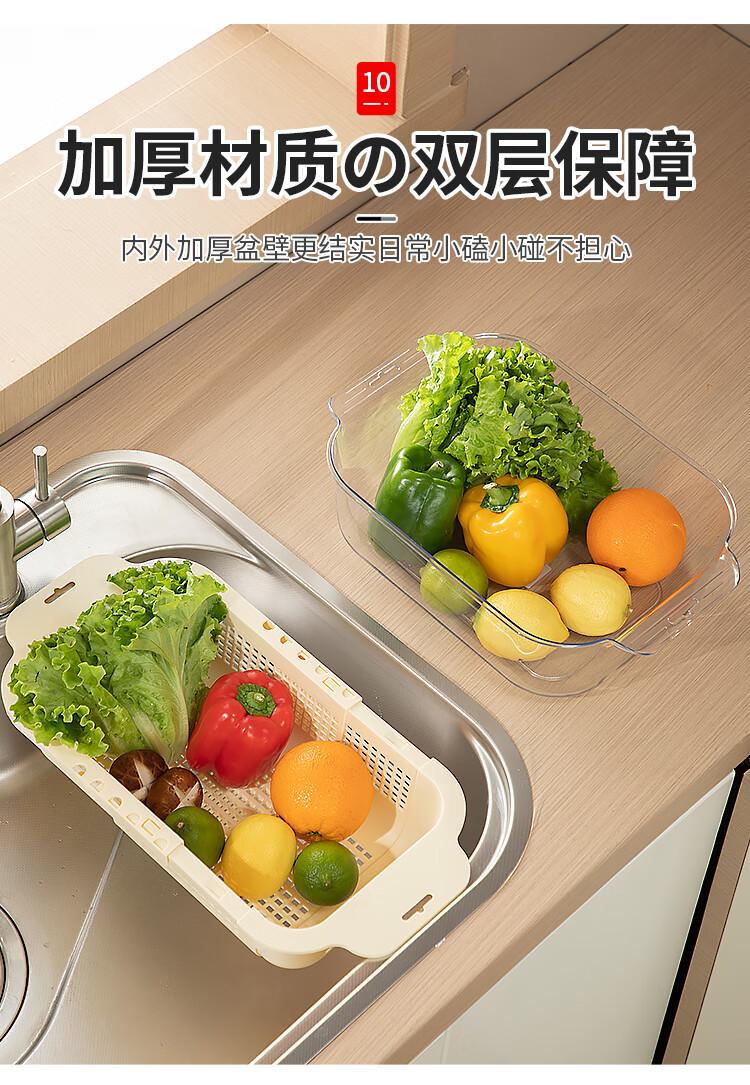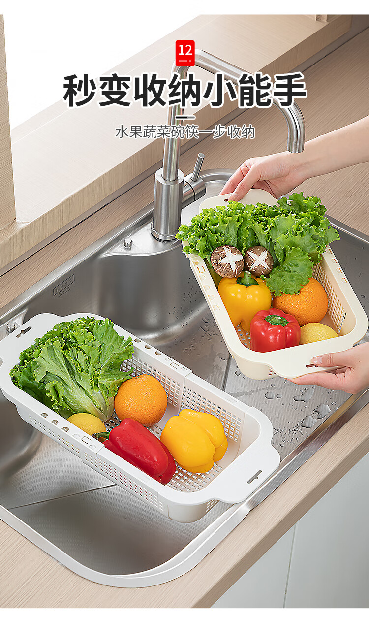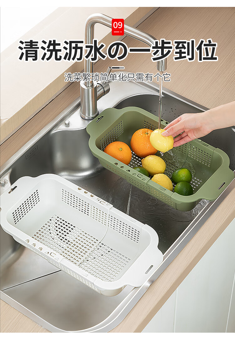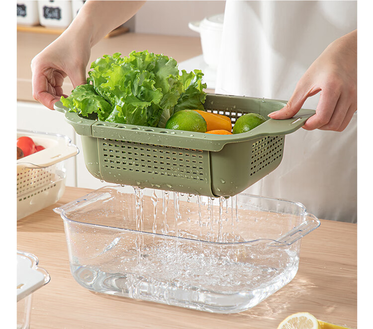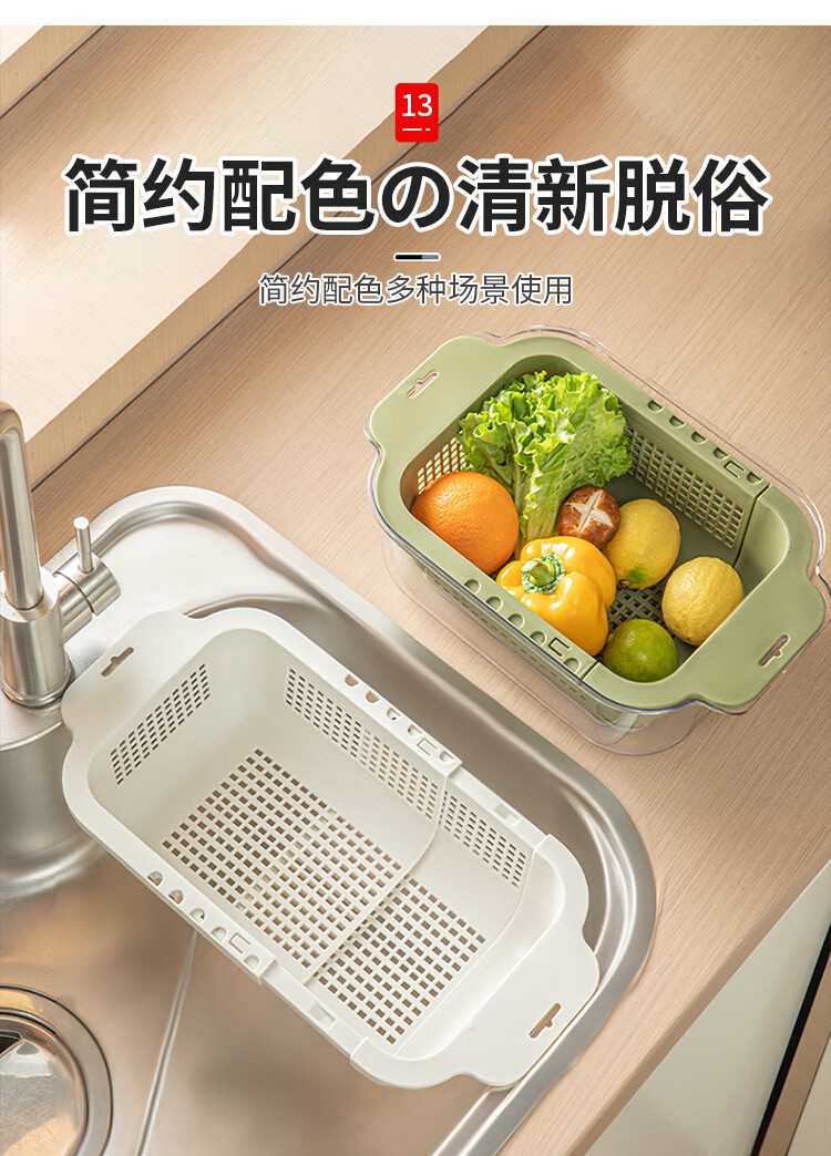 Home KATEI STORY Japanese sink drain basket double layer retractable sink basket kitchen fruit sink sink drain basket plastic double layer sink drain basket green 1 set