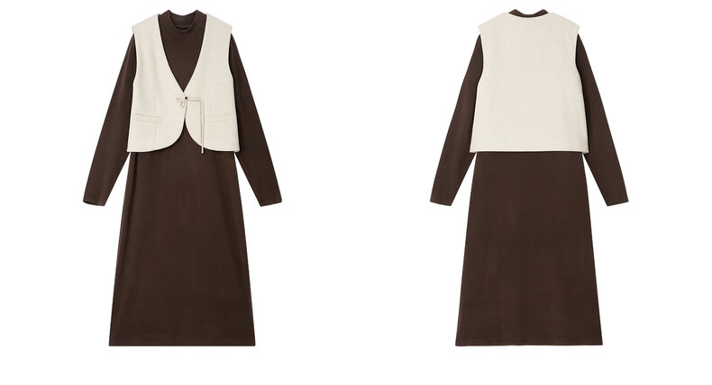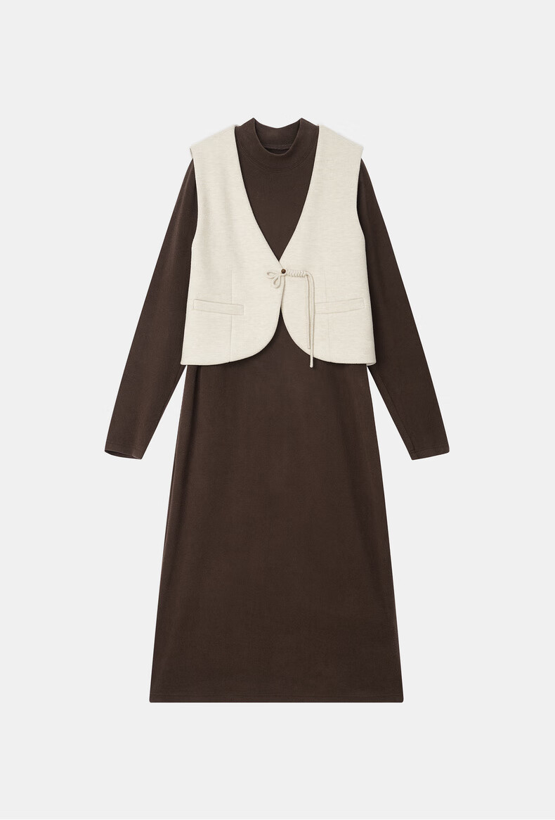 Fragment (dribs&drabs) fragment suit for women 2024 winter new style new national style buckle v-neck vest half turtleneck knitted skirt complete set coffee white 160/84A/M