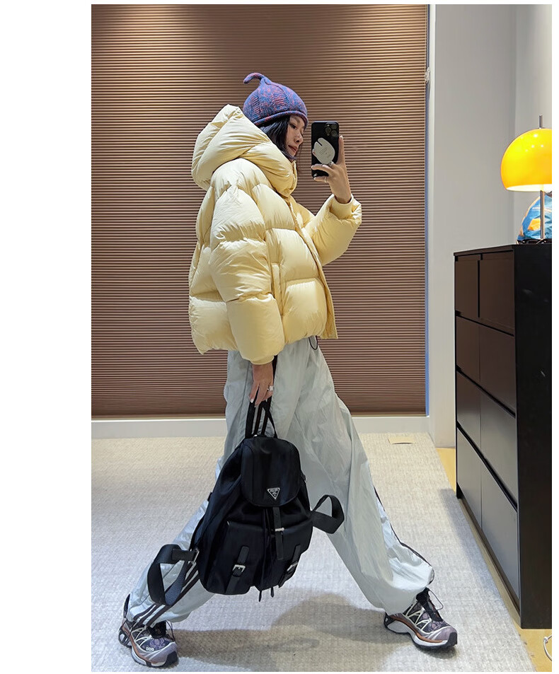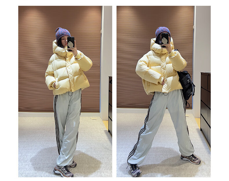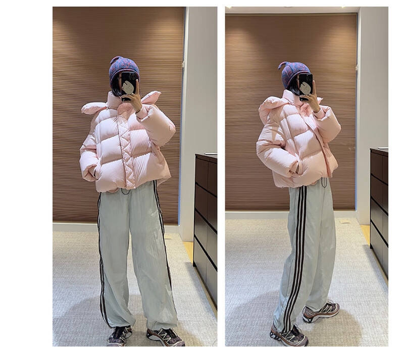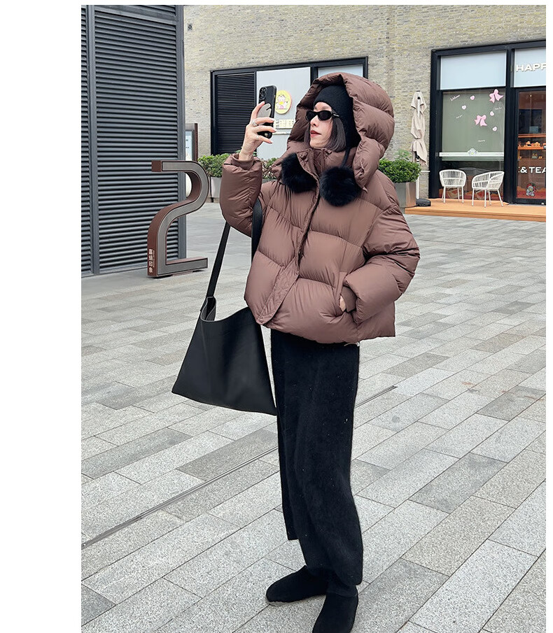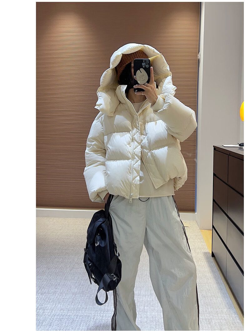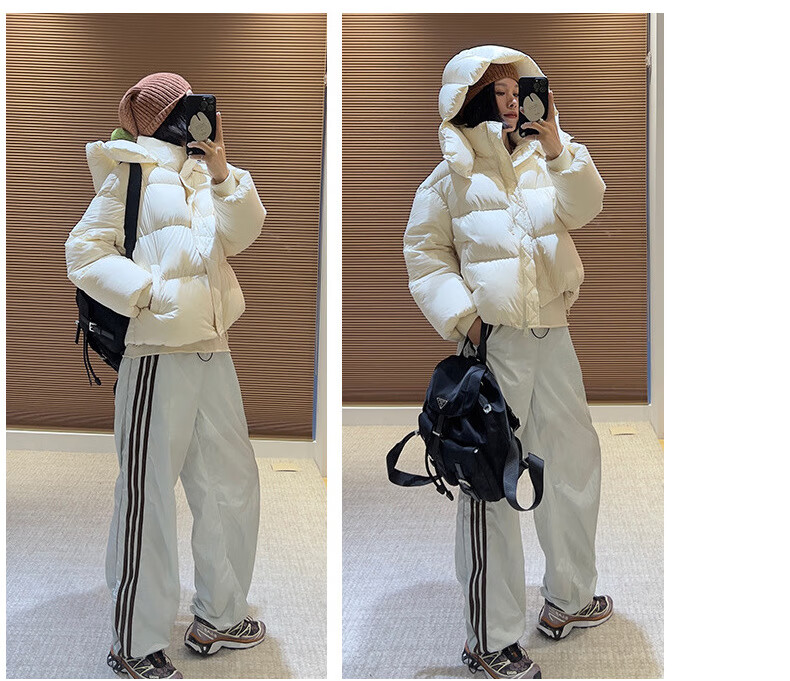 Weirou Boston Down Jacket Women's 2025 90 White Duck Down Puff Turtle Back Short Cloud Thick Loose Hooded Jacket White New National Standard Duck Down S (85-125 catties)
