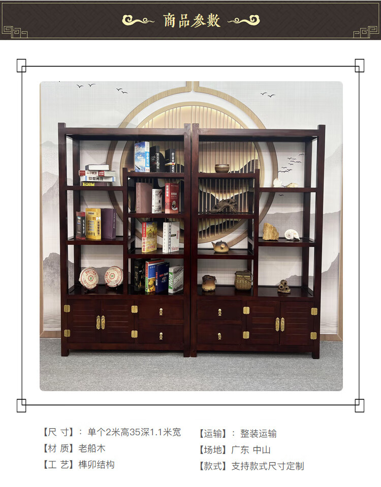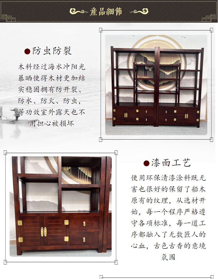 Old ship wood Bogu rack Chinese style solid wood wine cabinet tea rack multi-functional partition floor-standing storage rack display cabinet bookshelf 1.1 meter long Bogu rack 1