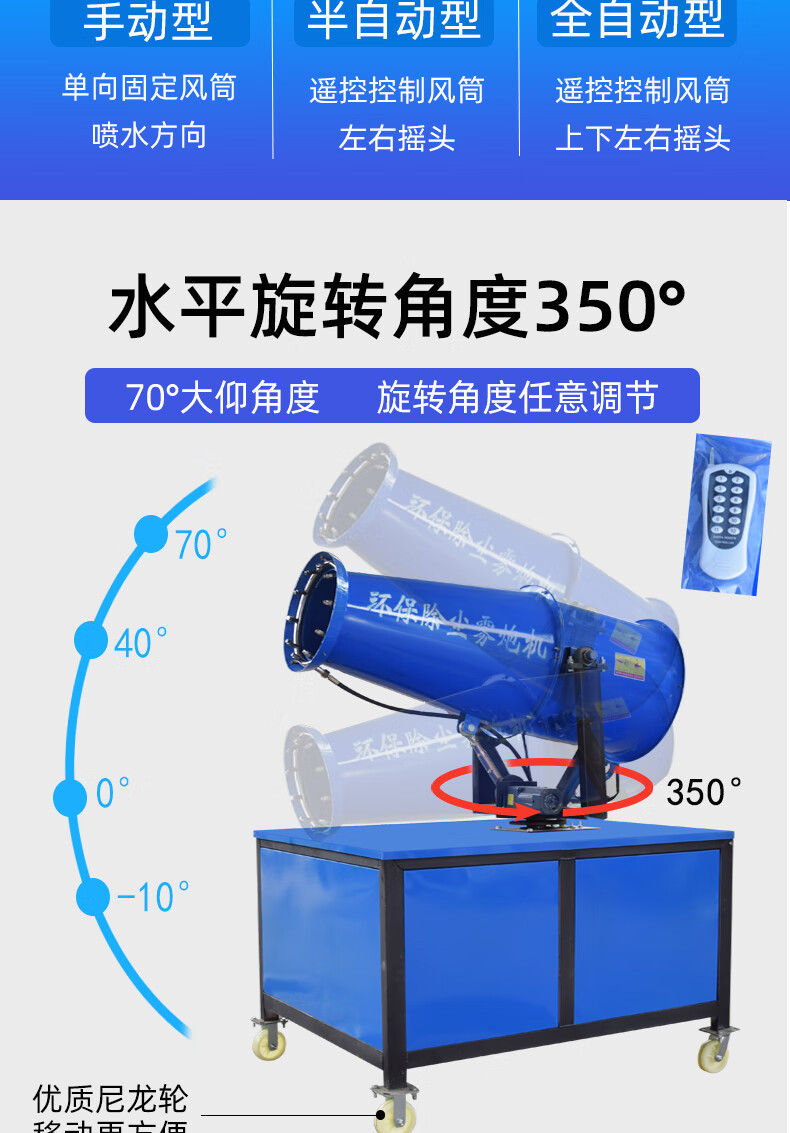 Dashen construction site fog cannon machine construction dust prevention and dehumidification fully automatic industrial vehicle-mounted mobile construction site environmental protection dust removal sprayer 15 type three-phase electric response inspection