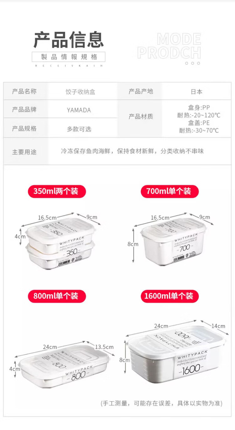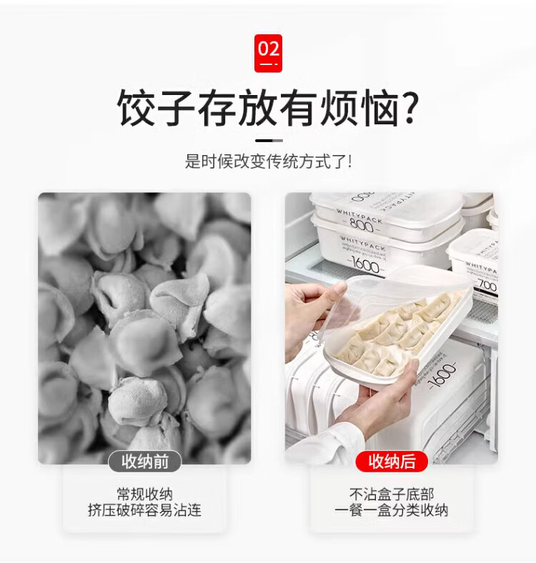 Sungsa imported from Japan special dumpling box for small refrigerator, household food-grade frozen raw dumplings and wontons, small storage and preservation, 800ml*5 pieces, can hold 16 dumplings, 1 layer
