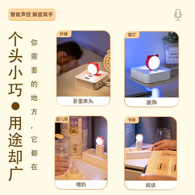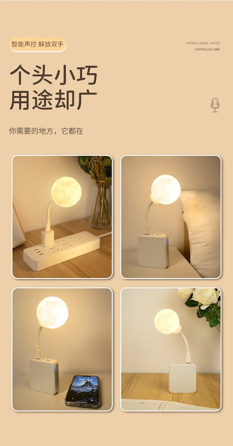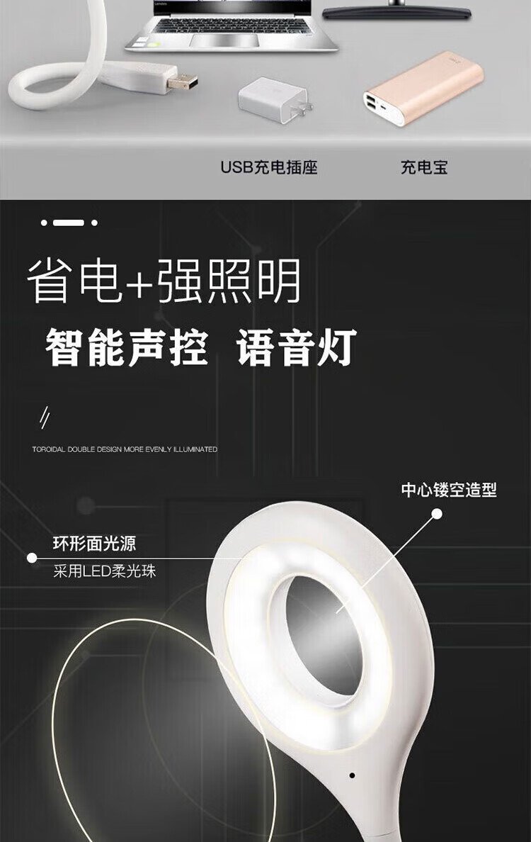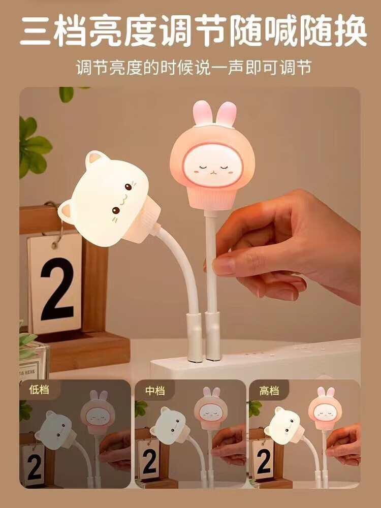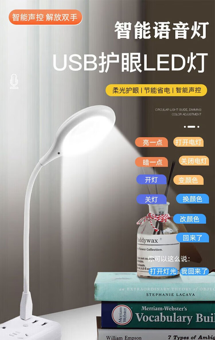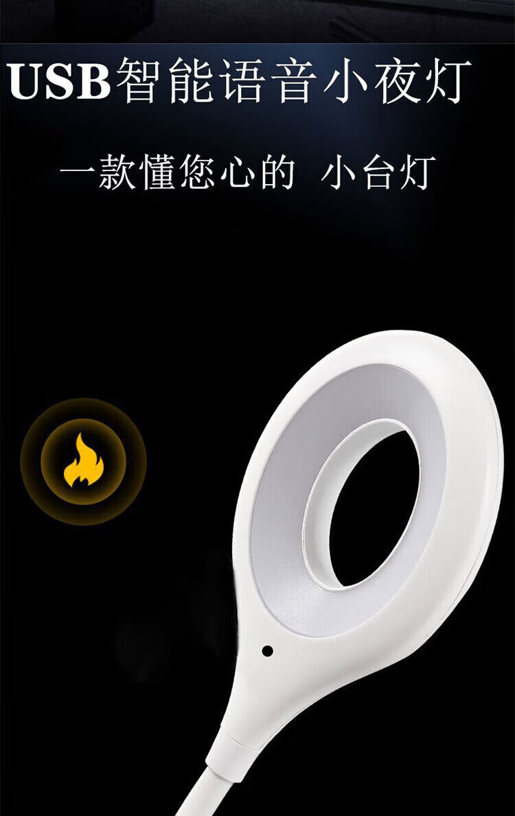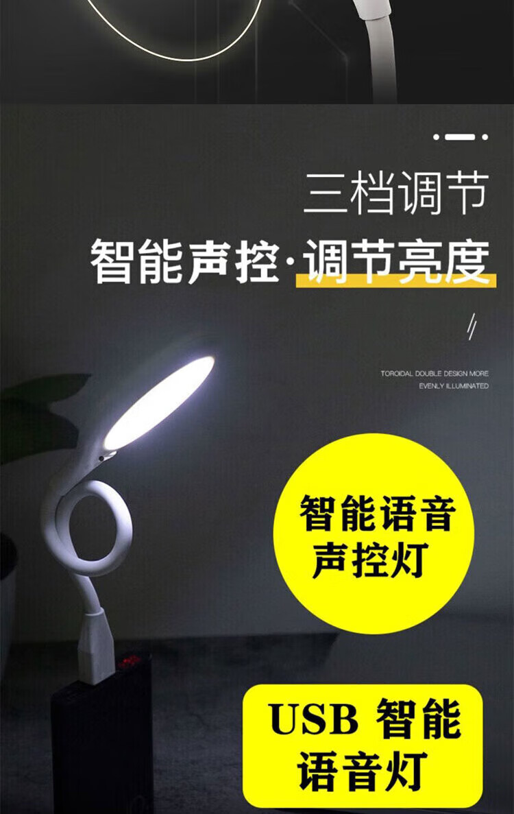 Intelligent voice night light, voice-controlled lamp, small desk lamp, portable atmosphere photo-taking, LED bedroom dormitory bedside energy-saving lamp, USB plug and play, white folding voice lamp, 1 pack