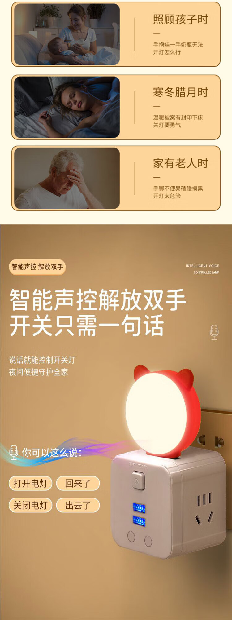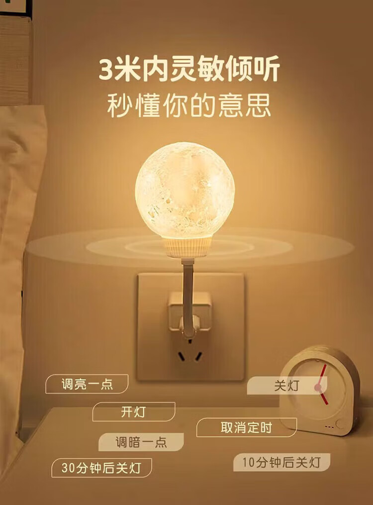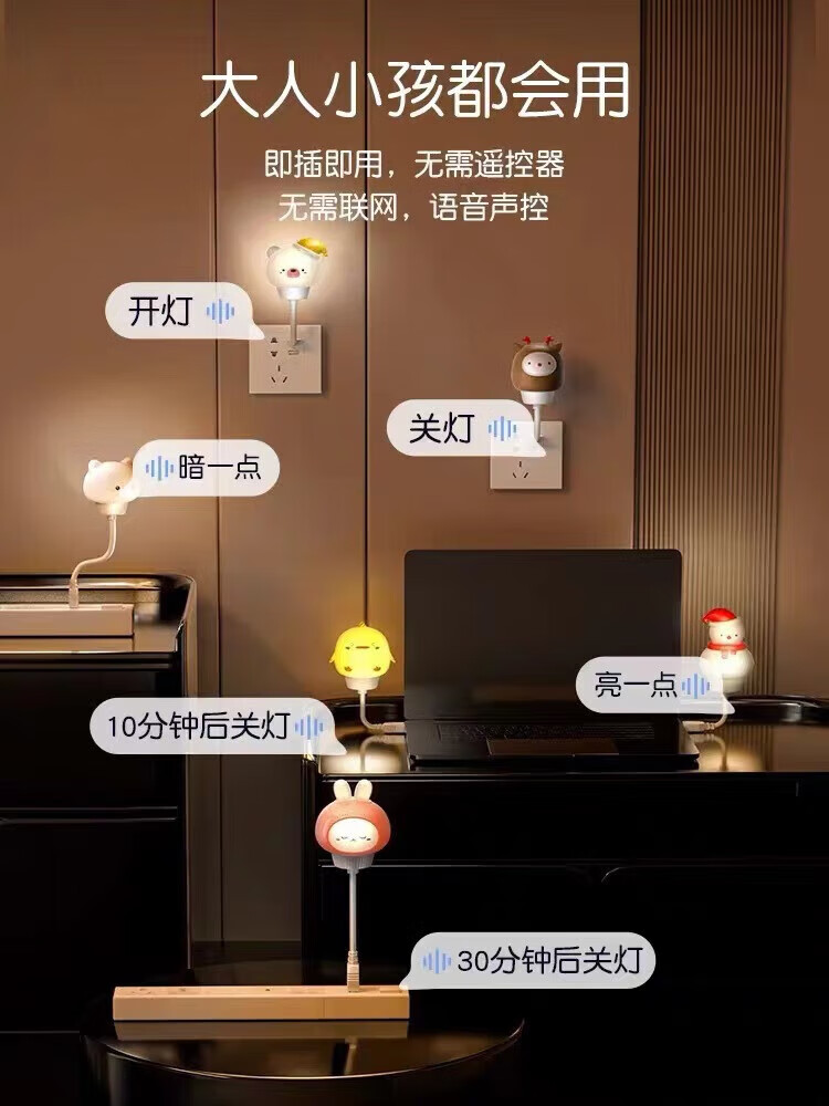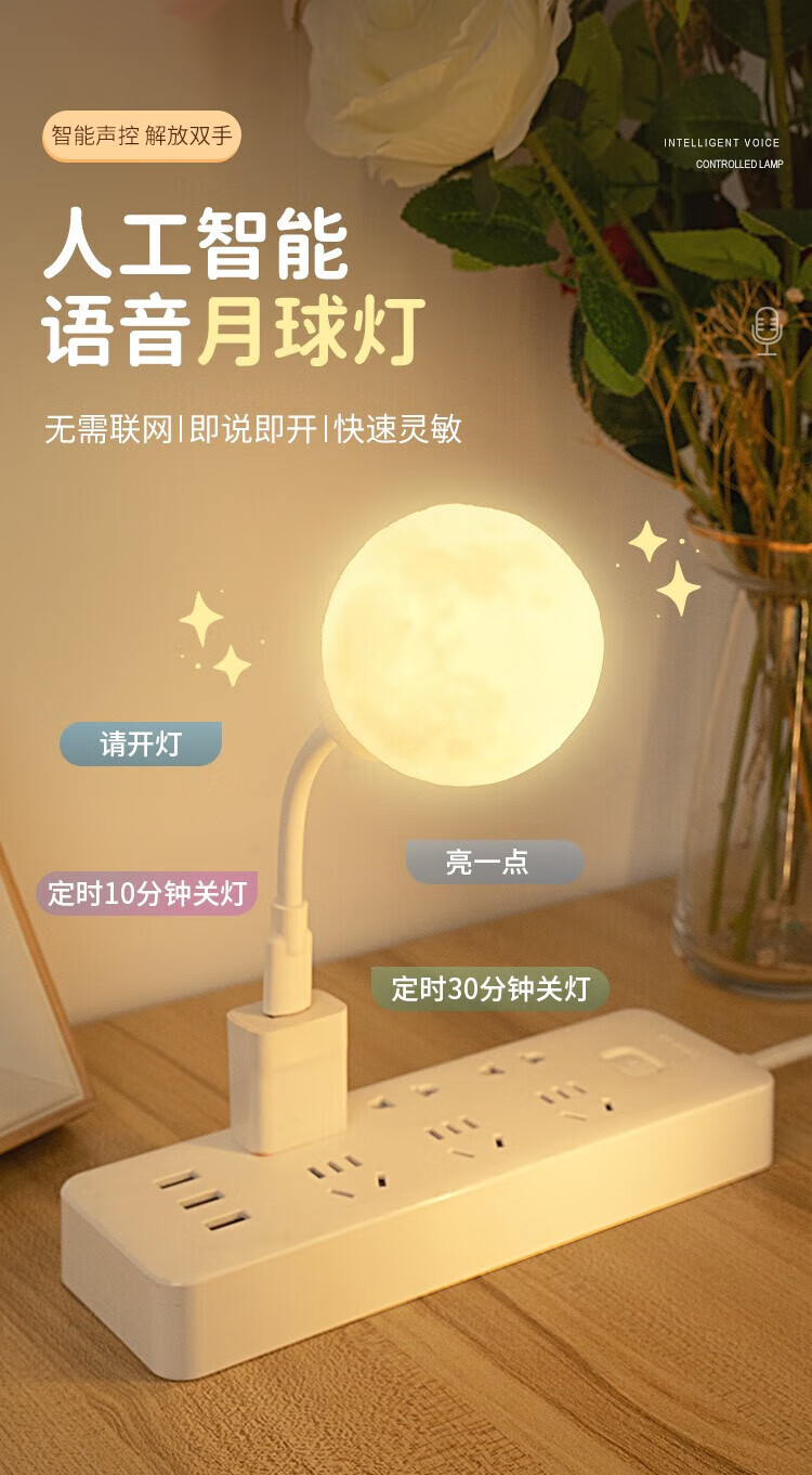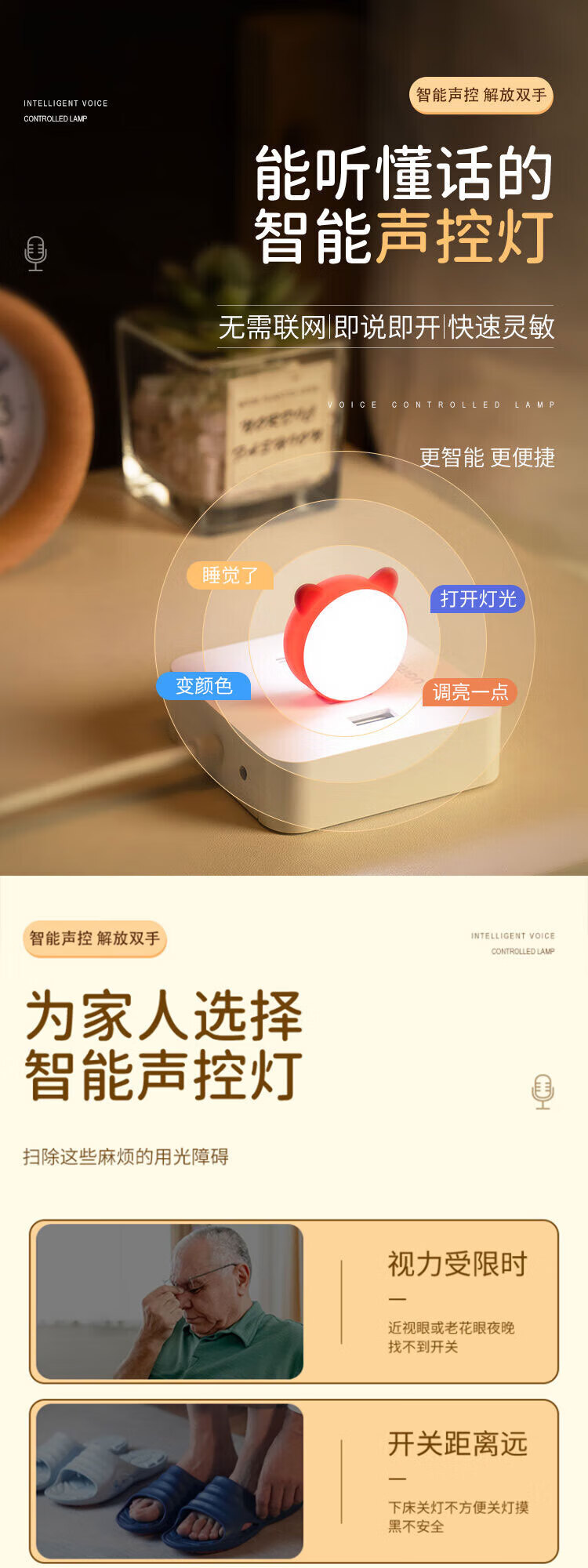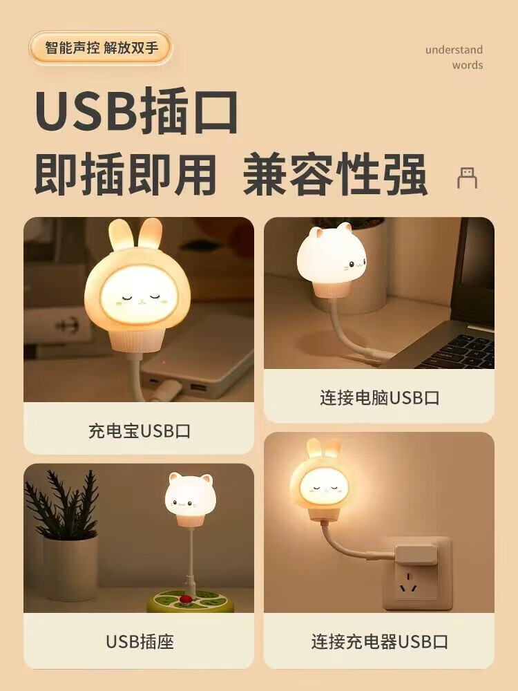 Intelligent voice night light, voice-controlled lamp, small desk lamp, portable atmosphere photo-taking, LED bedroom dormitory bedside energy-saving lamp, USB plug and play, white folding voice lamp, 1 pack