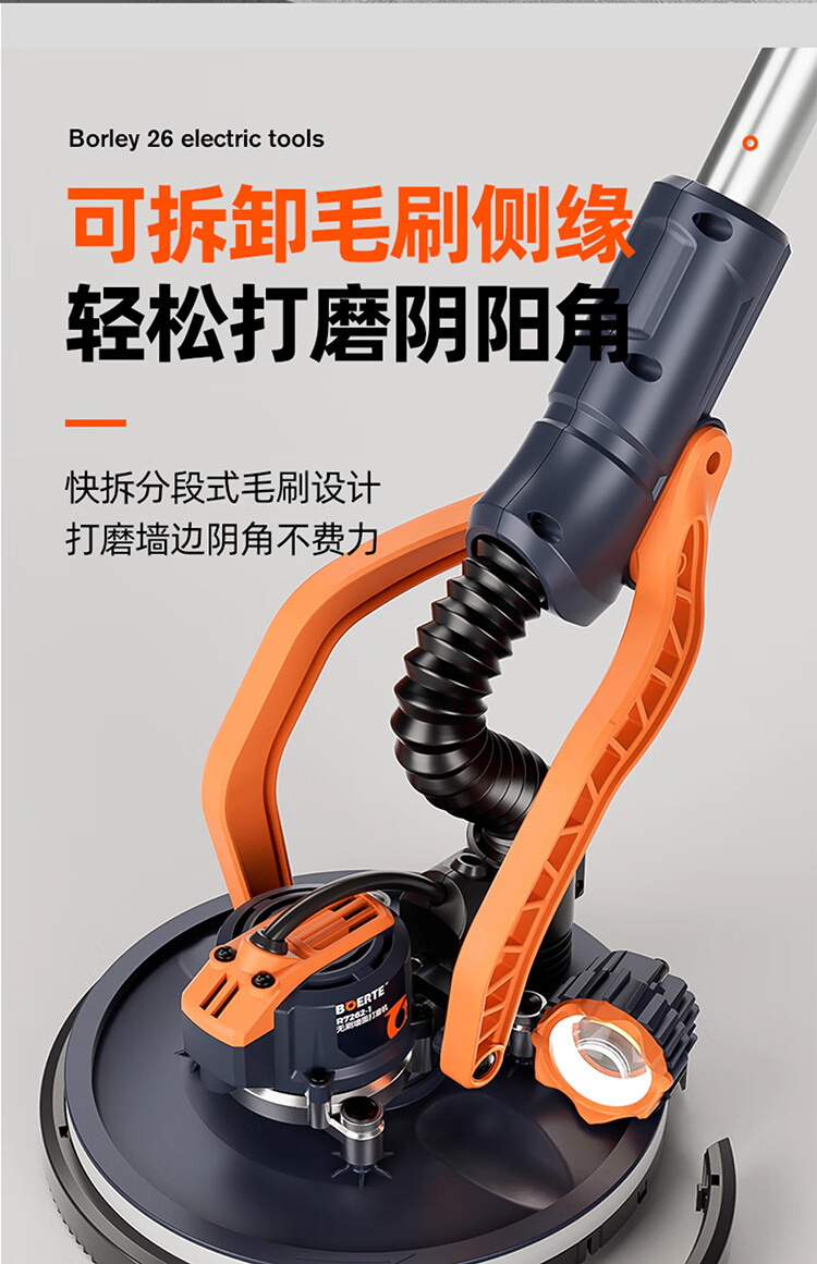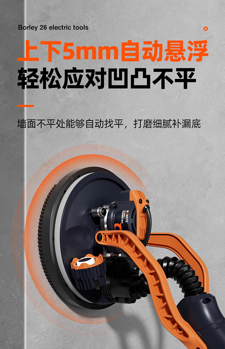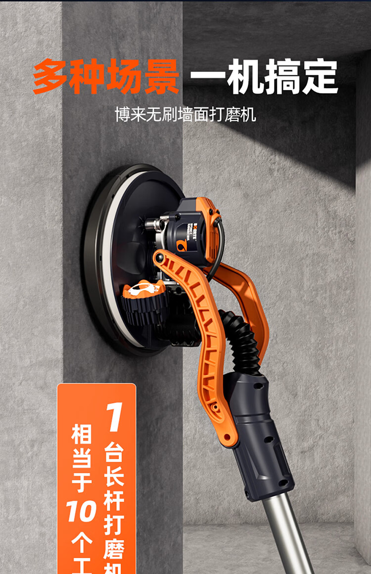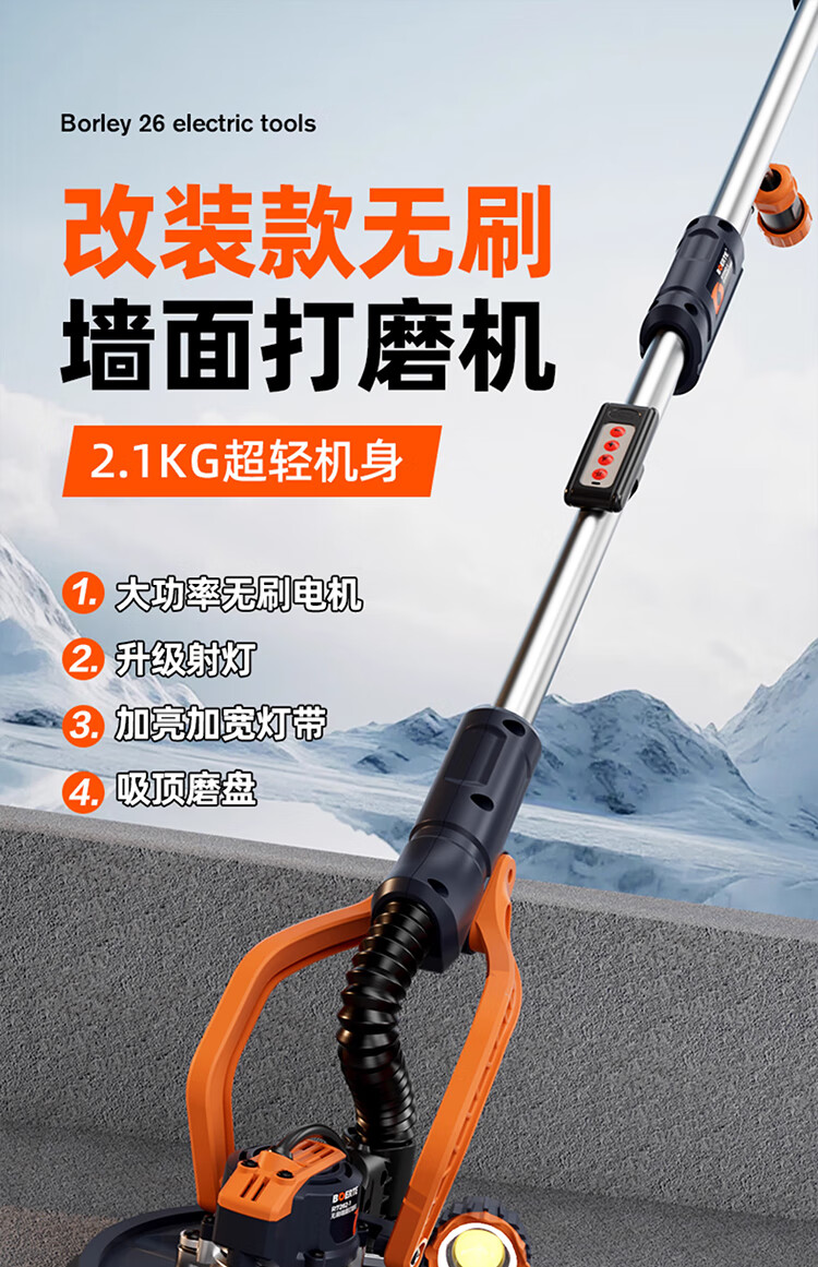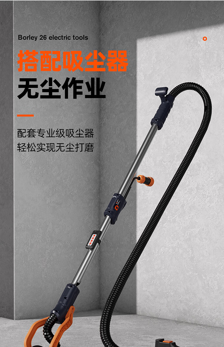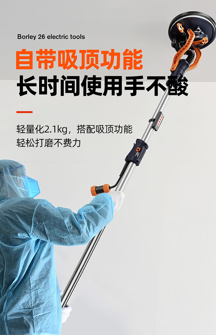 Bolai Bolt's new 7262 ultra-light brushless wall putty grinder self-suction ceiling dust-free electric long pole sandpaper machine brushless grinder (2.1KG) + portable vacuum cleaner + free gift package