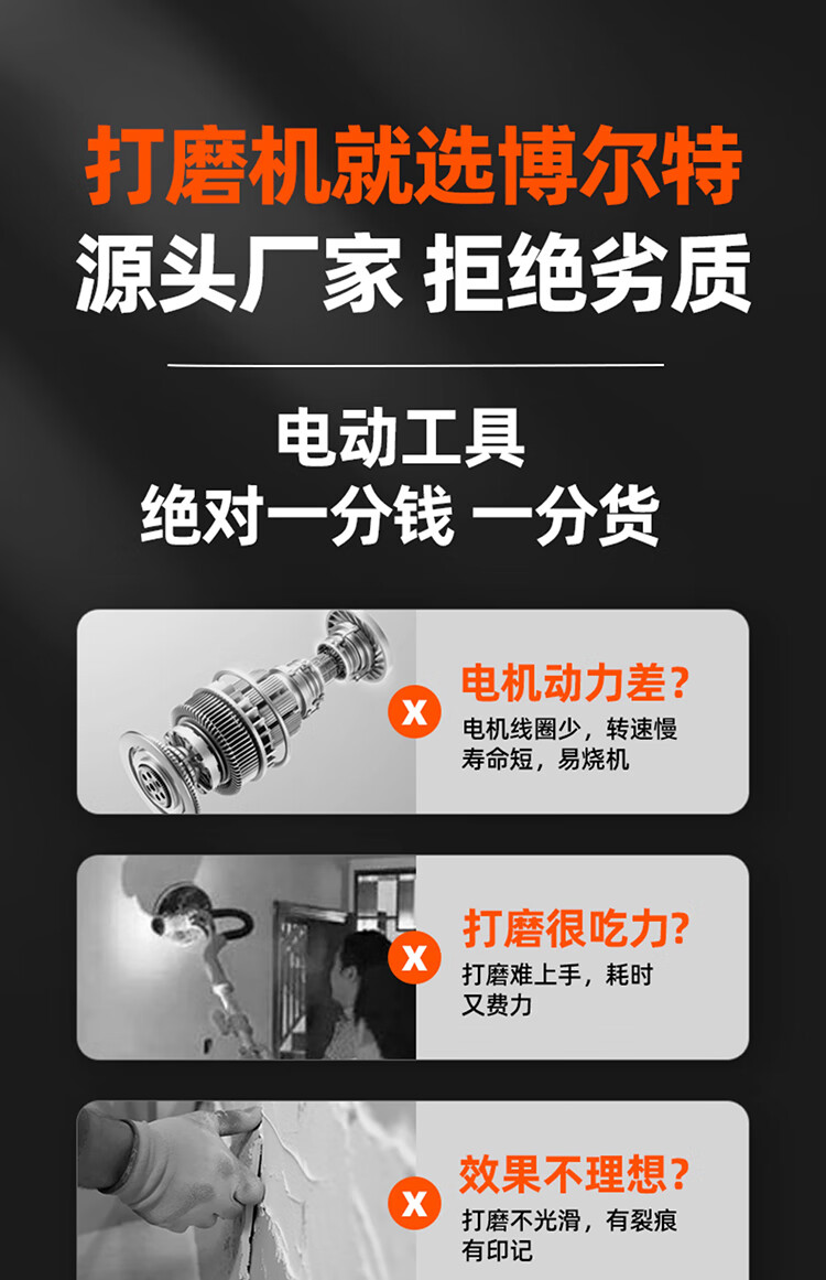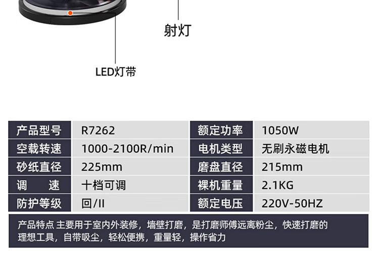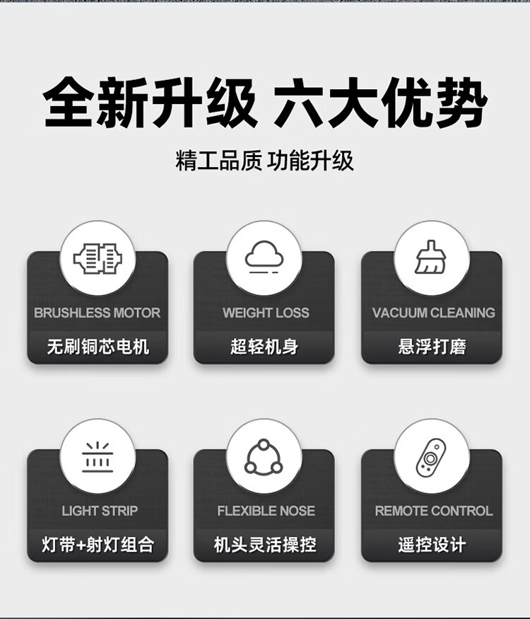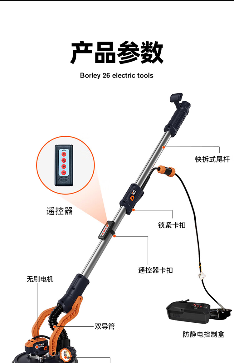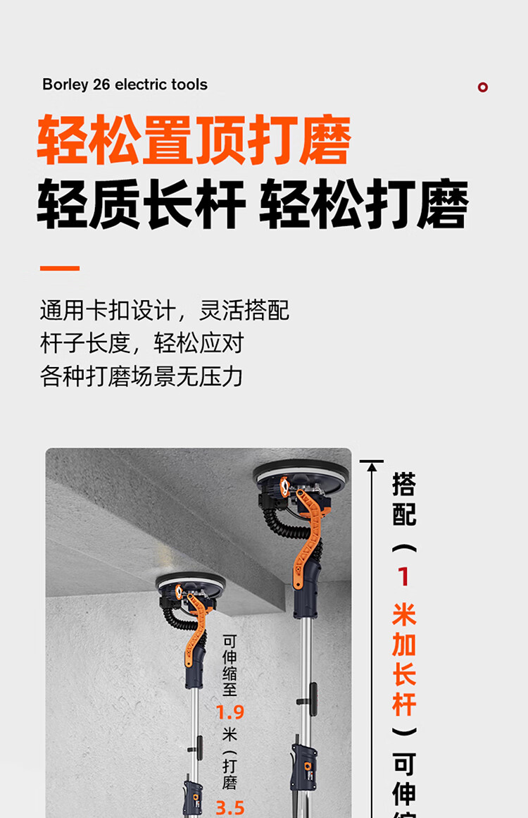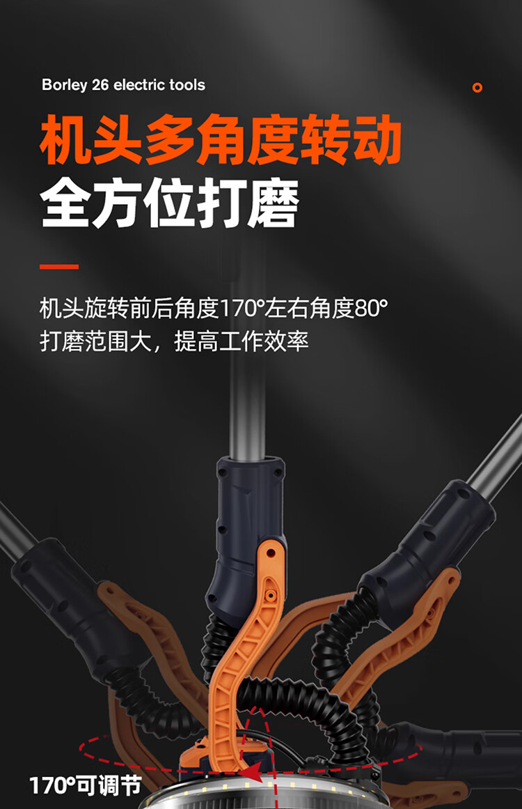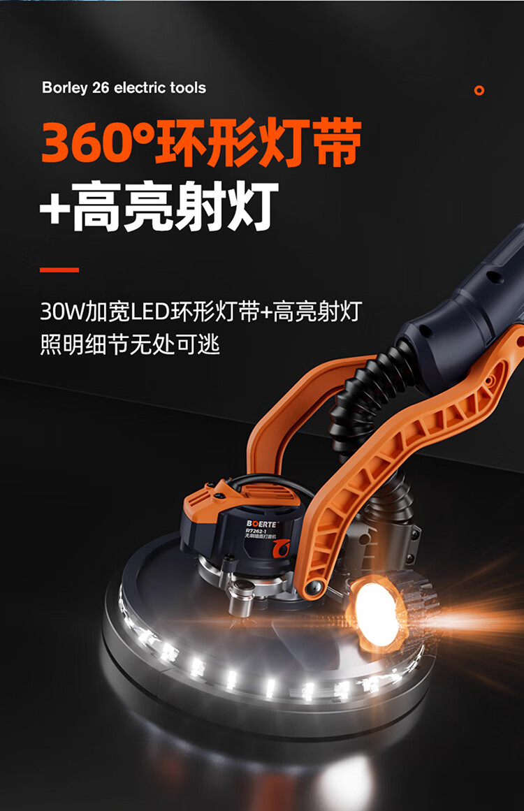 Bolai Bolt's new 7262 ultra-light brushless wall putty grinder self-suction ceiling dust-free electric long pole sandpaper machine brushless grinder (2.1KG) + portable vacuum cleaner + free gift package