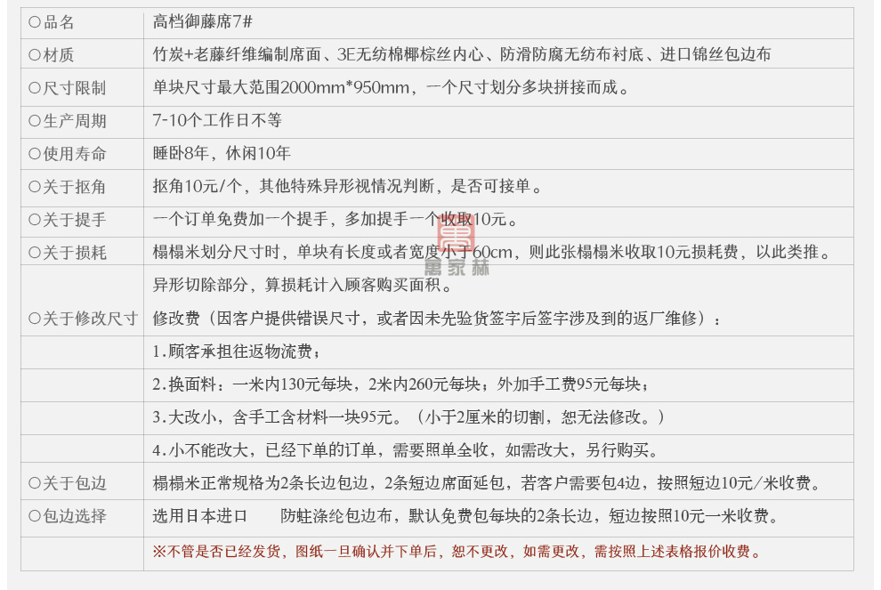Wanjiahe Japanese style Japanese room rattan mat 7# tatami floor mat tatami mattress tatami seat cushion tatami floor mat floor mat custom tatami mat custom japanese room 3.0cm no harm cotton coconut palm core other