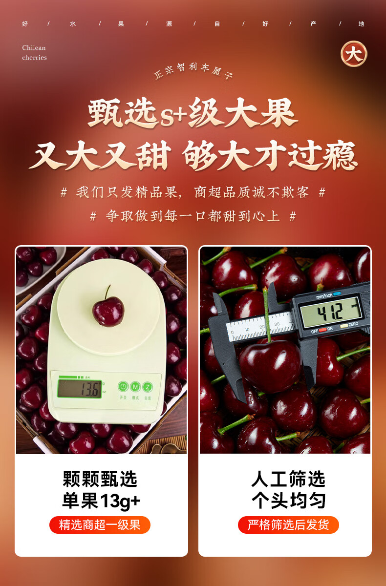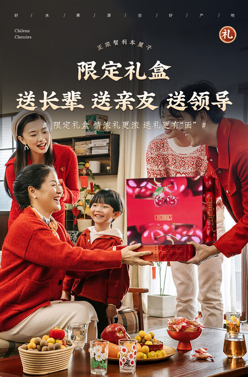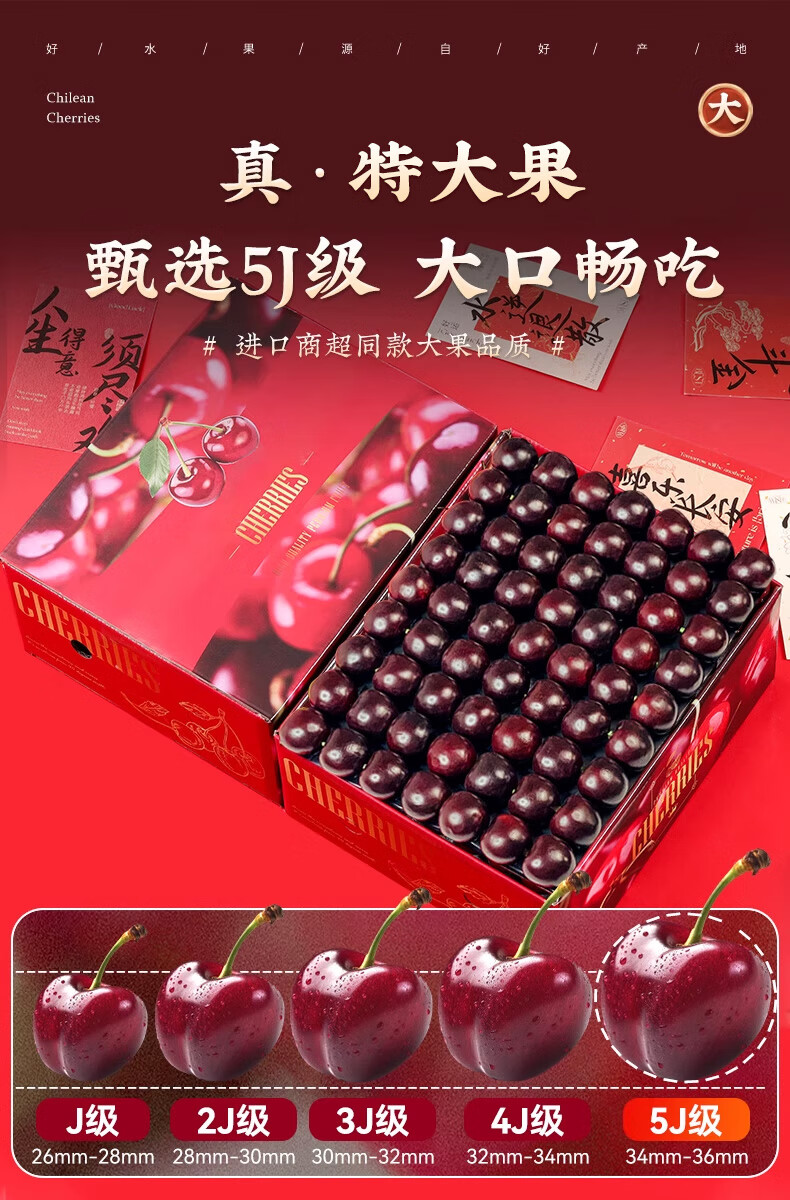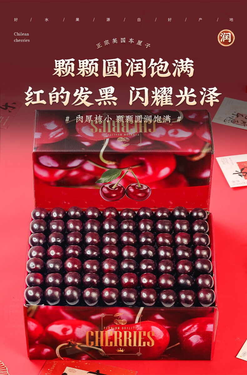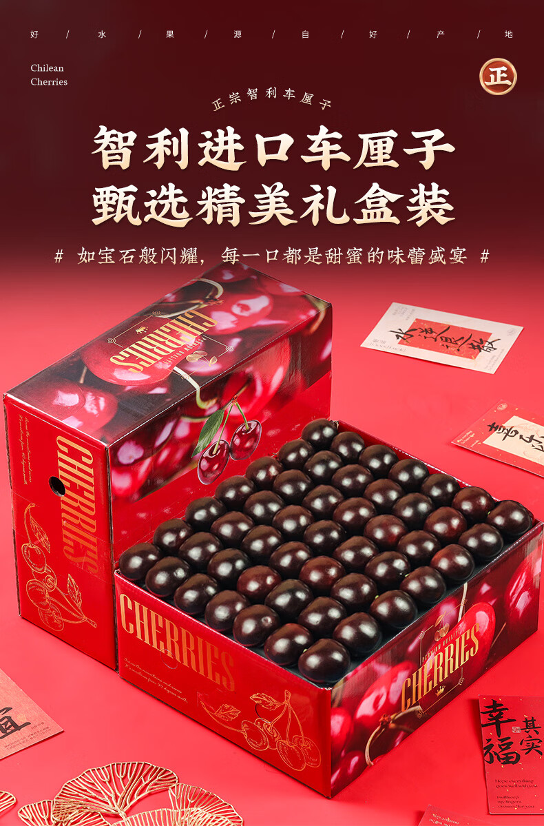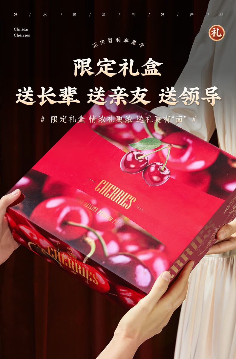 Wanxian Chile imported cherries JD SF - next-day delivery to many places New Year's Day gift fruit gift box 1250g (net weight) Big Mac 3J 10-12g with box 3 catties gift box JD SF door-to-door delivery
