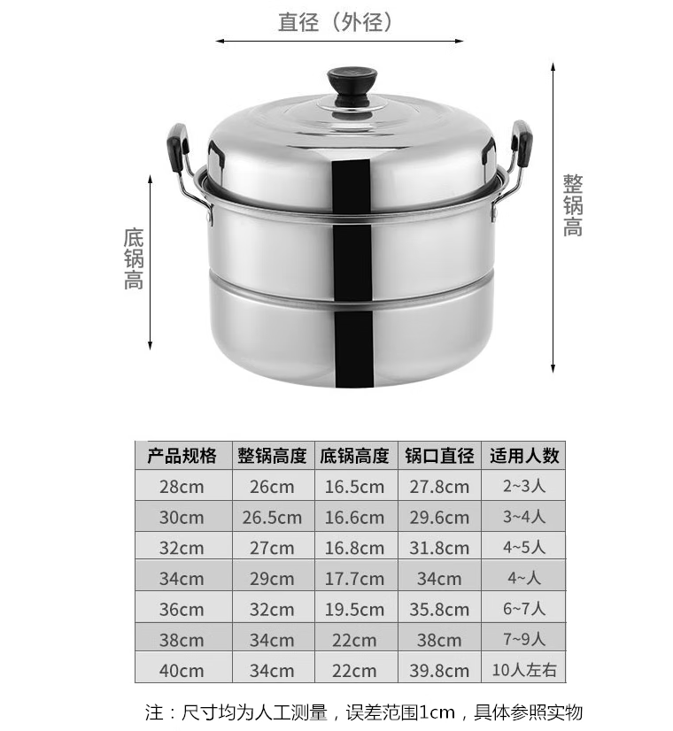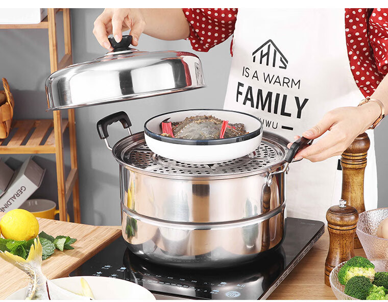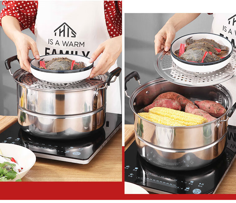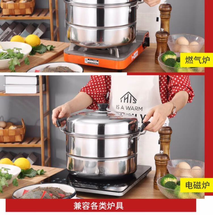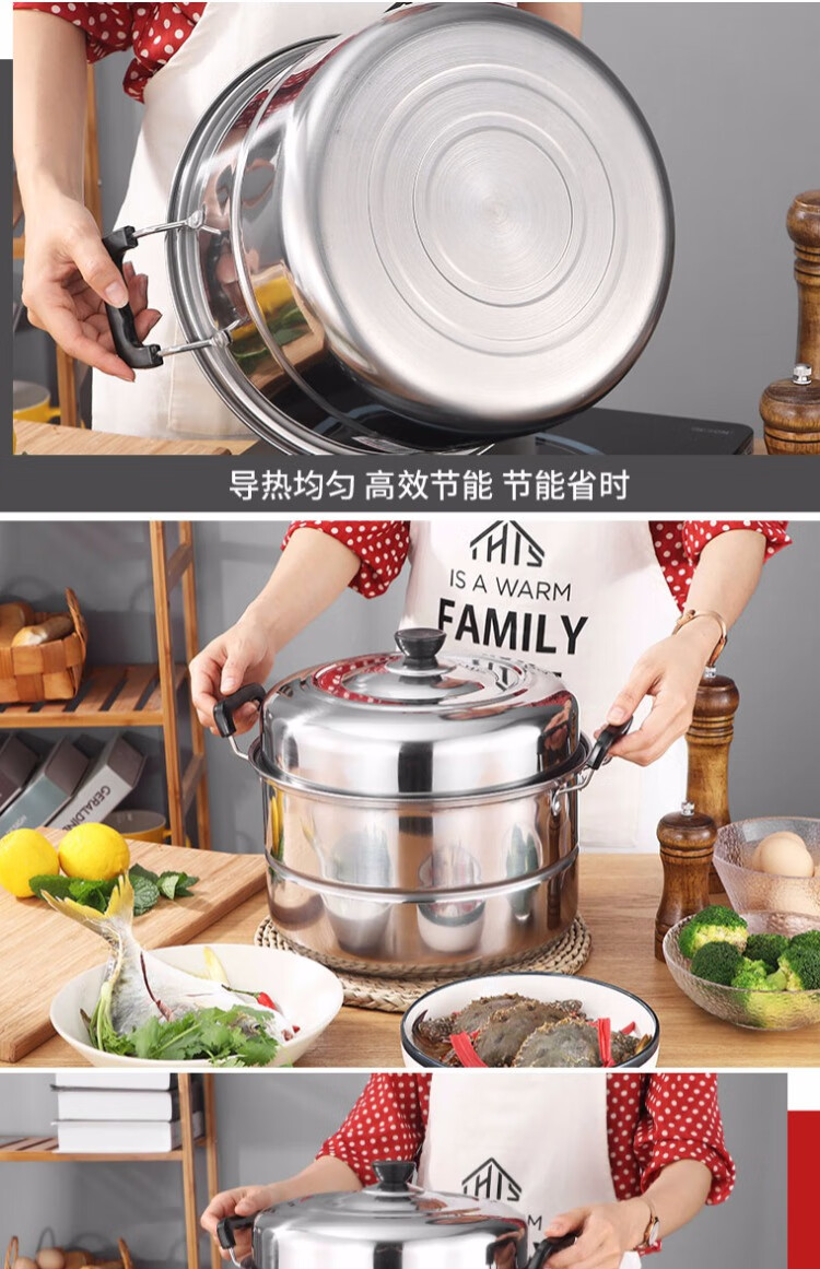 Tuojin German imported quality thickened stainless steel household steamer two-layer large commercial soup pot double-layer steamed bun steamed buns extra thick upgraded double layer 40cm collect and purchase gifts