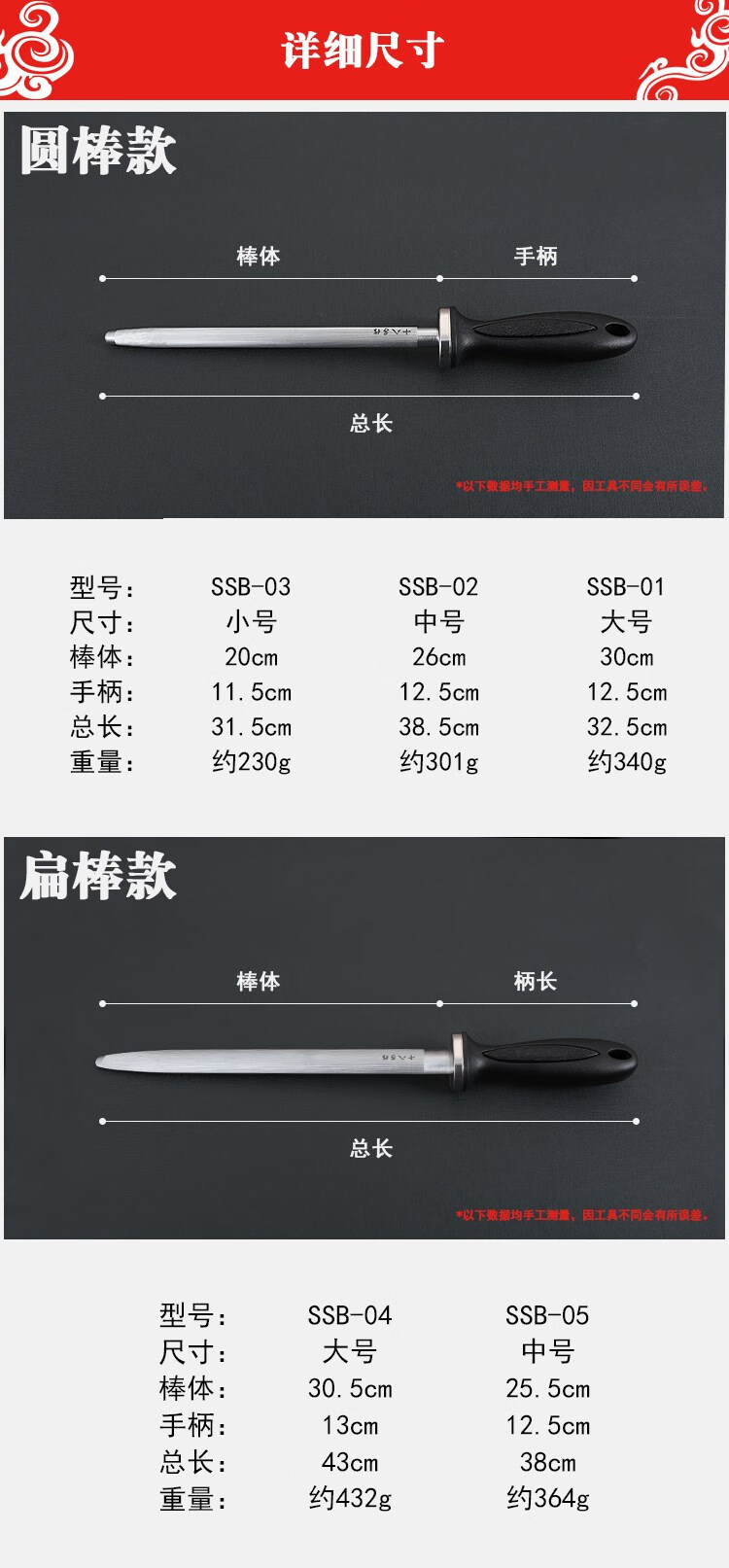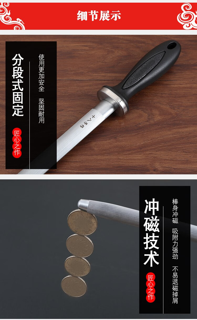 Shibazi writer's importer's German magnetic knife sharpening stick Yangjiang Shibazi round flat butcher's butcher's stick flat 12 inches