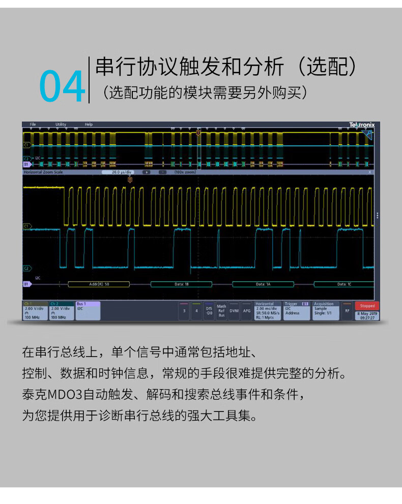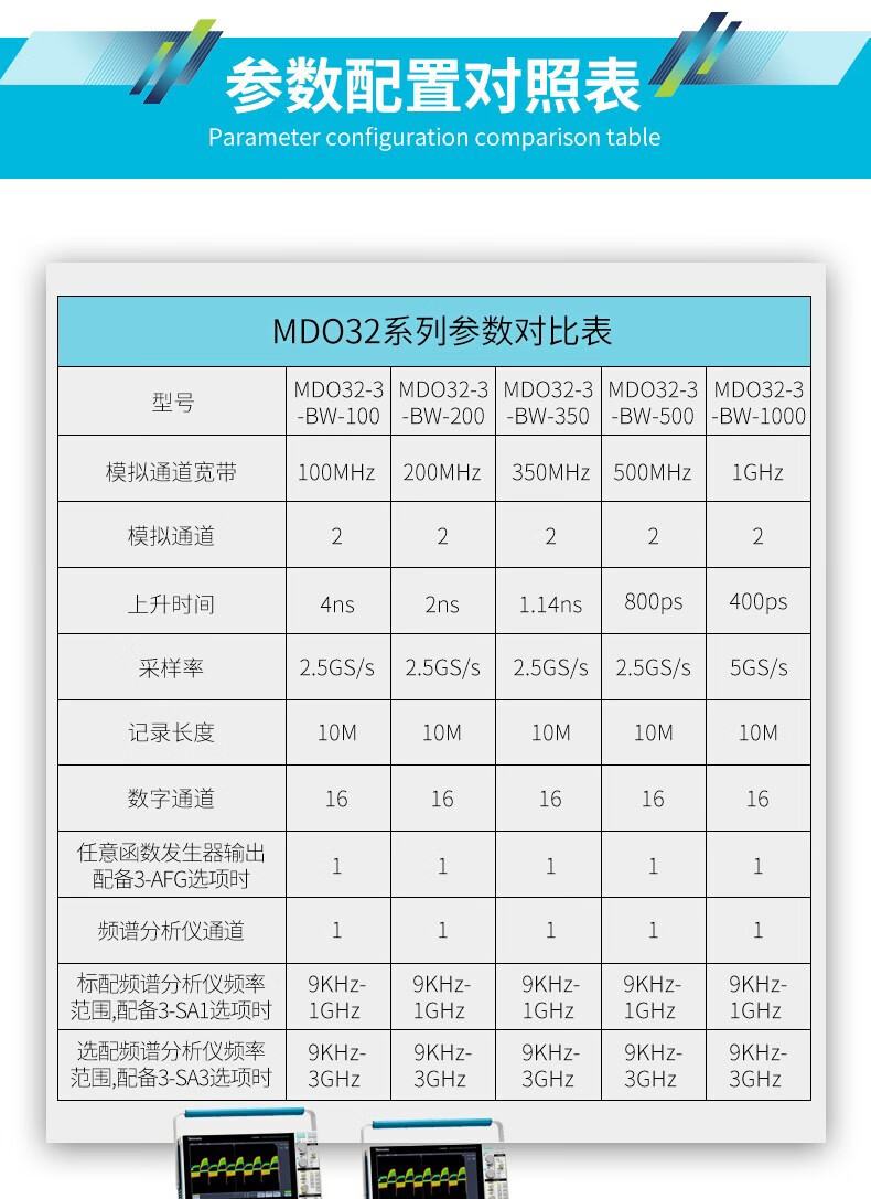 TEKTRONIX Tektronix oscilloscope MDO32 3-BW-200 MDO3 series mixed domain digital oscilloscope dual channel 200M MDO32 3-BW-100 (dual channel 100M)