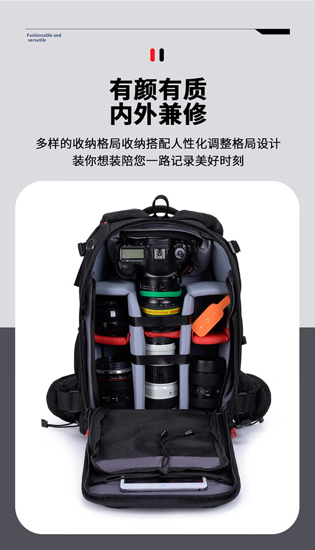 Photography Master Canon Nikon Sony Lightweight Multifunctional SLR Camera Bag 800d750d6d200d Camera Backpack Backpack 12th Generation Black Black Border Large Photography Master
