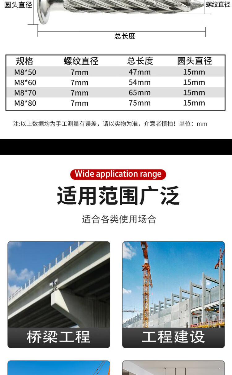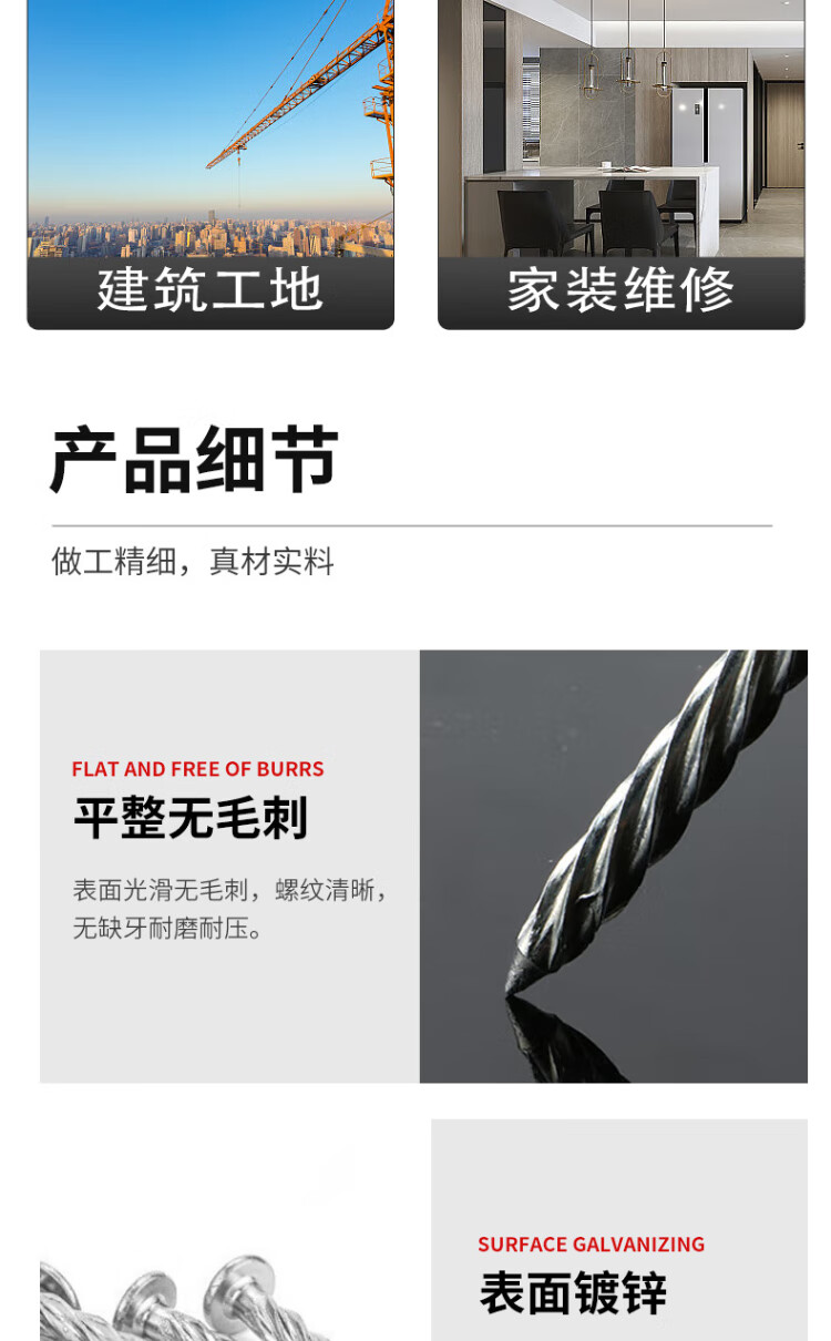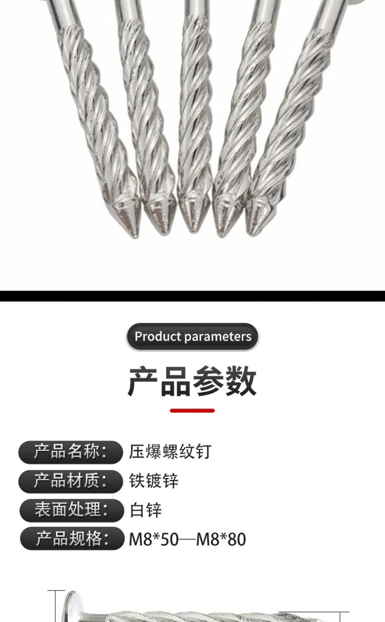Deqi pressure explosion threaded nails, new galvanized expansion nails, anti-theft net fixing nails, twist nails, iron galvanized 8*50 (20 pieces)