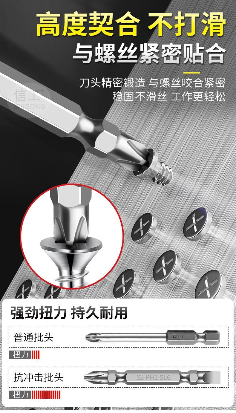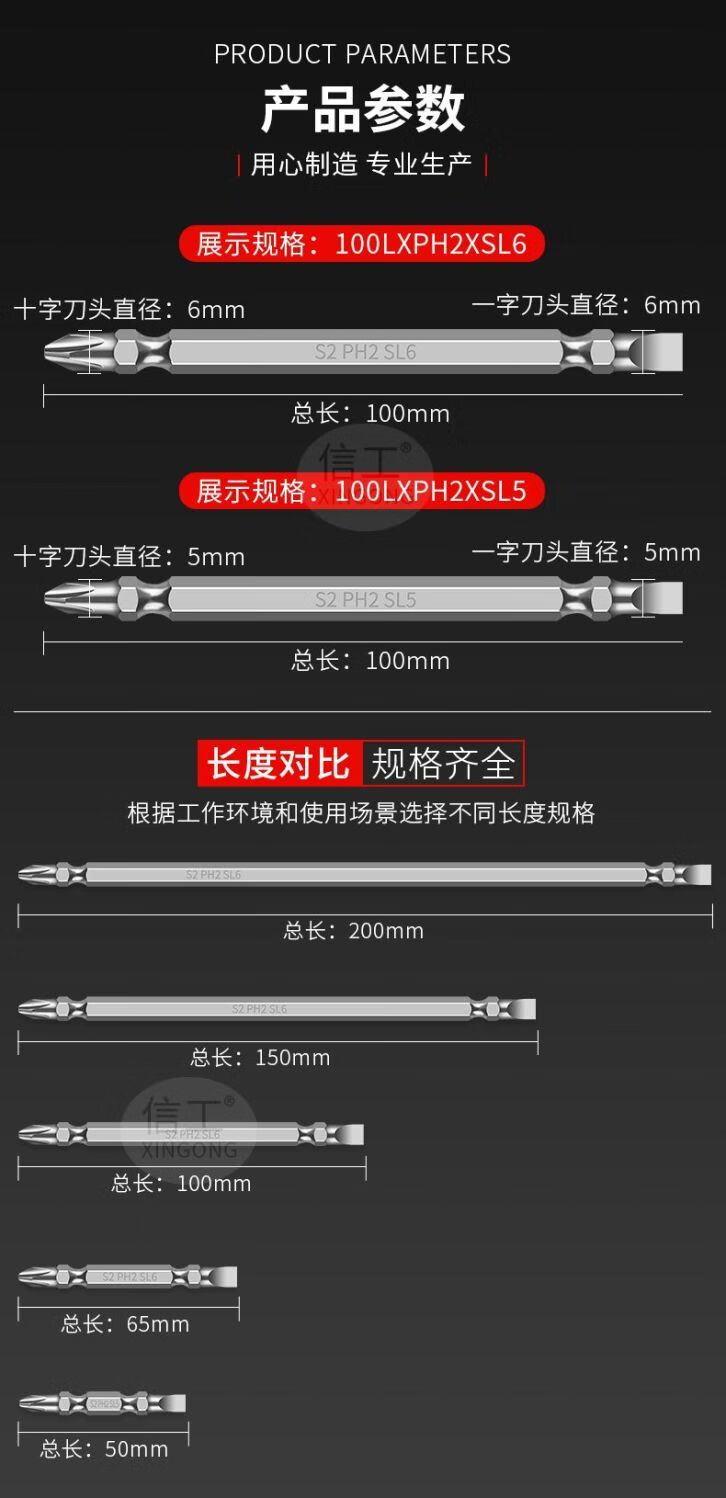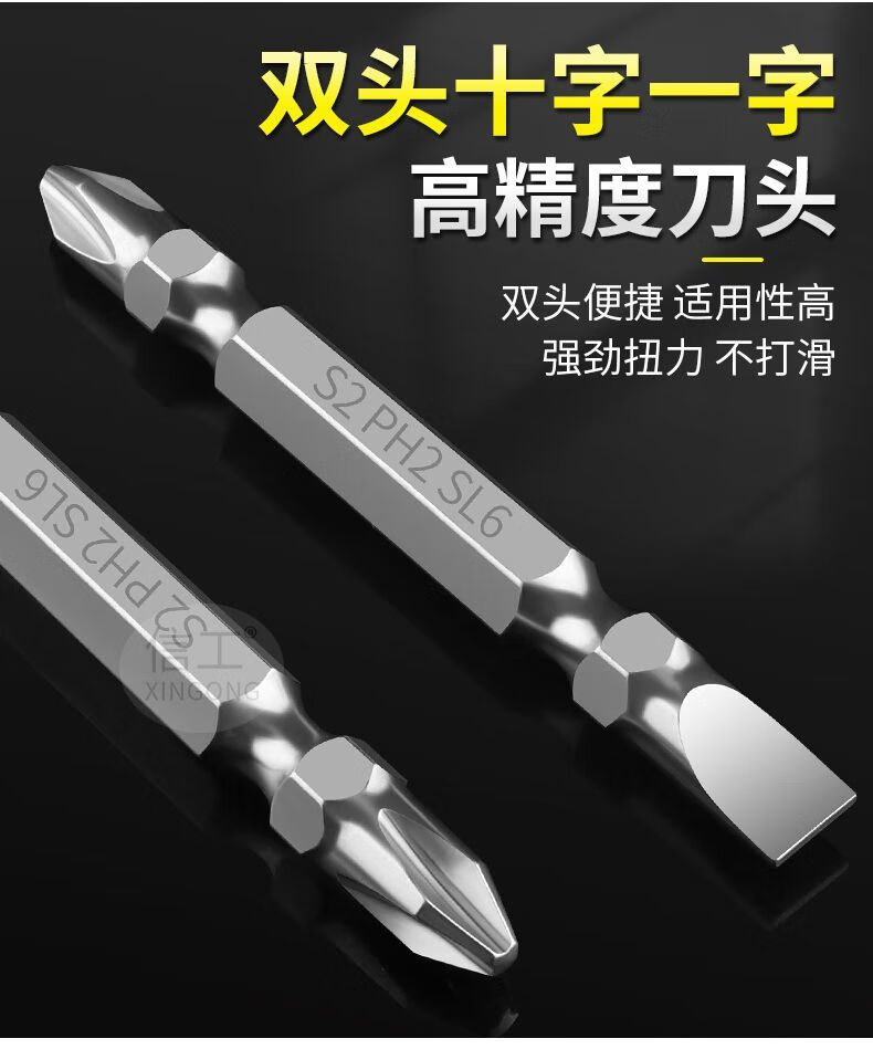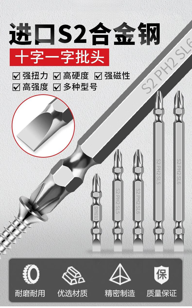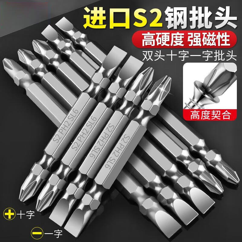 Shushe Slotted Cross Bit, Strong Magnetic, Super Hard, Anti-Slip, Double-ended Dual-Hand Electric Drill Special Electric Screwdriver Head, High Hardness, Upgraded Fully Grinded Steel 100L*SL5 (Single-shaped Cross), Single