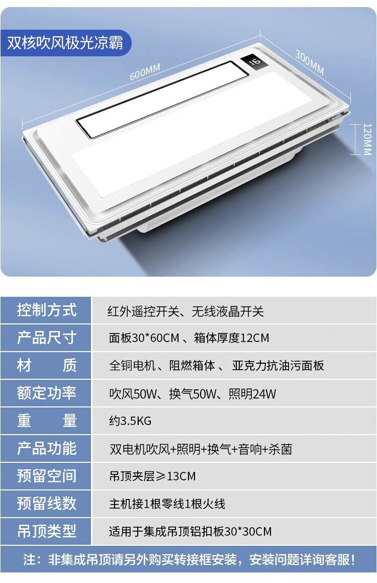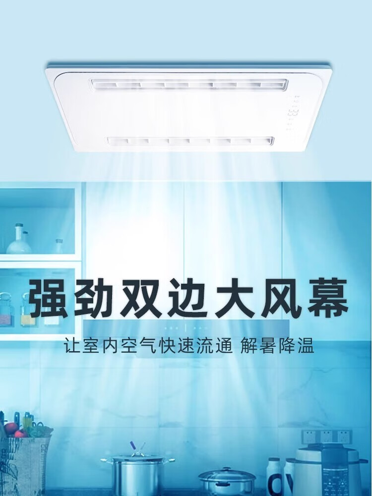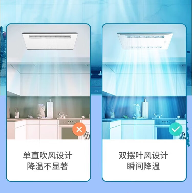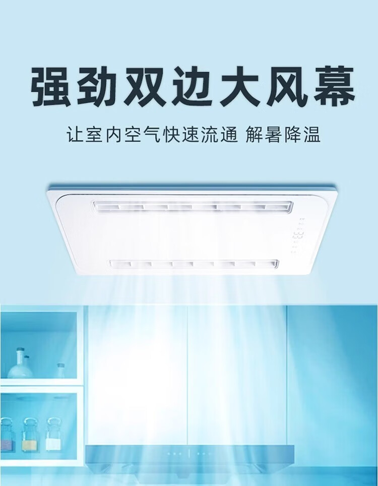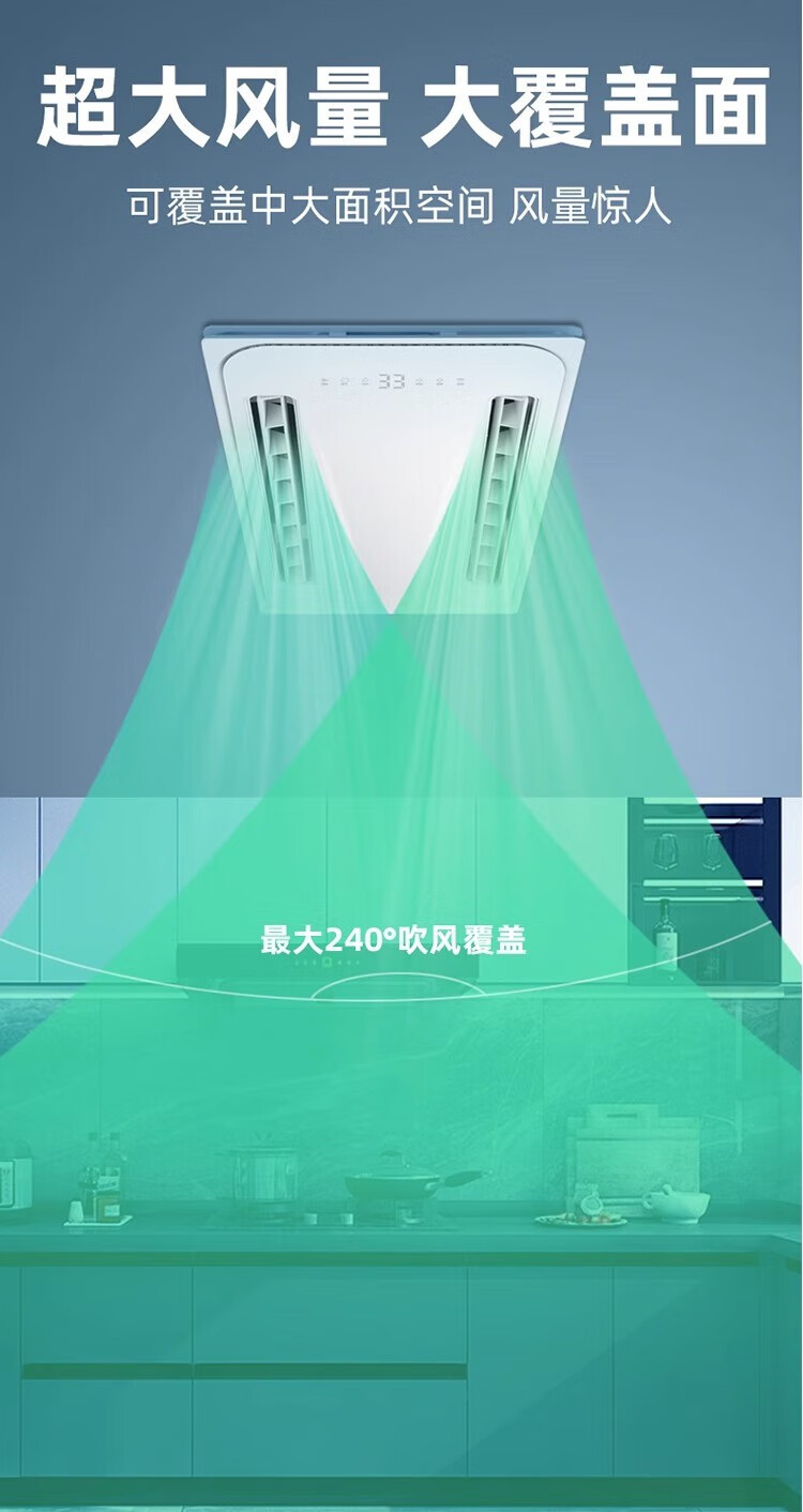 Opda Kitchen Cooler Embedded Lighting Two-in-One Air Conditioner Integrated Ceiling Ventilation Cooler Fan Cold Wind Triple-core Long Double Swing Page Double Blower Wireless Remote Control 300*600mm
