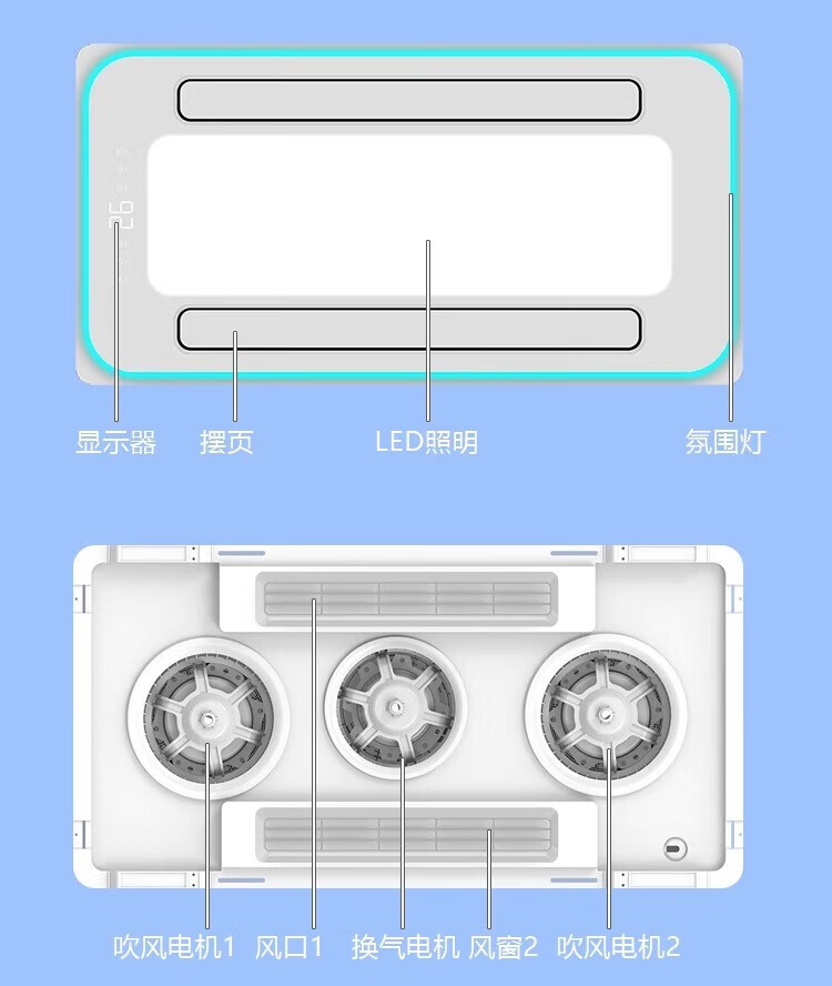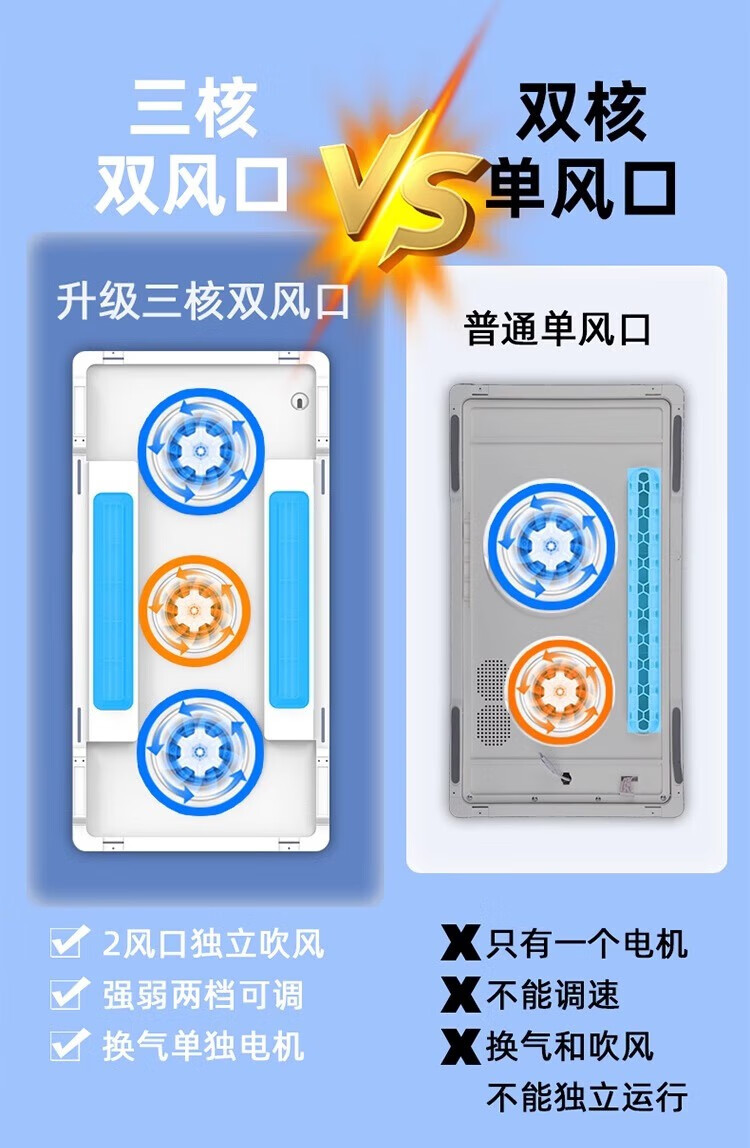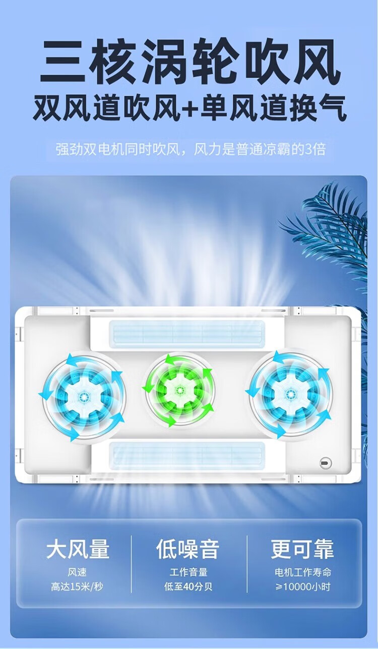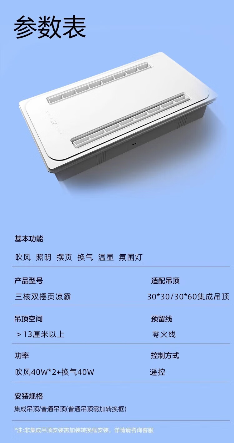Opda Kitchen Cooler Embedded Lighting Two-in-One Air Conditioner Integrated Ceiling Ventilation Cooler Fan Cold Wind Triple-core Long Double Swing Page Double Blower Wireless Remote Control 300*600mm