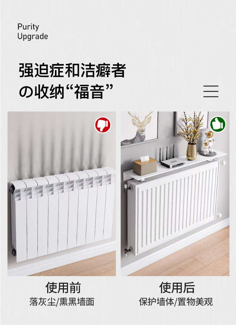 Renjuyi radiator rack baffle old-fashioned anti-smoke wall upper partition decorative shield new ugly artifact household 35cm long space aluminum radiator dust-proof and anti-smoke storage rack