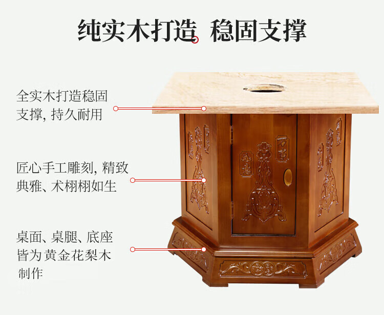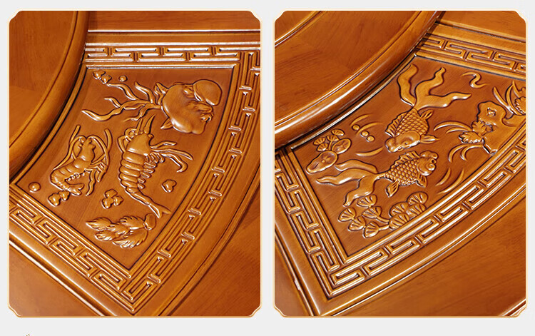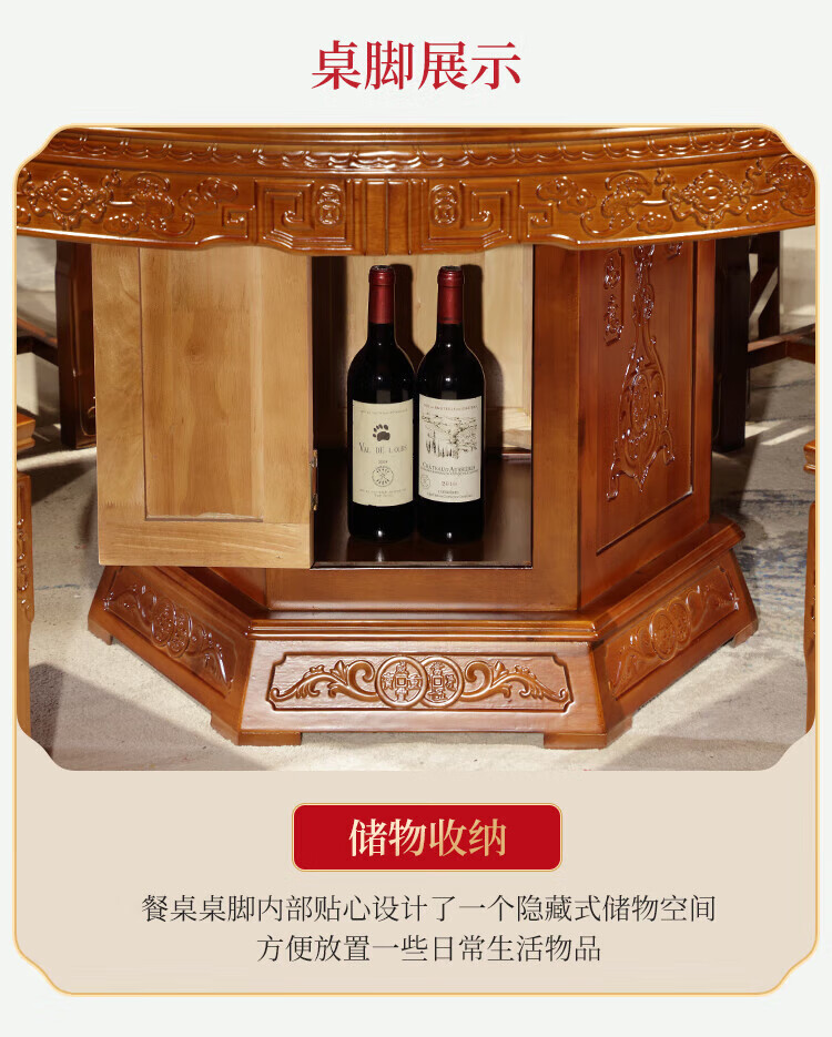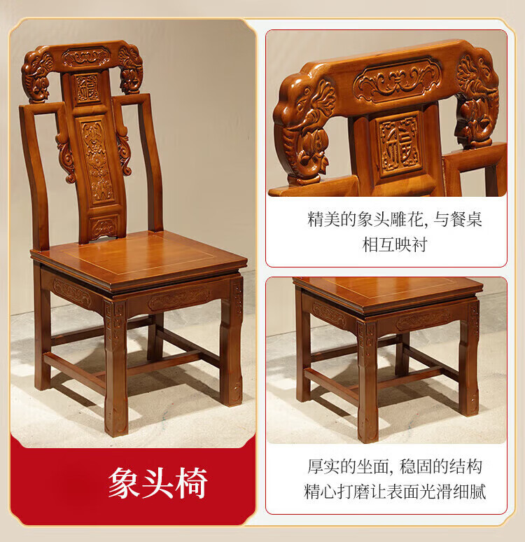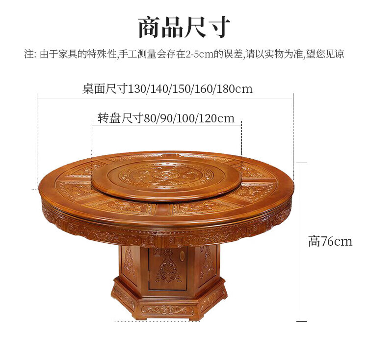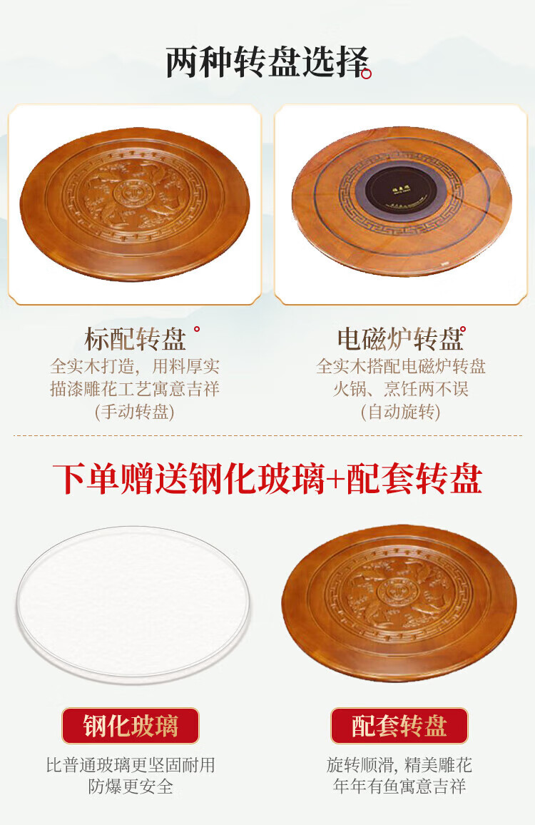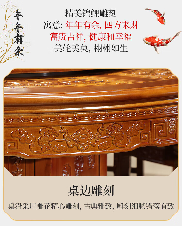 Macron Guangdong Foshan all solid wood dining table antique carved gold rosewood large round table with turntable for 10 people, walnut color, free turntable + tempered glass, 2.0 meters, 1 table + 12 elephant head chairs
