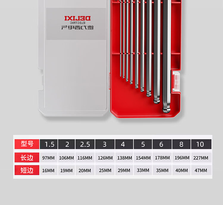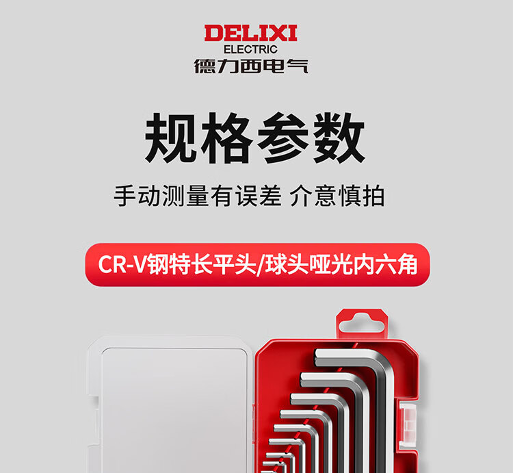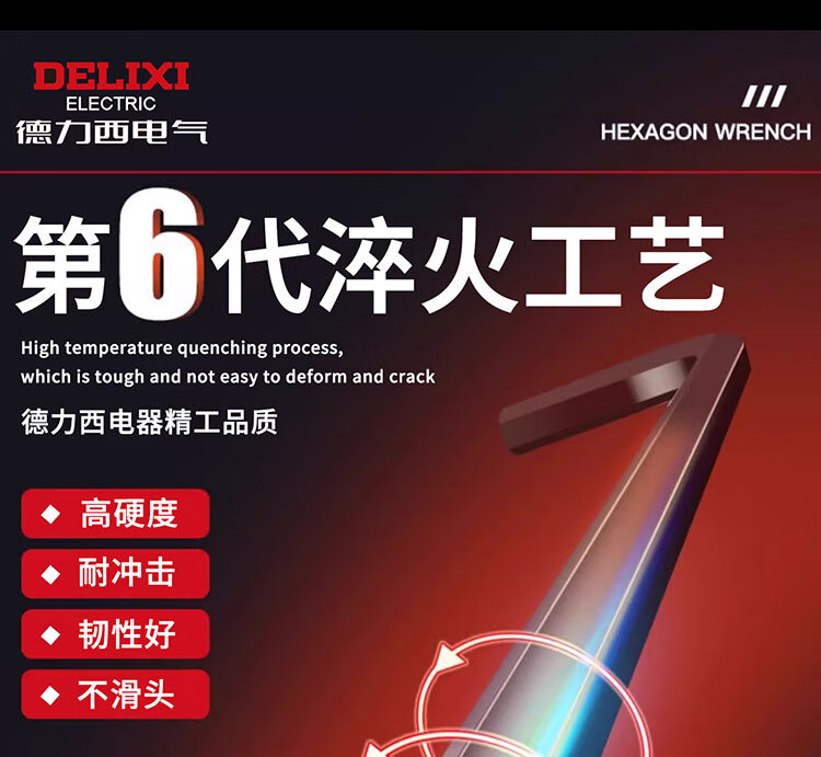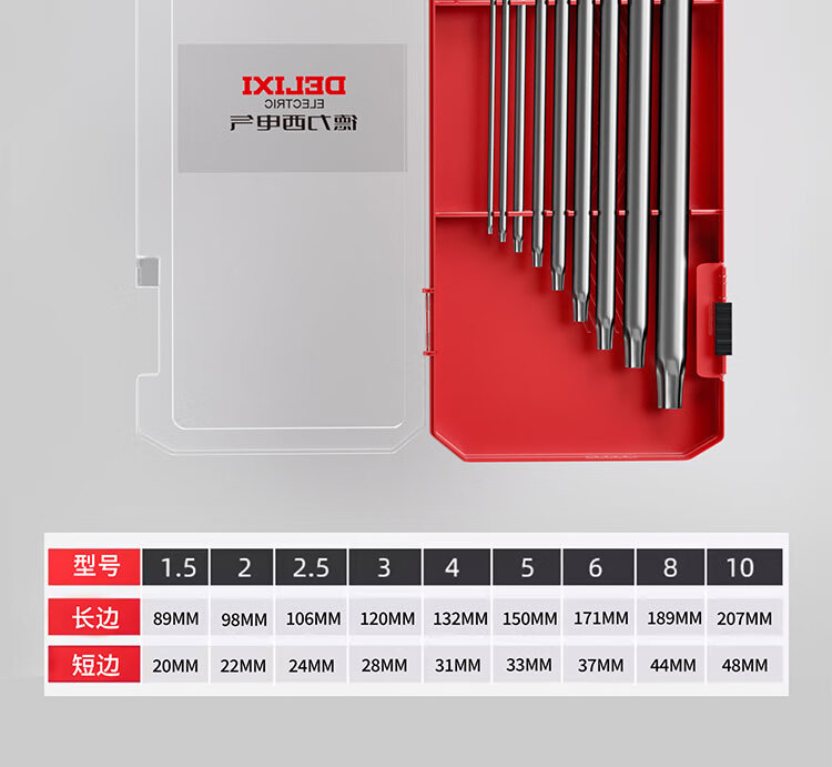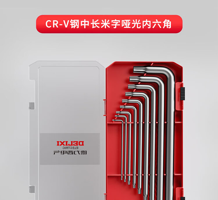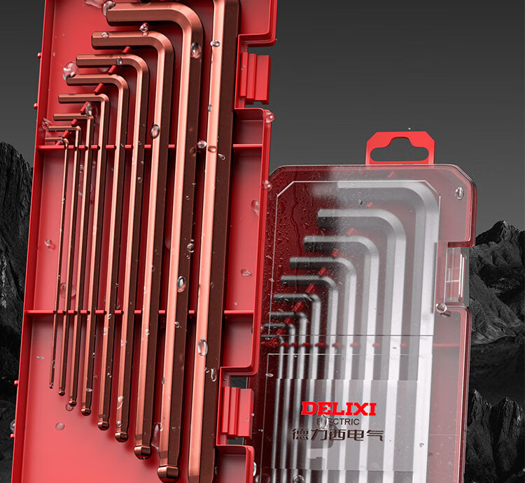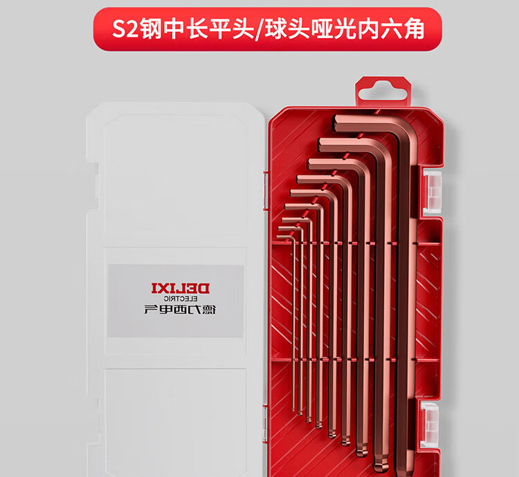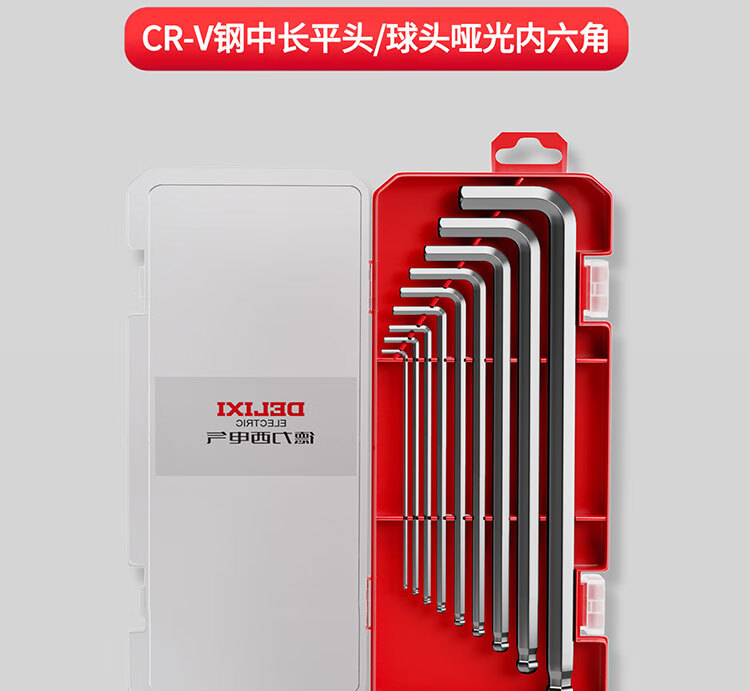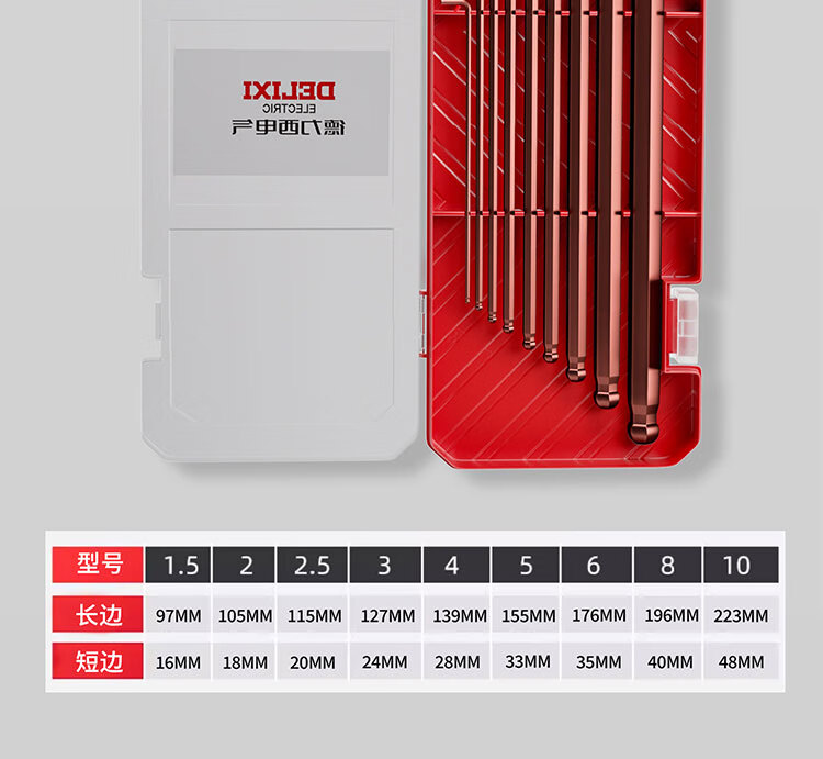 Delixi Electric hexagonal wrench set 6-angle screwdriver inner hexagonal extended plum blossom hexagonal hexagonal hexagonal black 9-piece set medium and long ball head