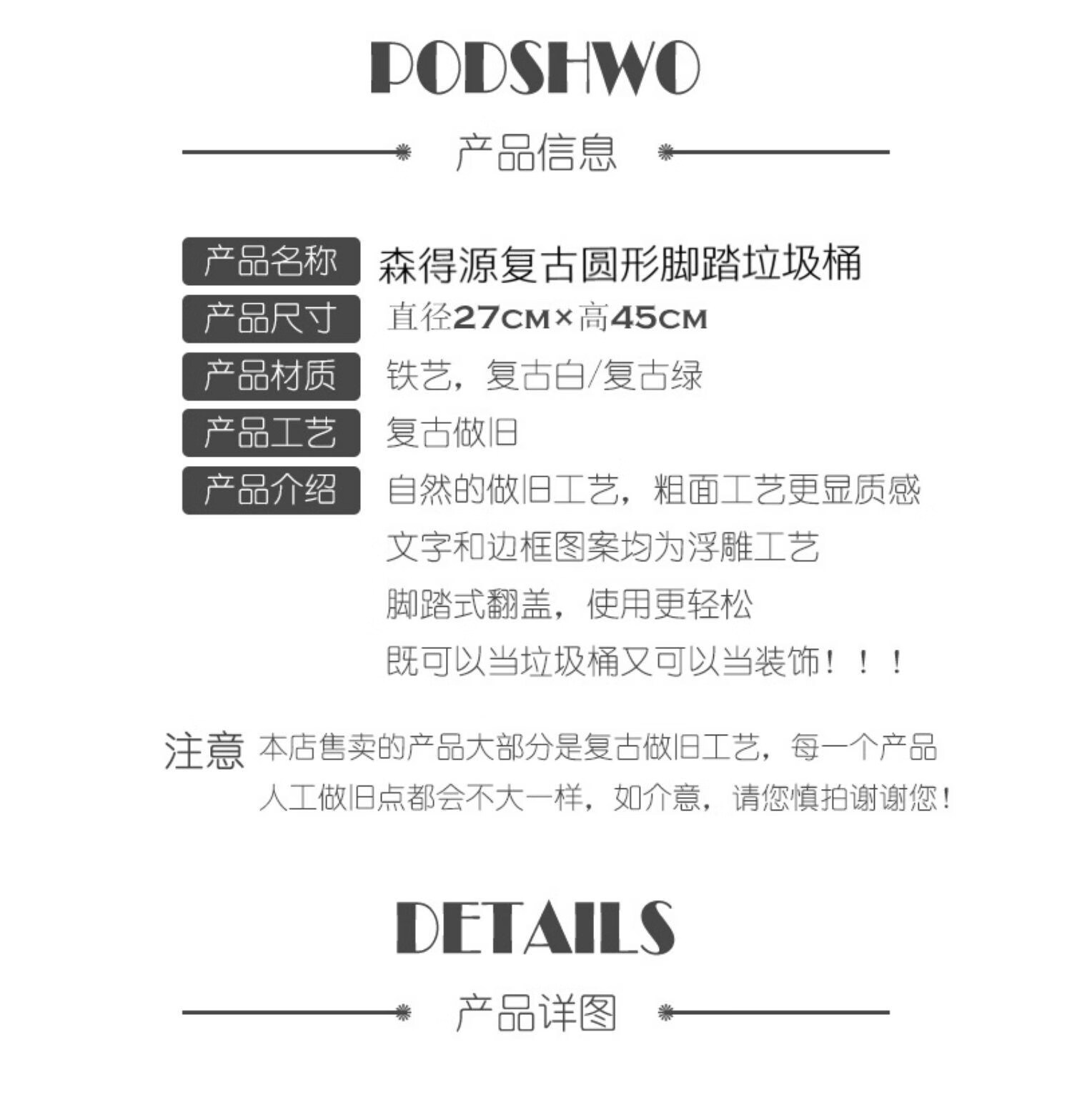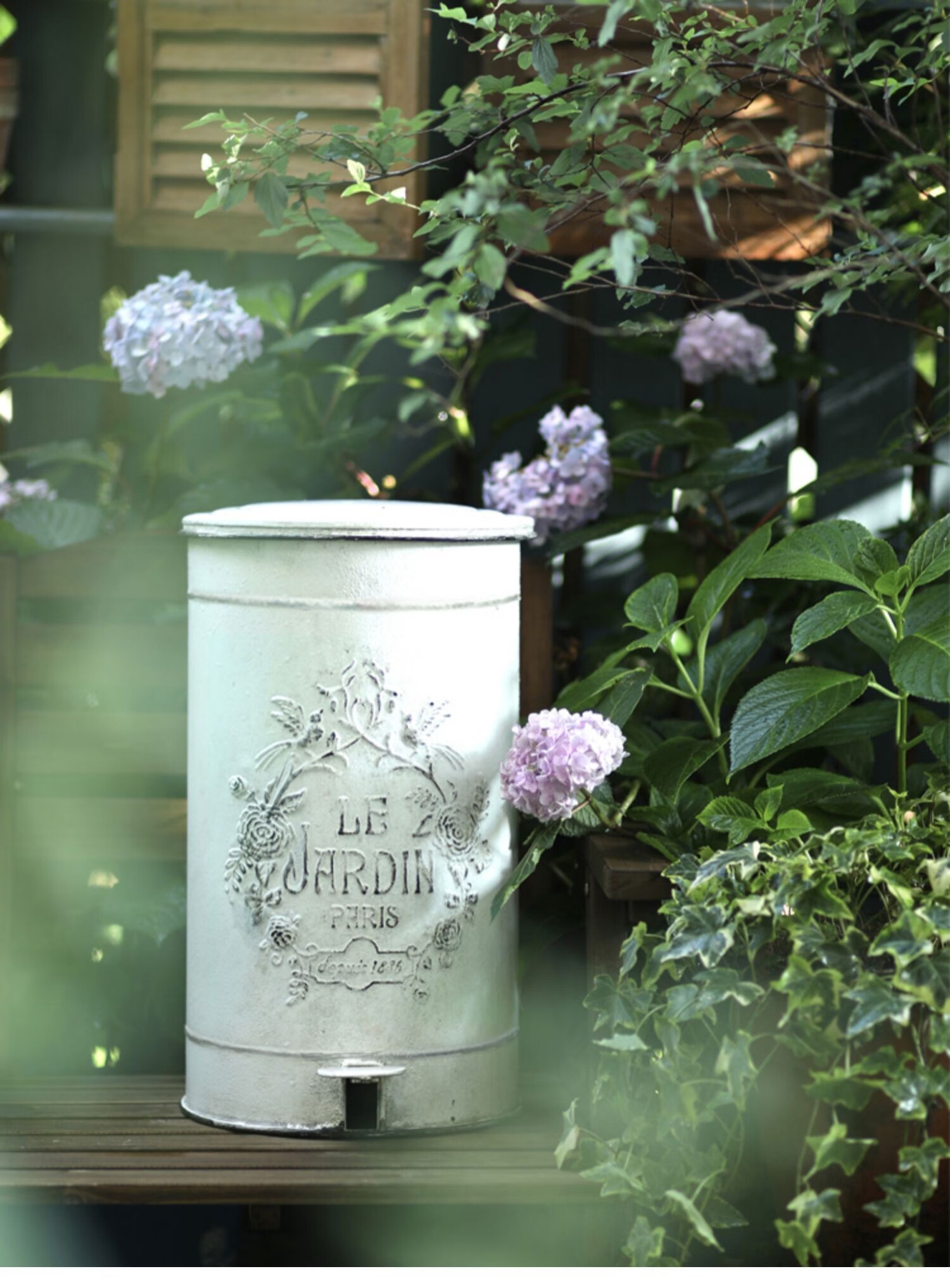 Sendeyuan retro trash can garden iron relief pedal trash can ornaments villa outdoor trash can Senlv 272745cm