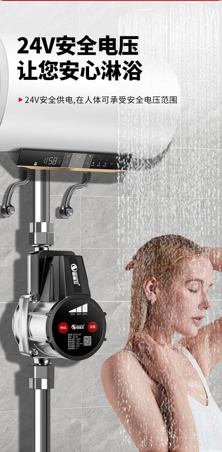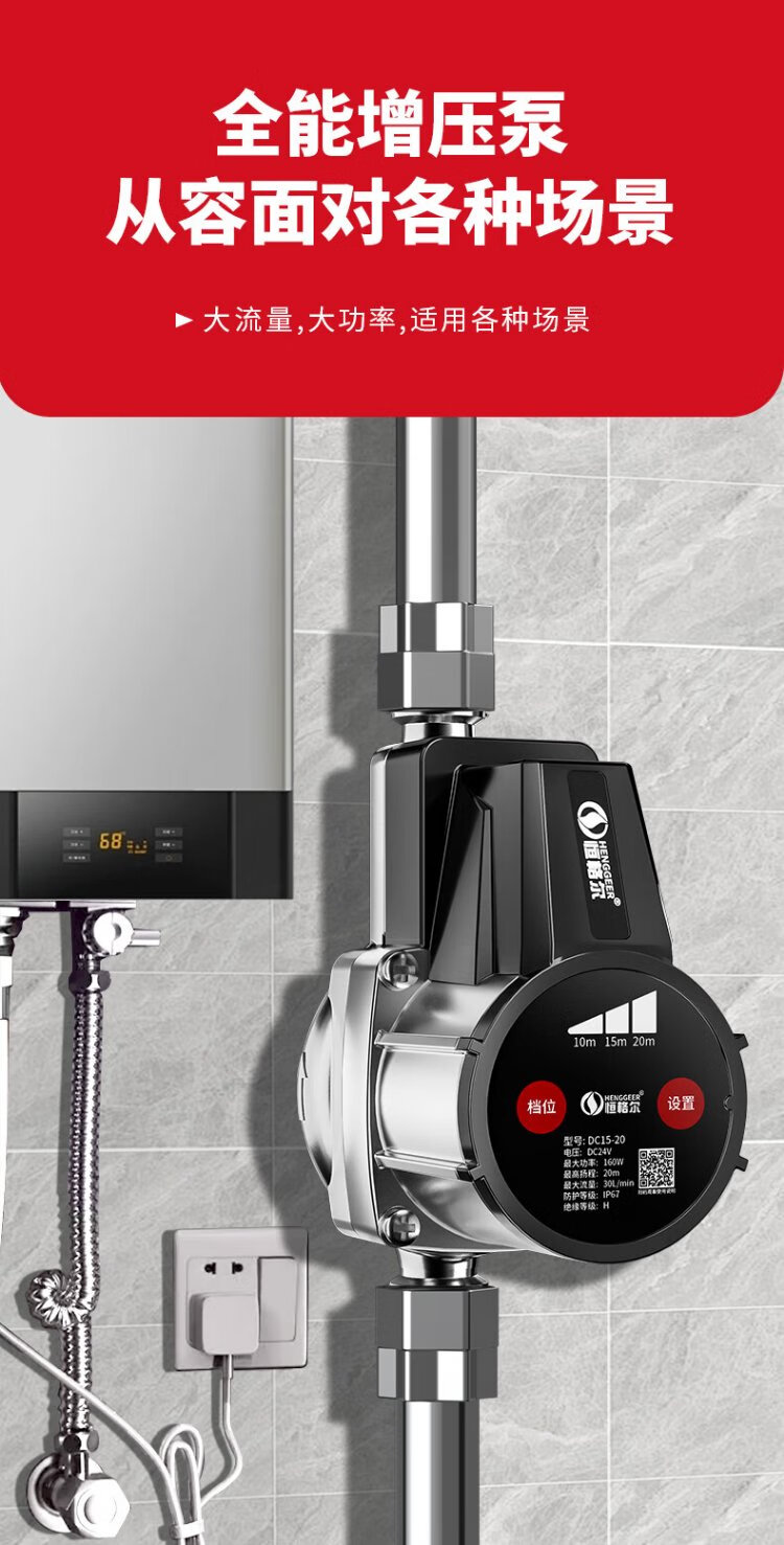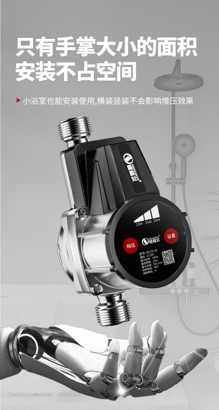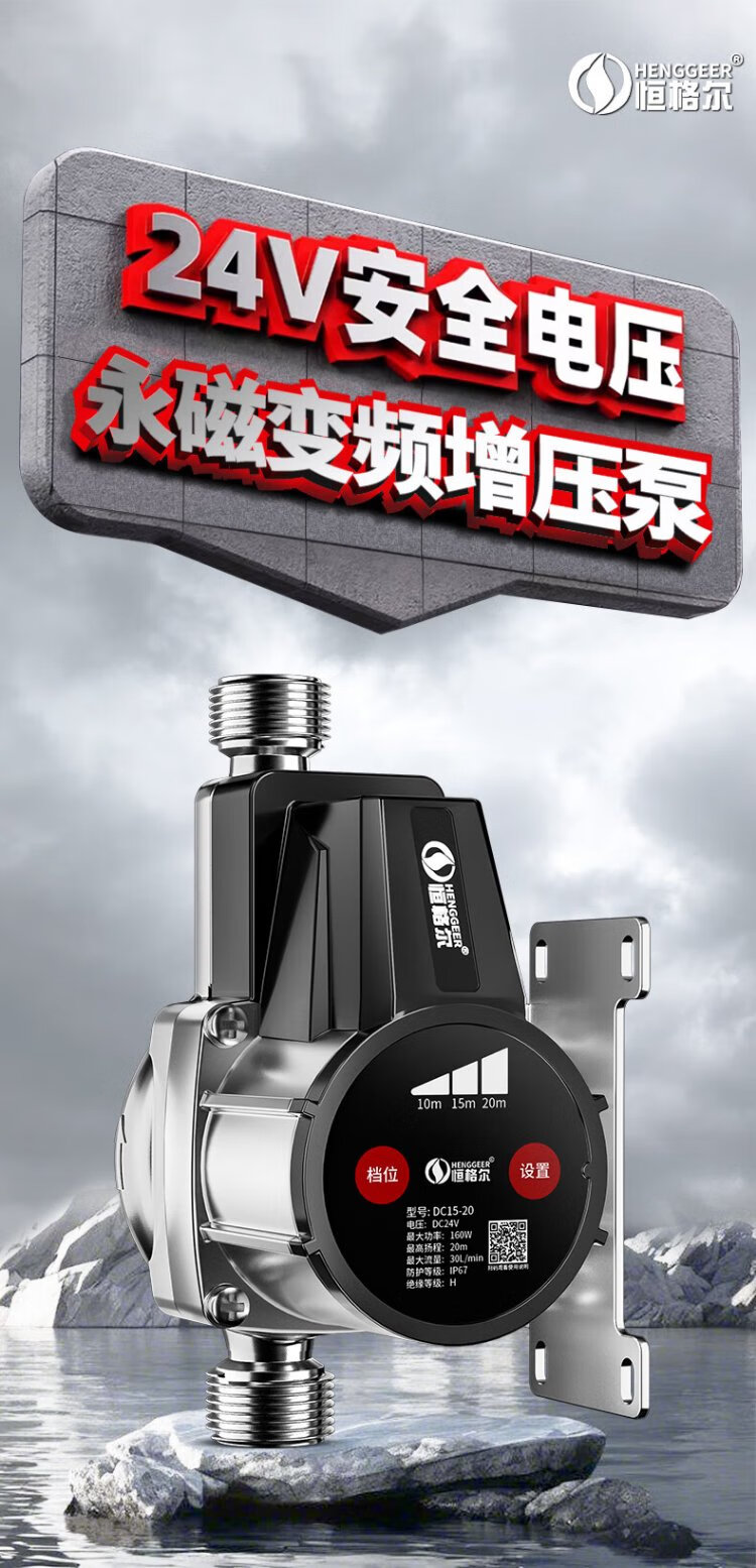 Hengeer booster pump household fully automatic light sound 24V permanent magnet variable frequency booster pump water heater household tap water booster pump 160W permanent magnet variable frequency three-speed adjustment