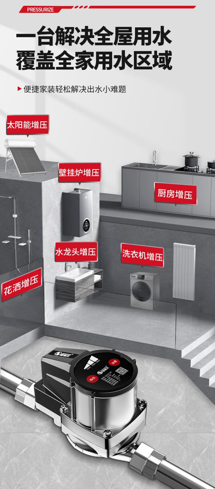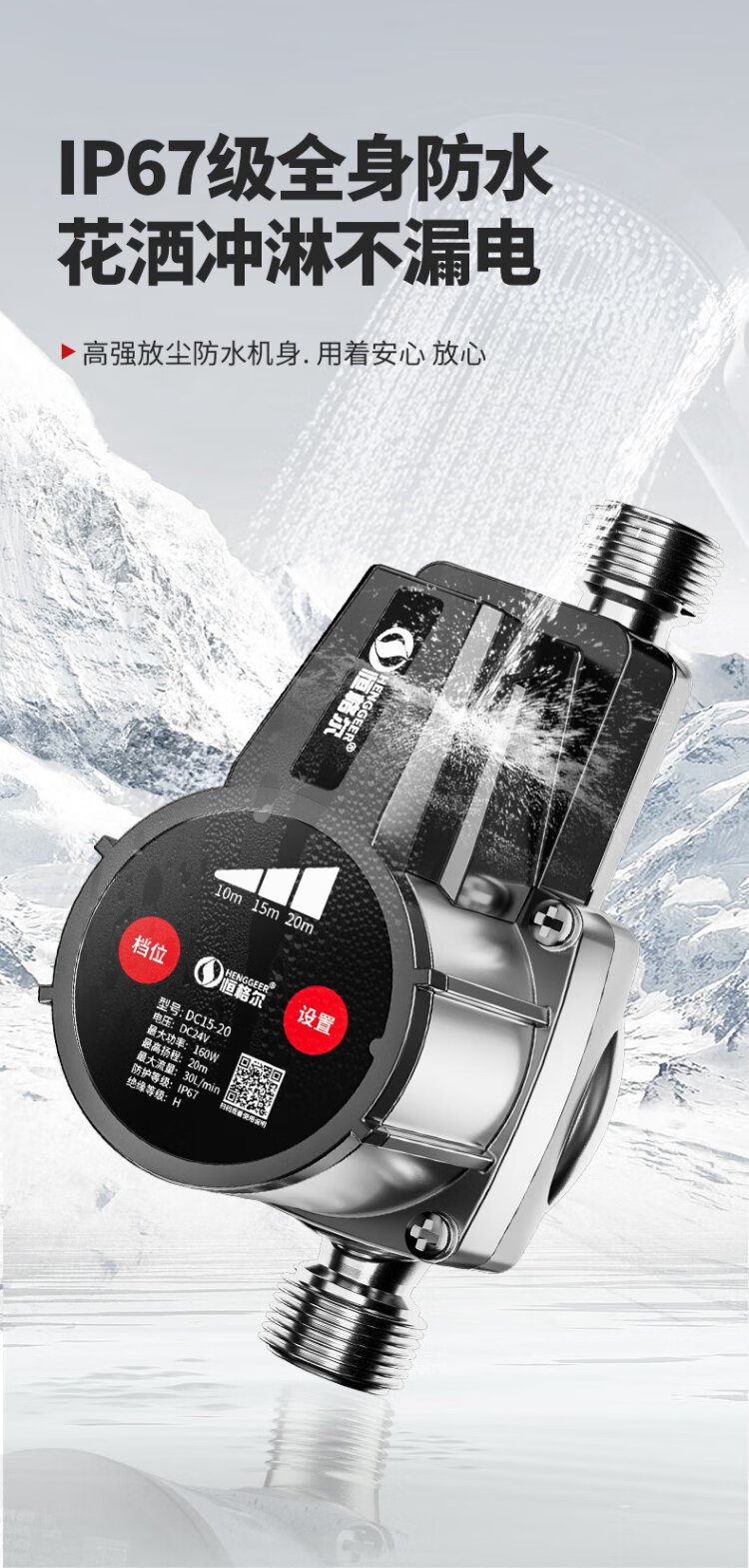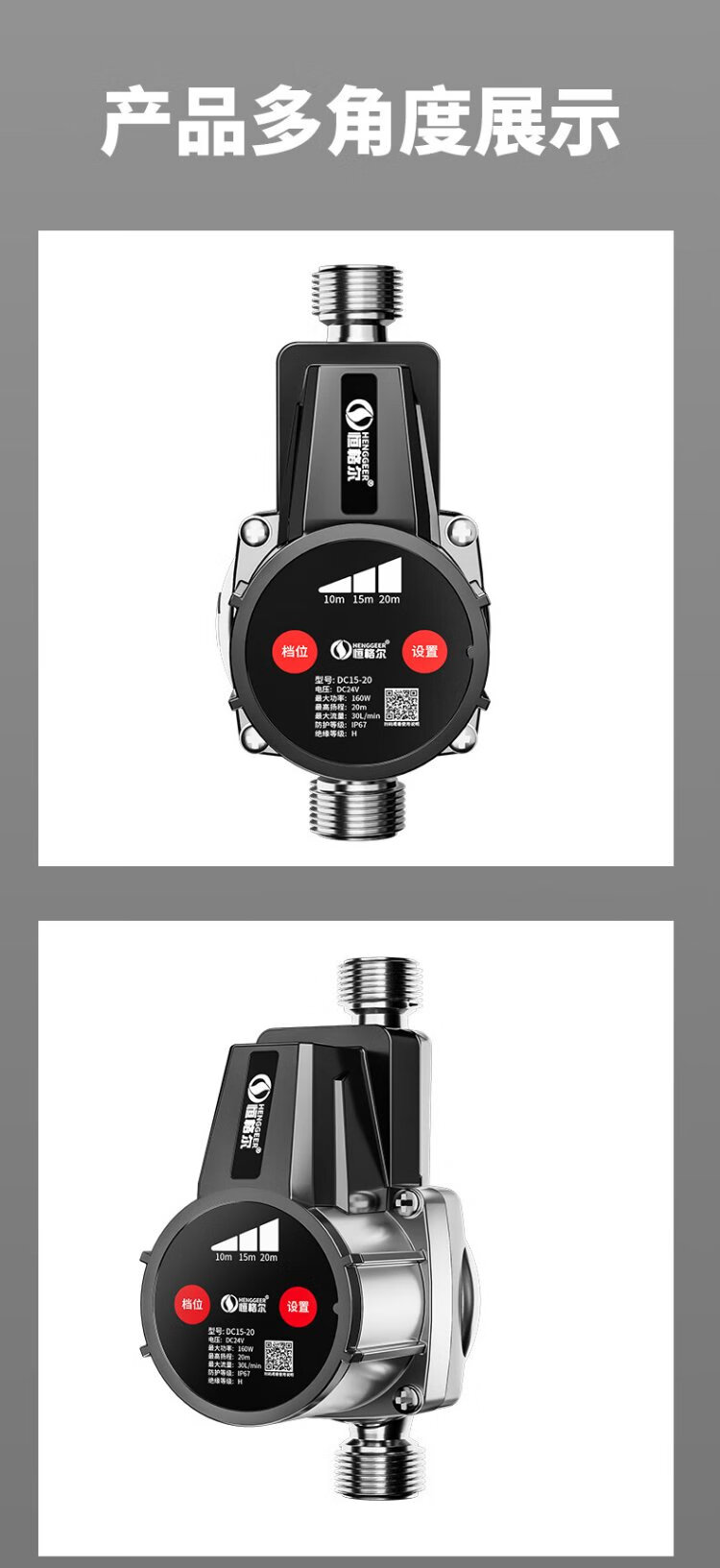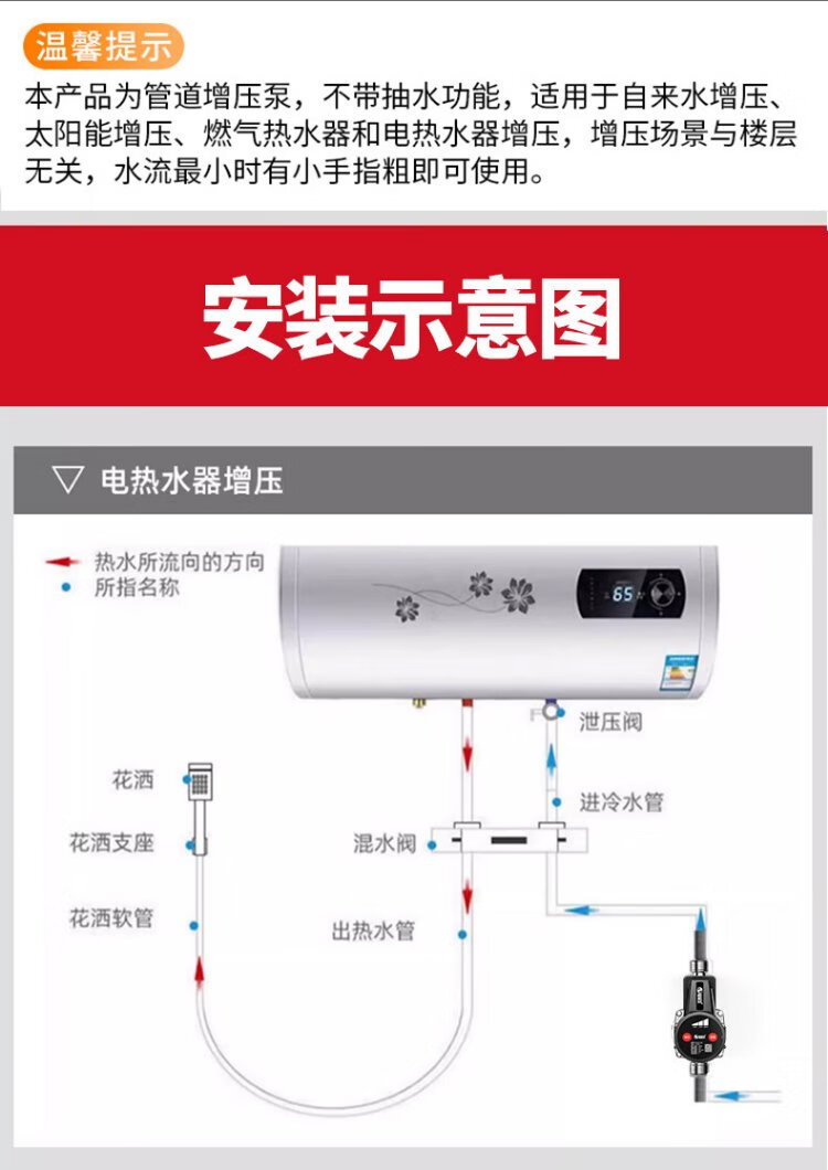 Hengeer booster pump household fully automatic light sound 24V permanent magnet variable frequency booster pump water heater household tap water booster pump 160W permanent magnet variable frequency three-speed adjustment