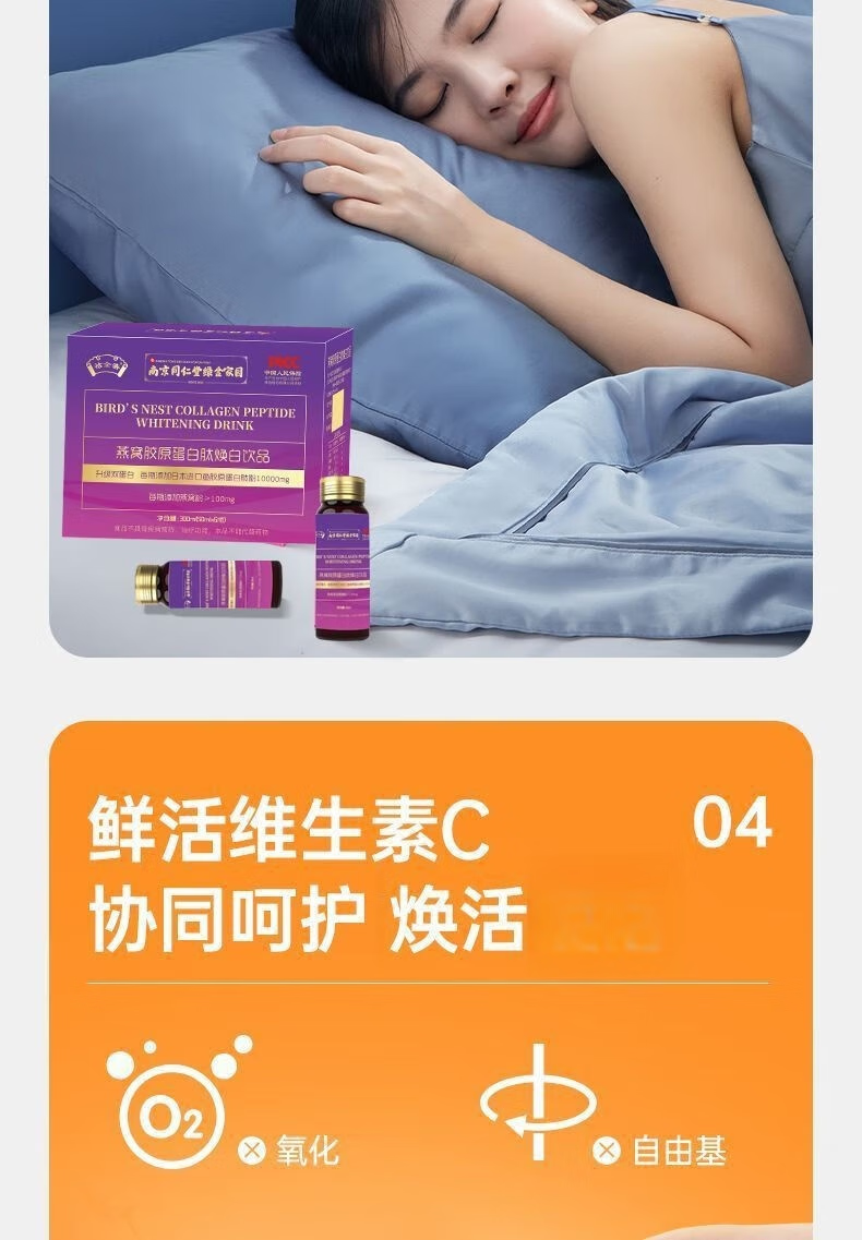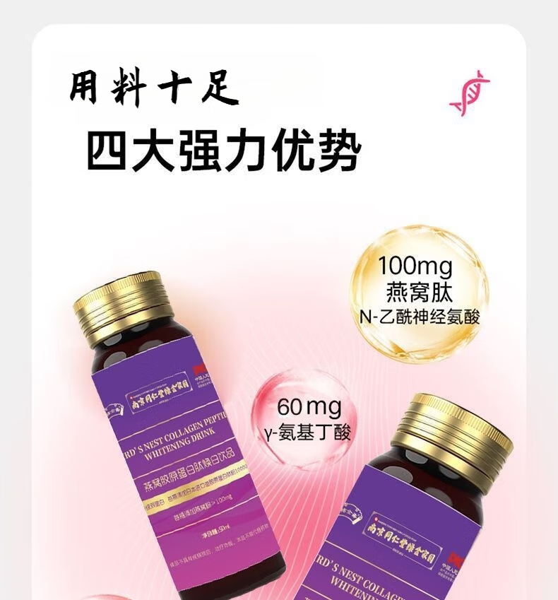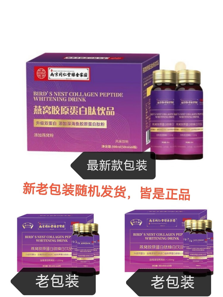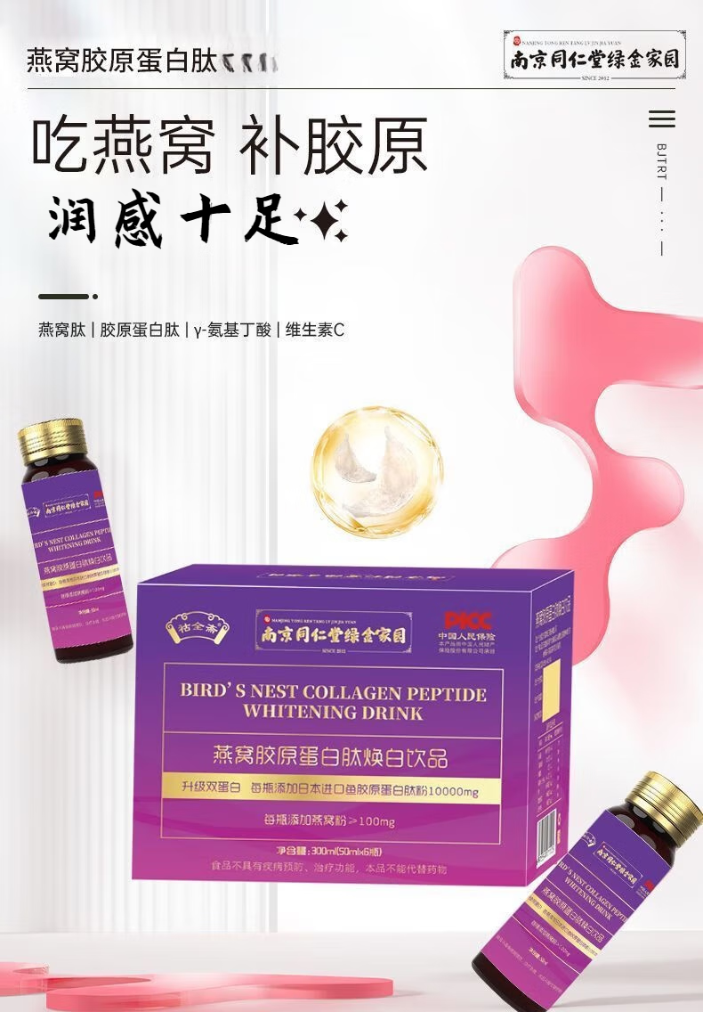 Nanjing Tongrentang Bird's Nest Collagen Oral Liquid Collagen Peptide Genuine Small Molecule Drink 3 boxes 50ml*6 bottles