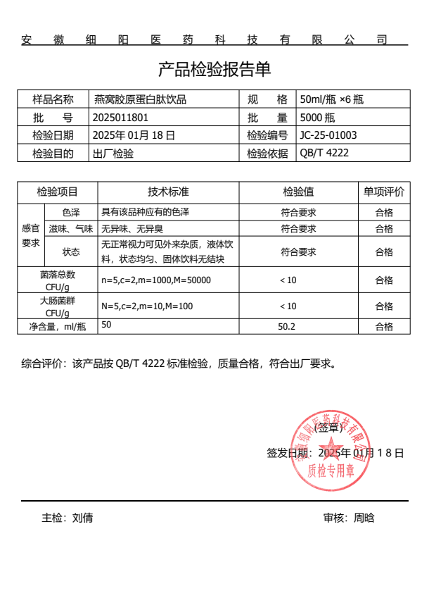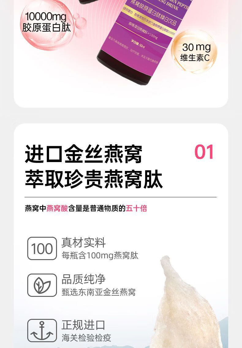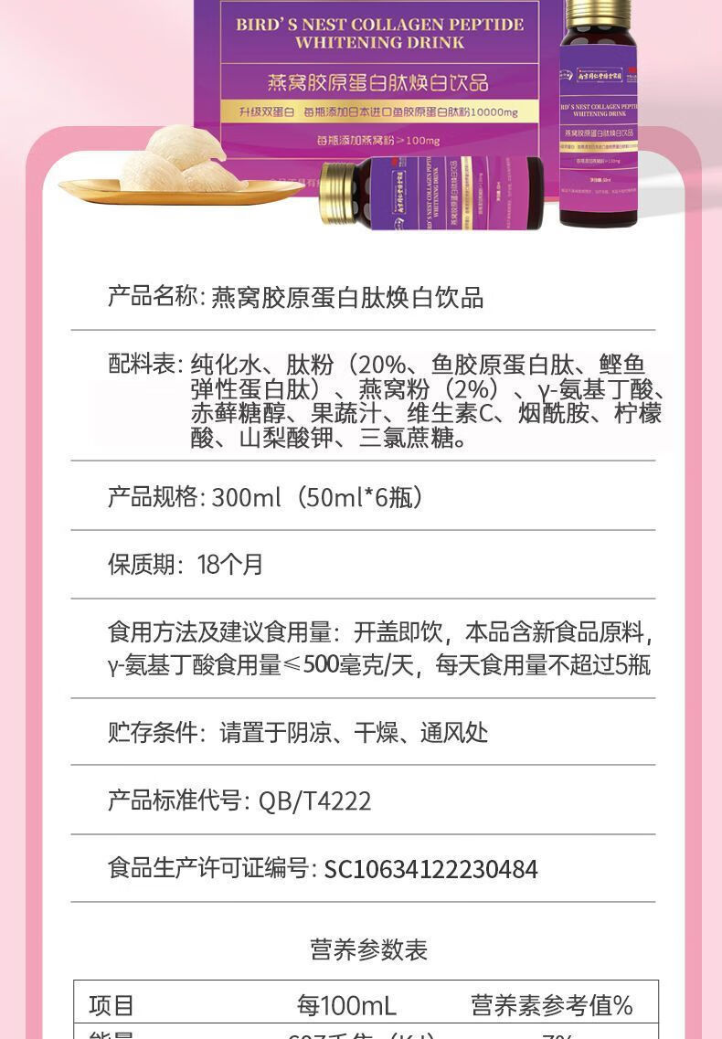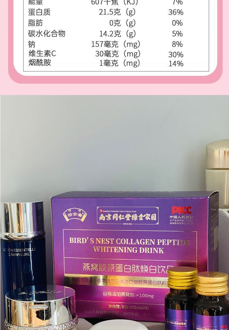 Nanjing Tongrentang Bird's Nest Collagen Oral Liquid Collagen Peptide Genuine Small Molecule Drink 3 boxes 50ml*6 bottles