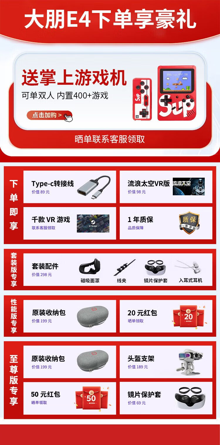 Dapeng E4 PCVR headset, smart glasses, 10,000 Steam games, Pingtai Vision pro, Japanese, Korean, European and American blockbusters, HD viewing, non-AR all-in-one machine, Dapeng E4 lens protective case