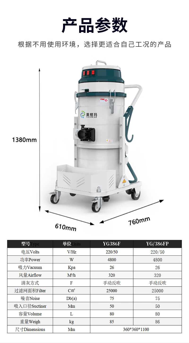 Ingma industrial vacuum cleaner high-power factory workshop dust YG480F wet and dry vacuum cleaner YG386FP (220V 4800W) handheld plus push suction in stock