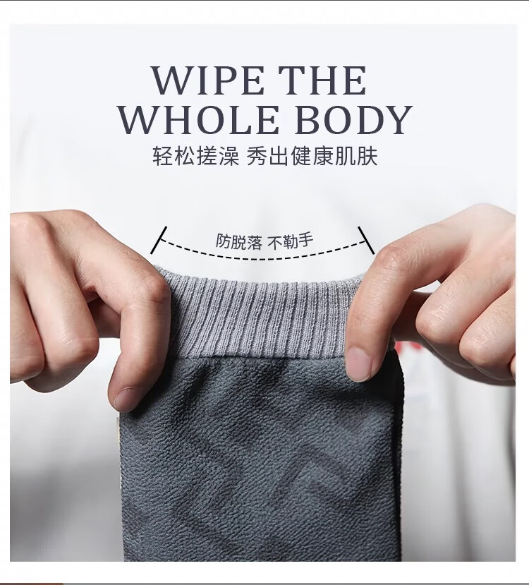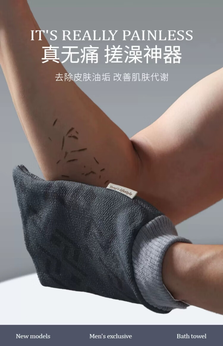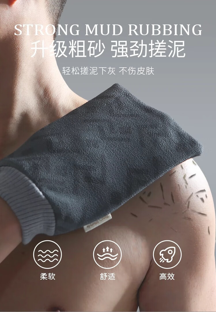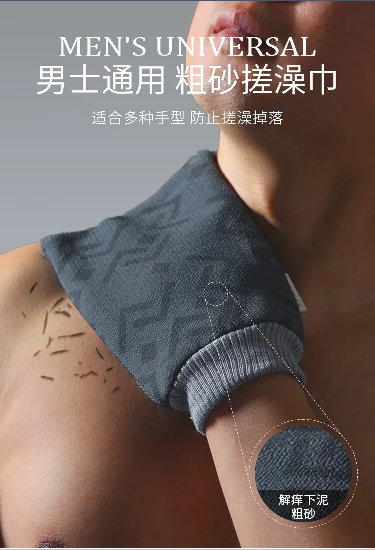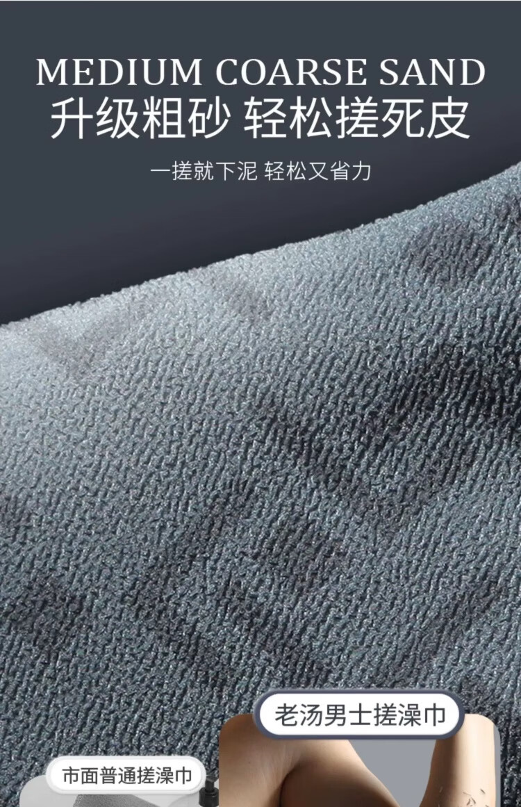 Bath towel for men, high-quality bath towel, coarse sand, powerful mud rub, no harm to the skin, painless bath mud rub artifact, back rub combination, foggy gray + extended back rub towel
