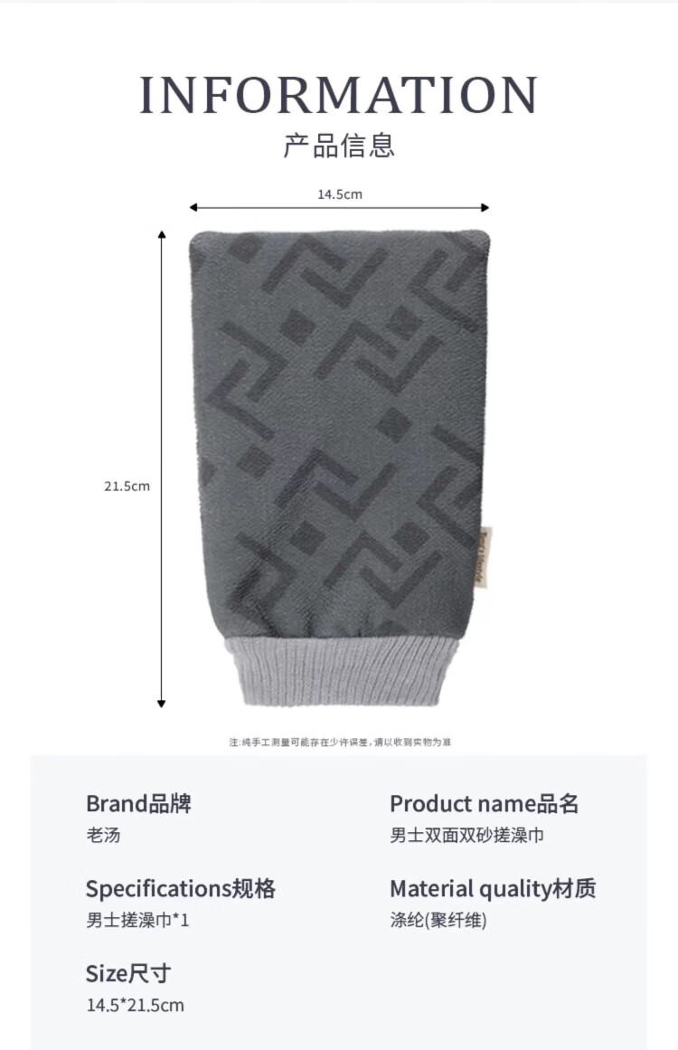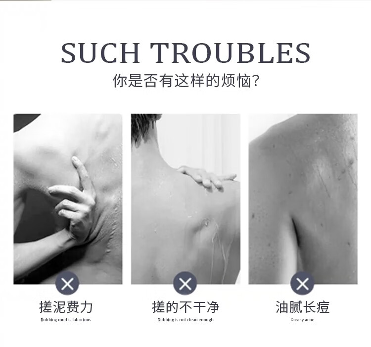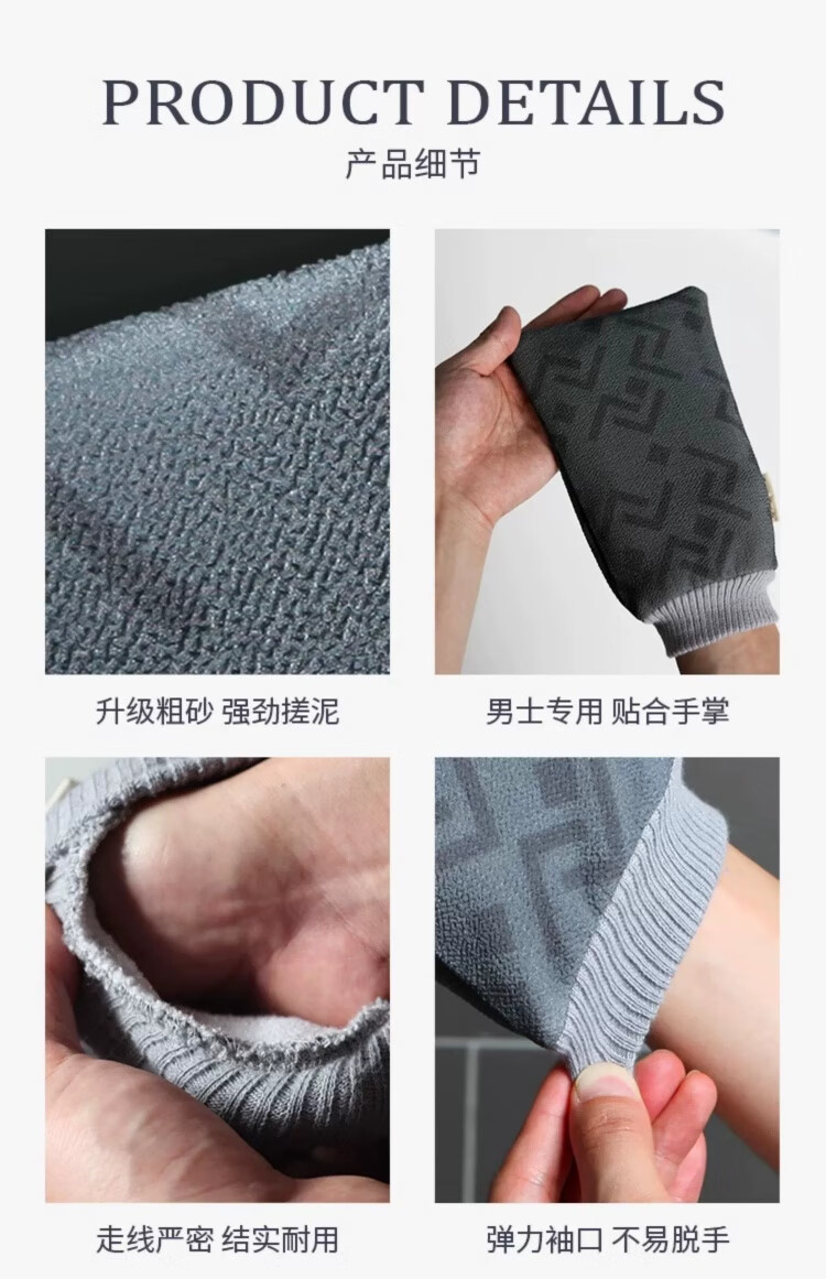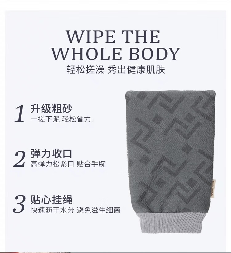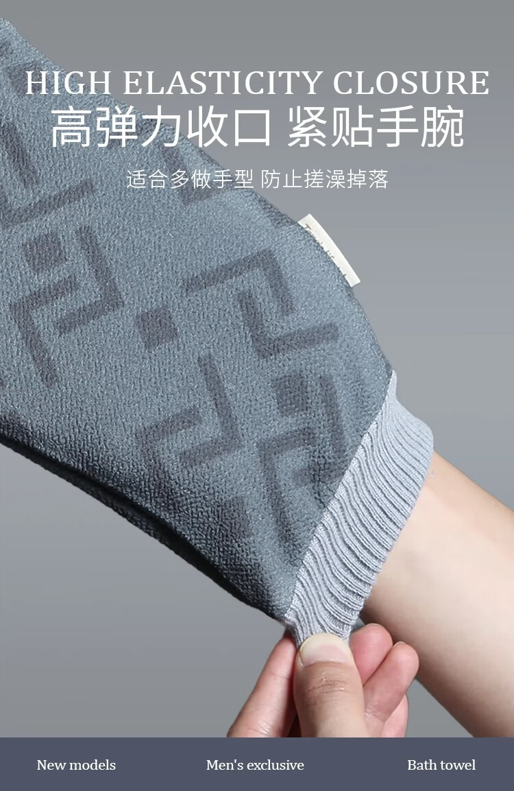 Bath towel for men, high-quality bath towel, coarse sand, powerful mud rub, no harm to the skin, painless bath mud rub artifact, back rub combination, foggy gray + extended back rub towel