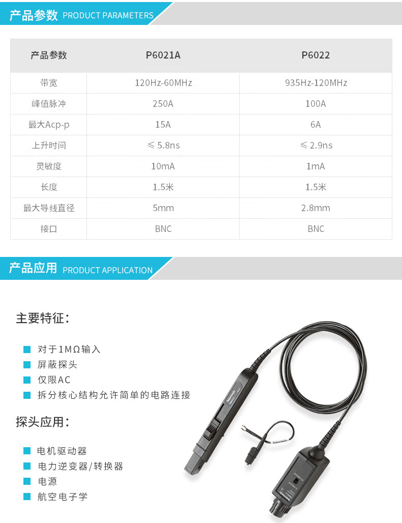 TEKTRONIX Tektronix oscilloscope current probe P6021A bandwidth 60M P6022 bandwidth 120M single AC probe P6021A (60MHz 250A single AC)