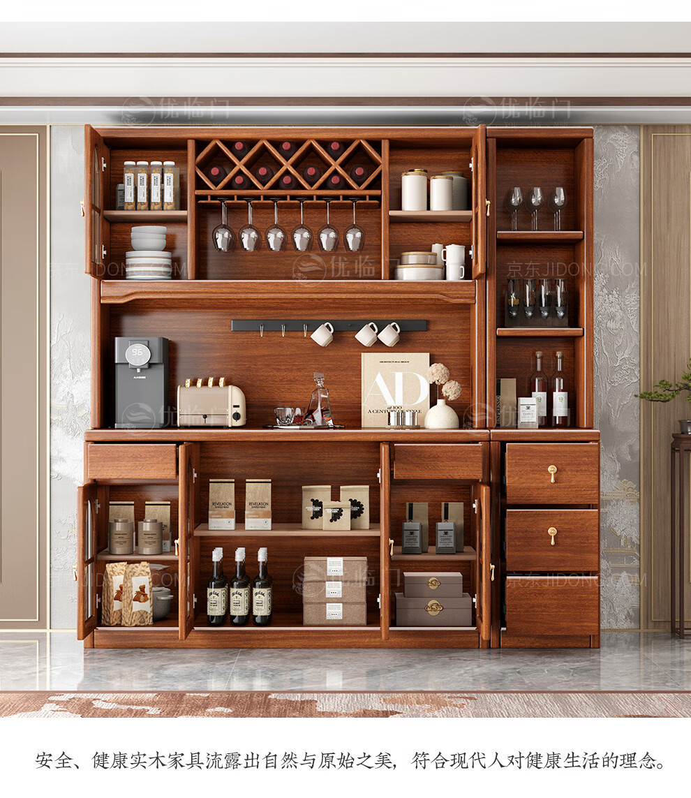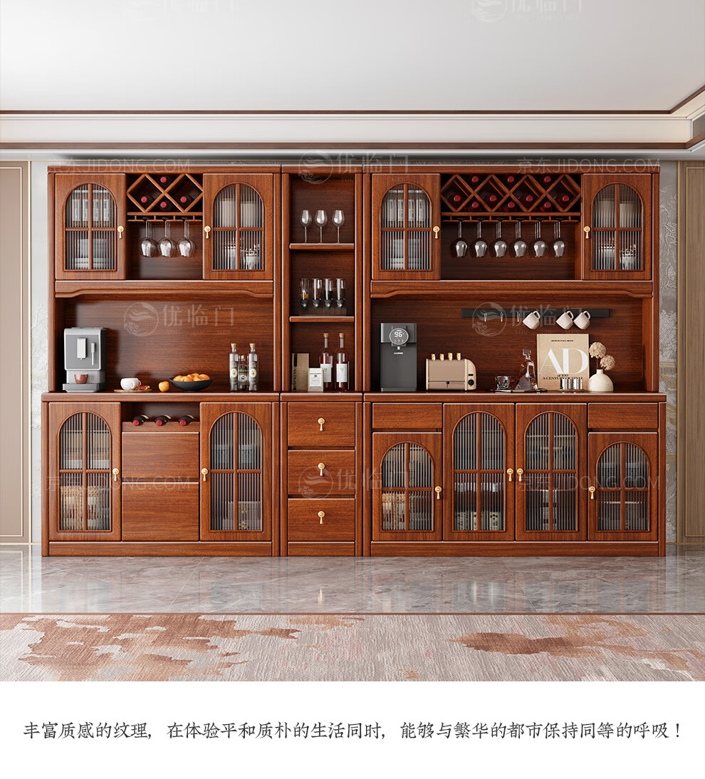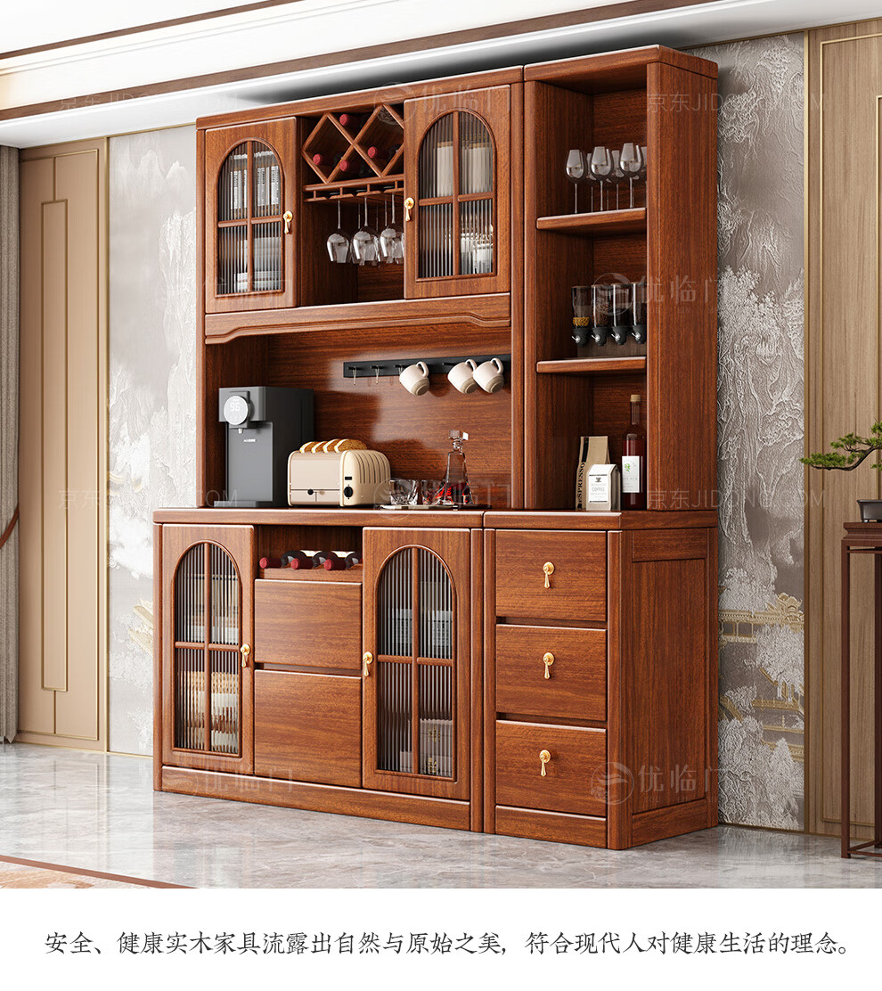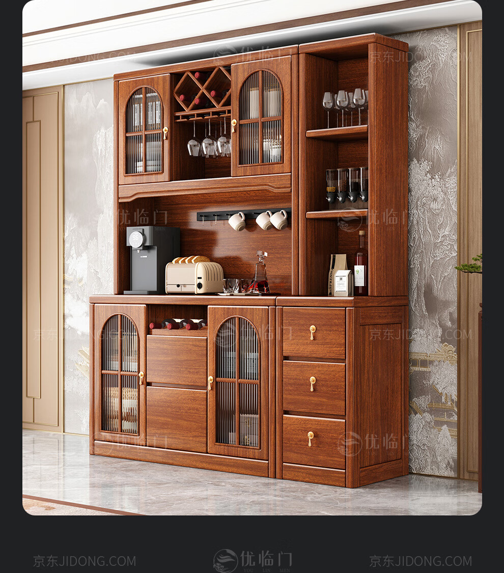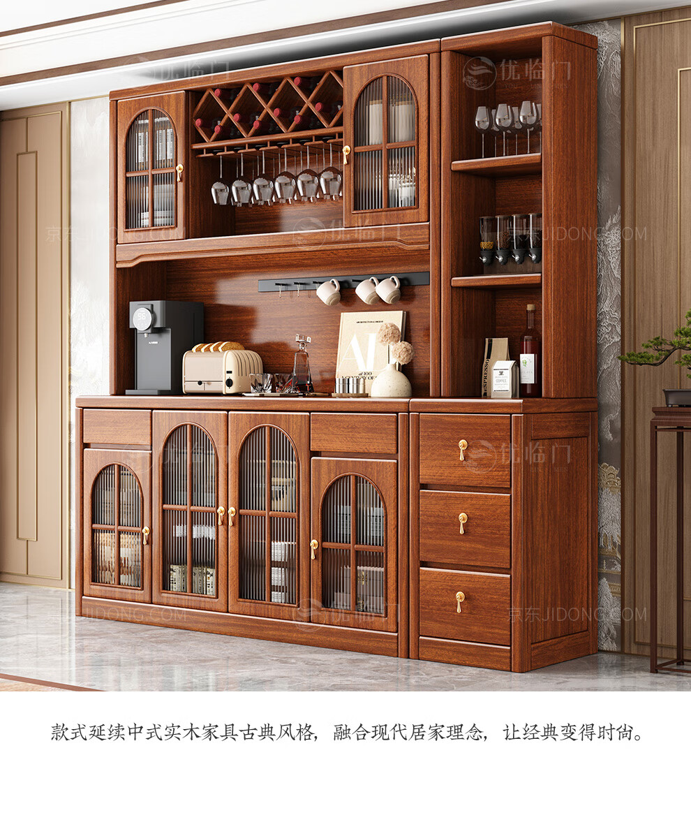 Youlinmen walnut solid wood sideboard storage wine cabinet with drawer glass door storage cabinet restaurant multi-functional cabinet three-door sideboard