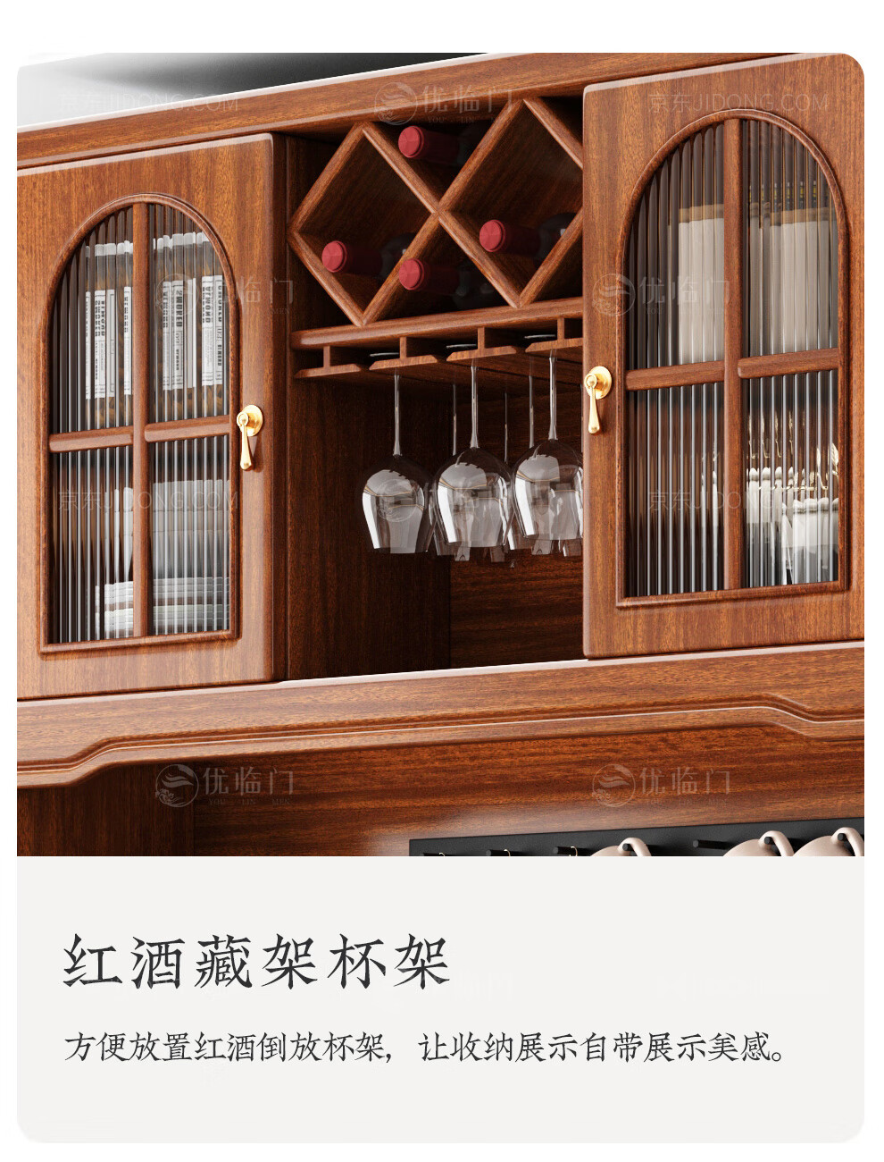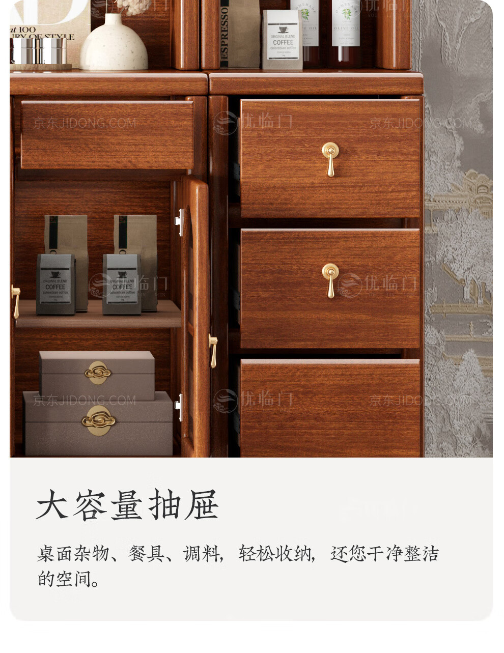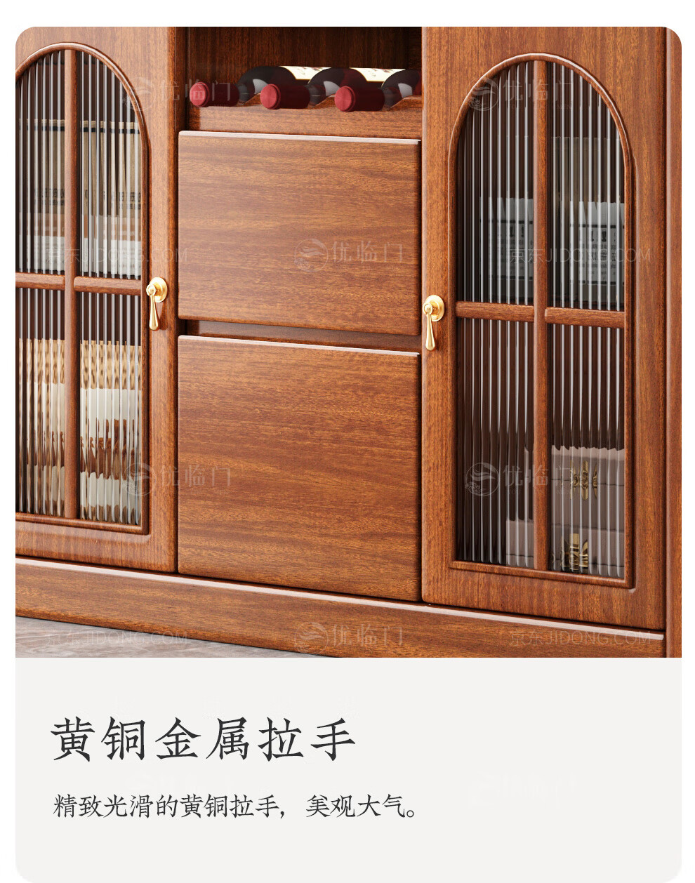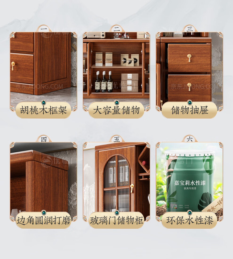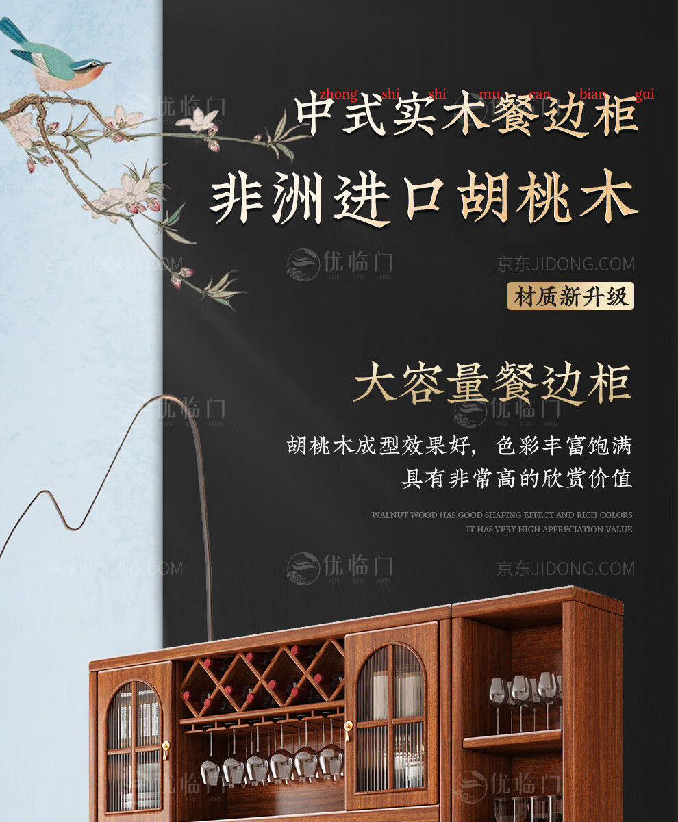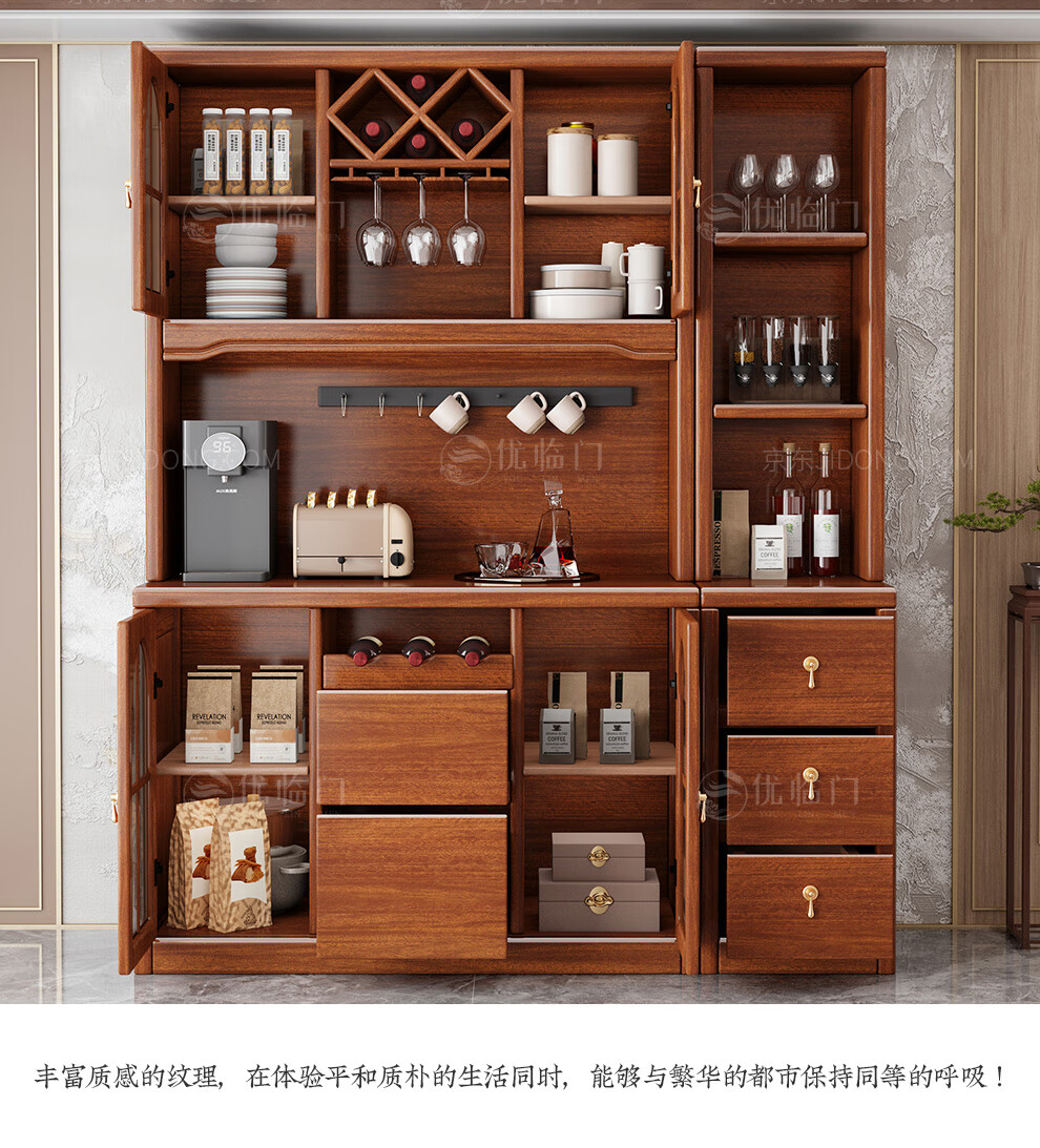 Youlinmen walnut solid wood sideboard storage wine cabinet with drawer glass door storage cabinet restaurant multi-functional cabinet three-door sideboard
