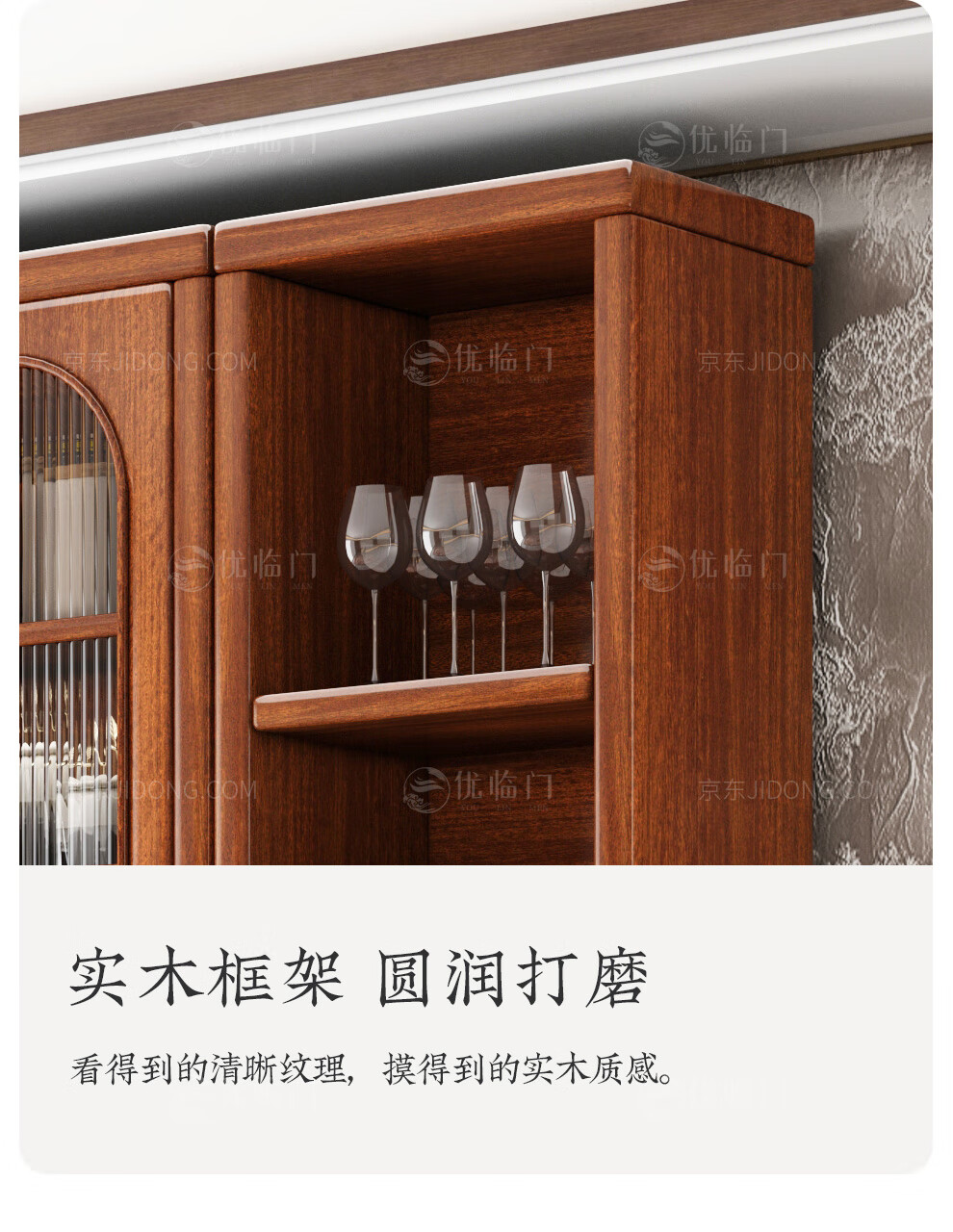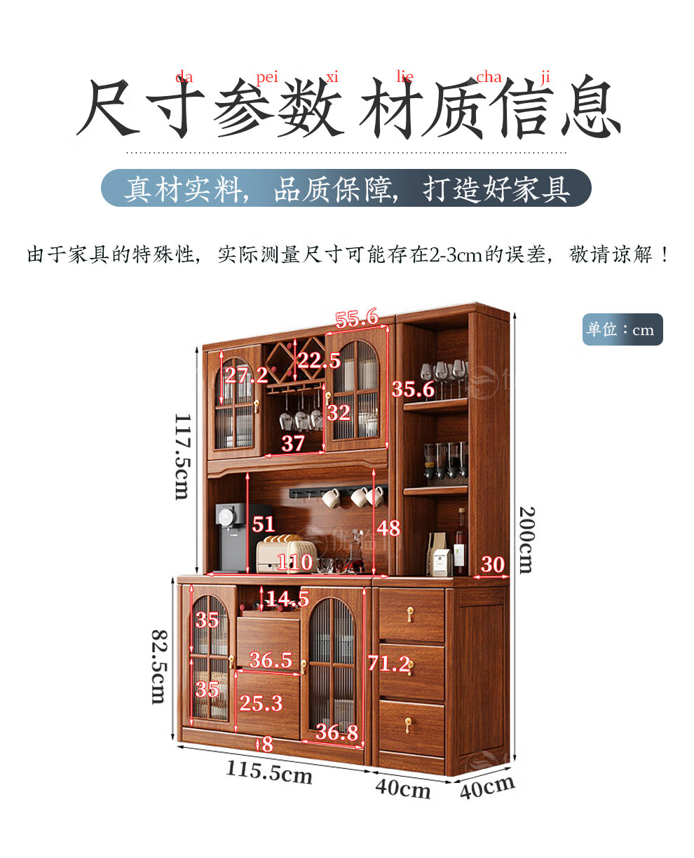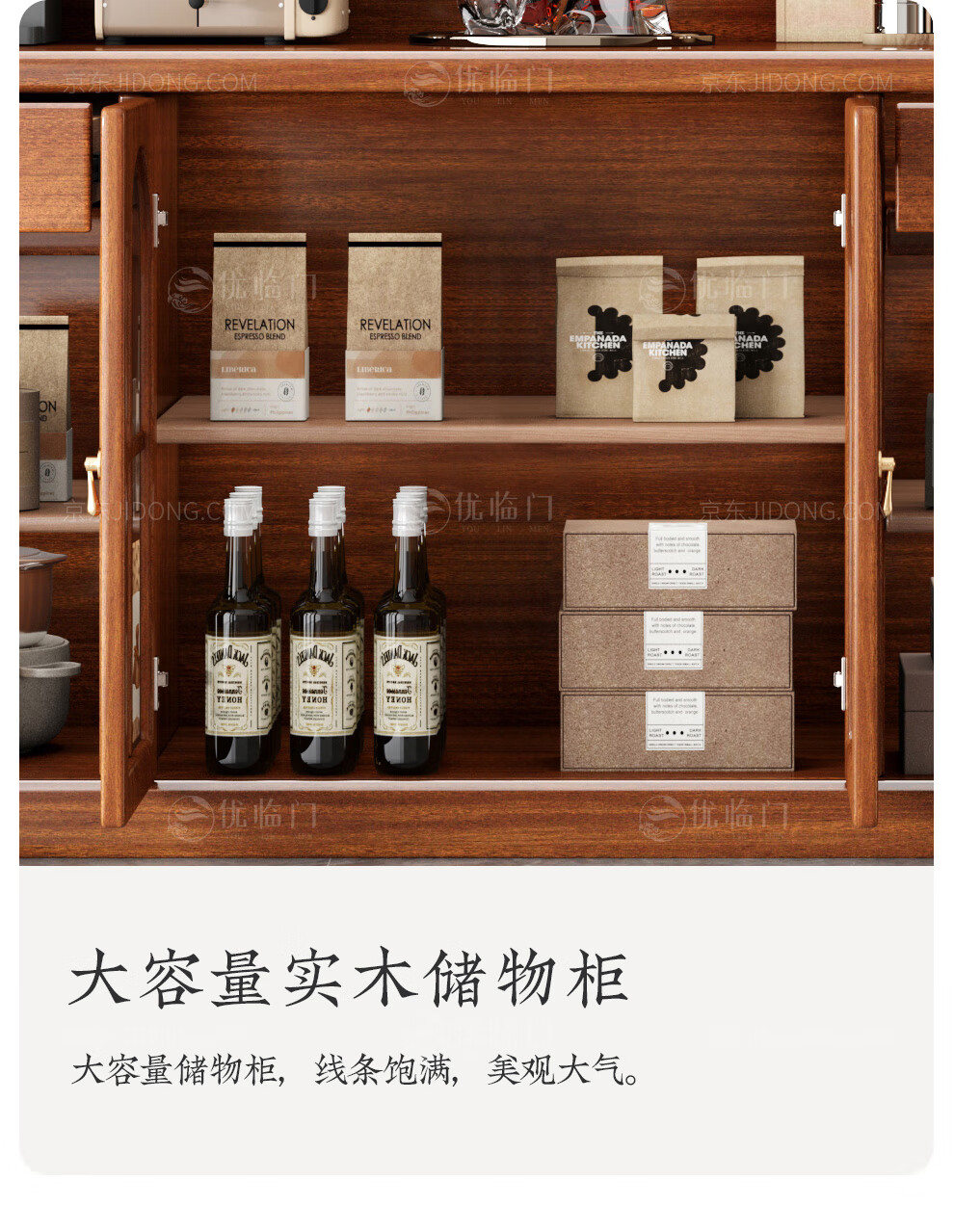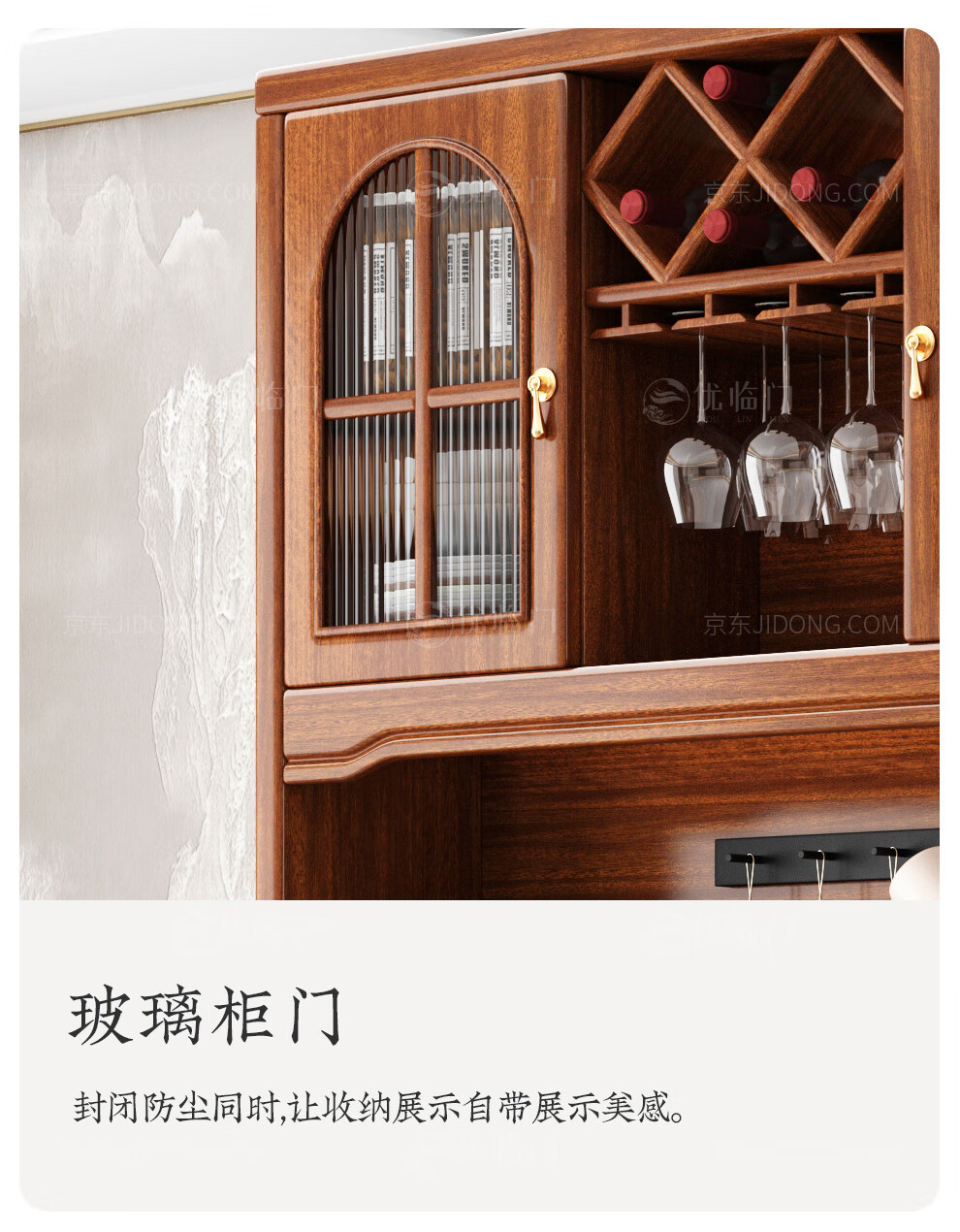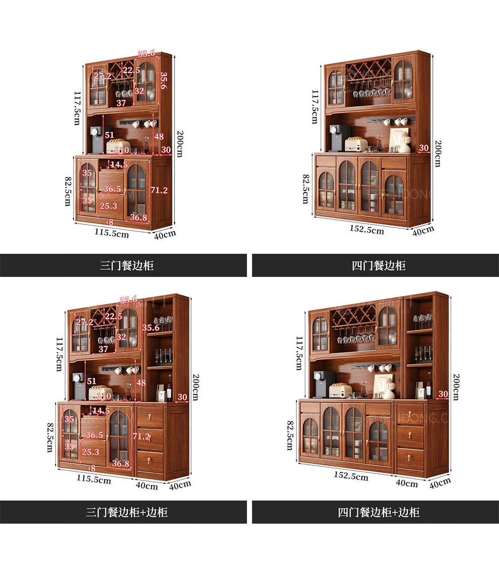 Youlinmen walnut solid wood sideboard storage wine cabinet with drawer glass door storage cabinet restaurant multi-functional cabinet three-door sideboard