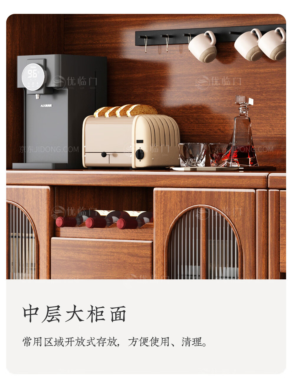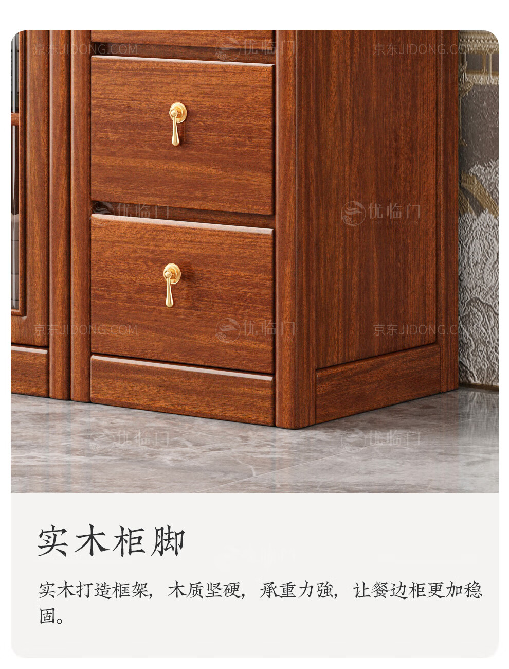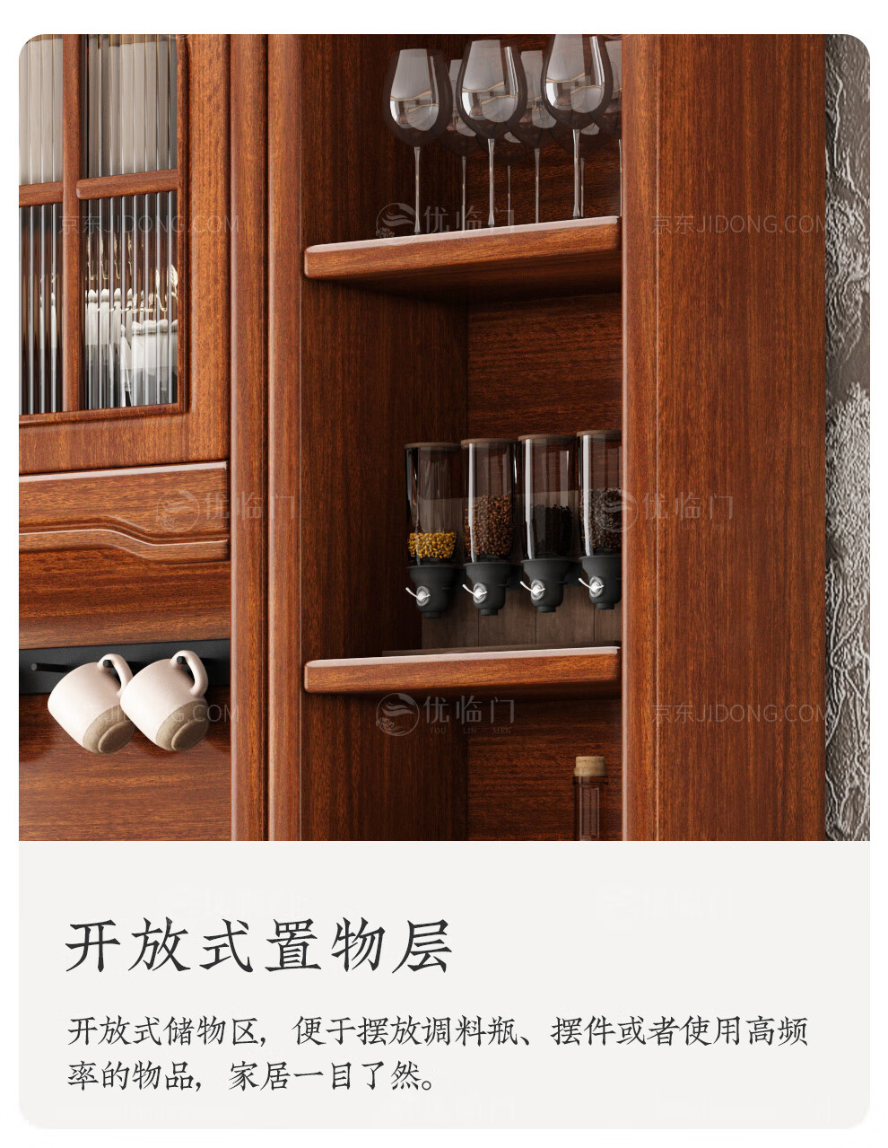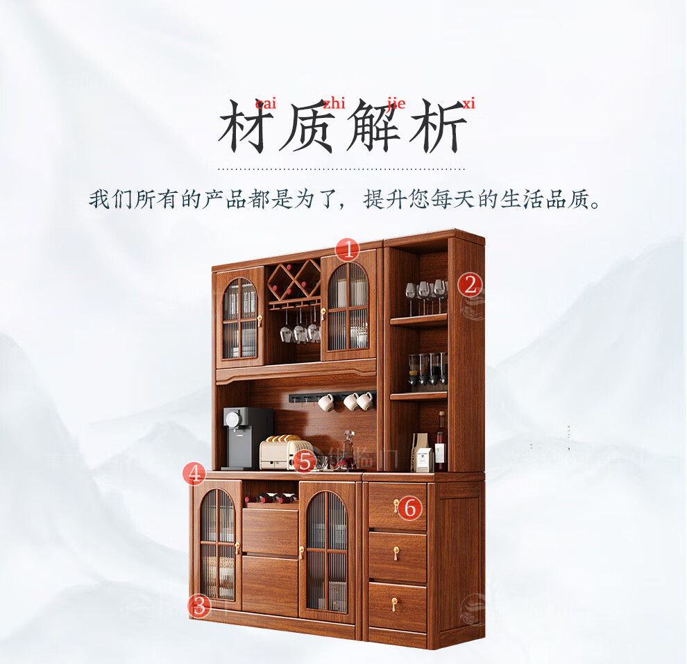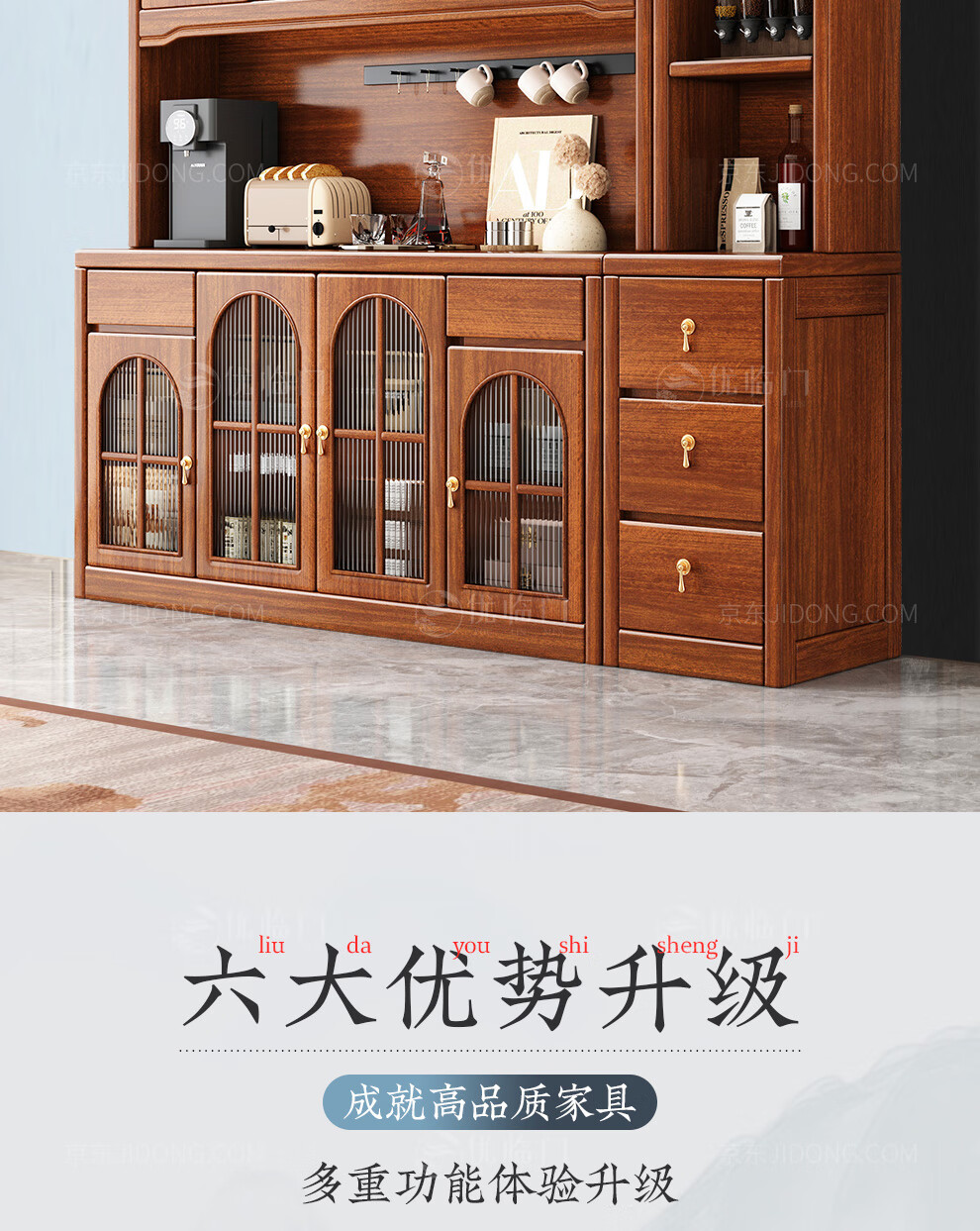 Youlinmen walnut solid wood sideboard storage wine cabinet with drawer glass door storage cabinet restaurant multi-functional cabinet three-door sideboard