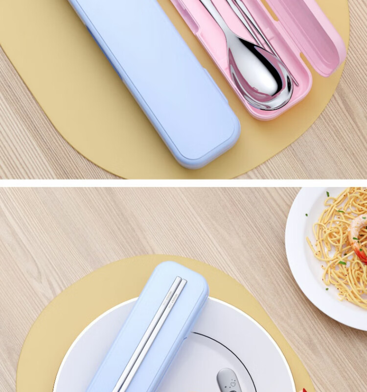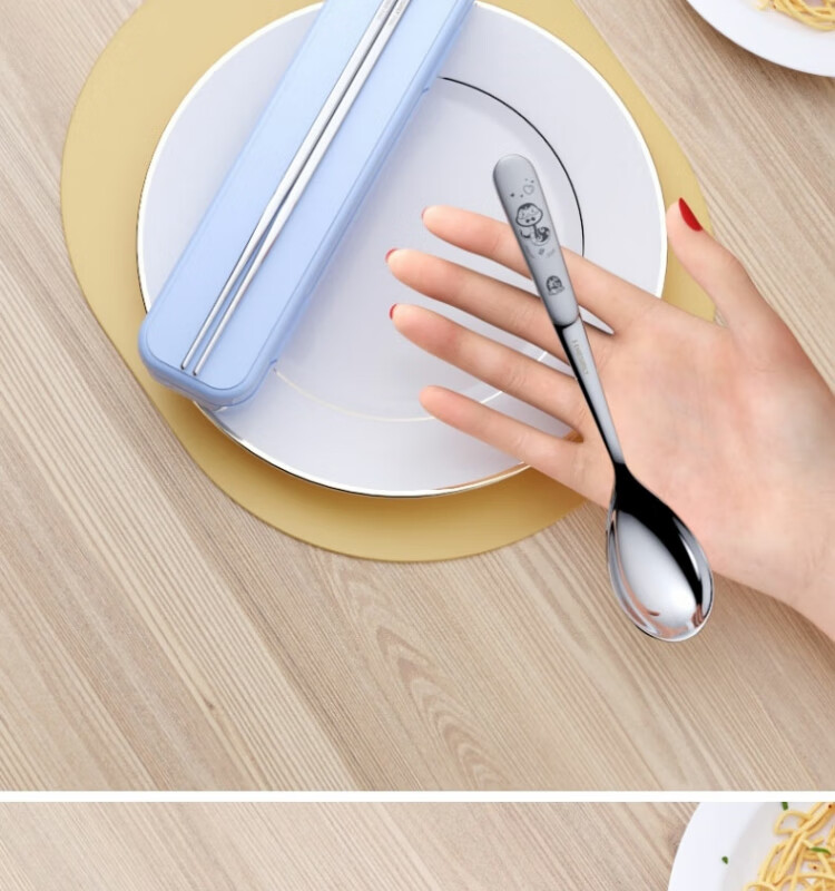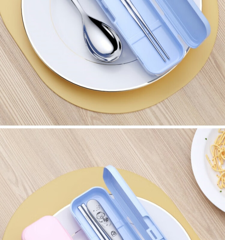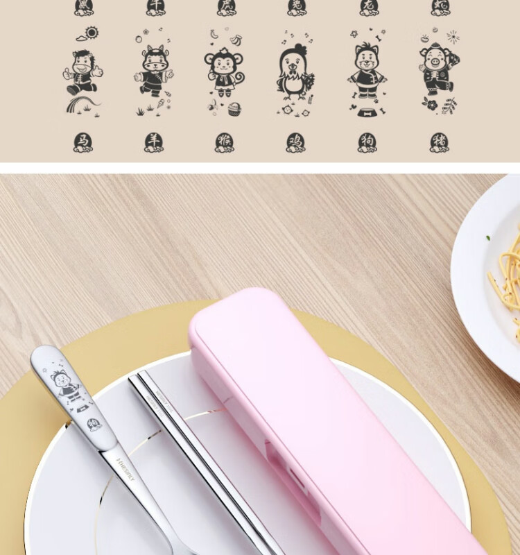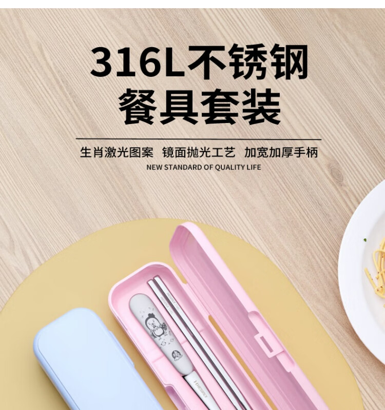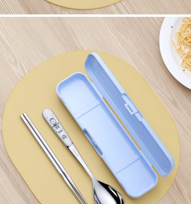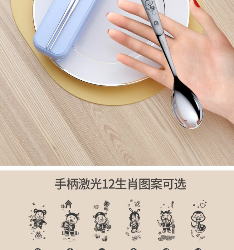 Hexingli 316 stainless steel portable tableware zodiac spoon student chopsticks spoon set work and travel storage box for one person snake spoon + blue box