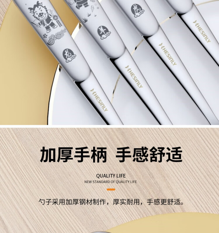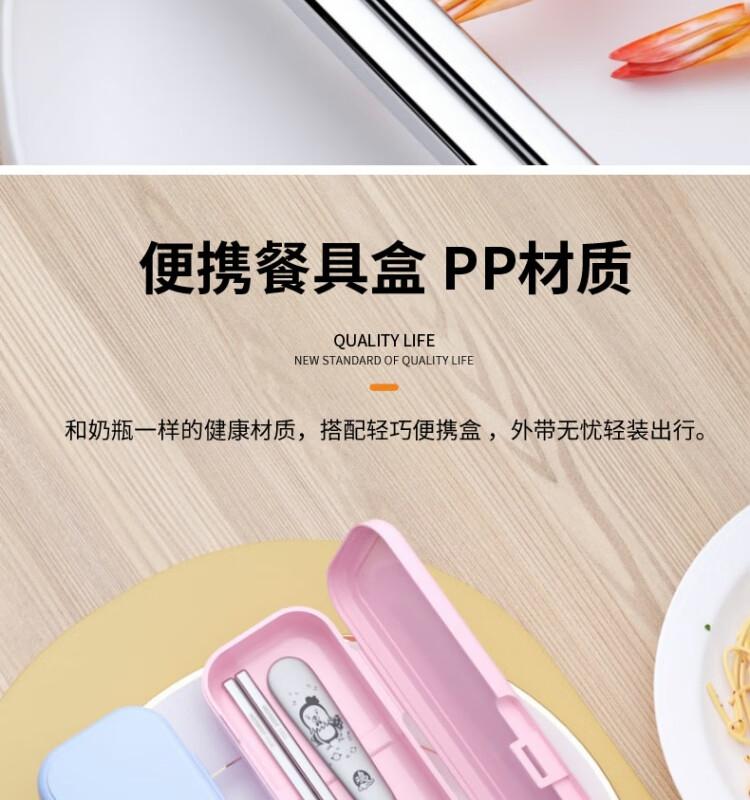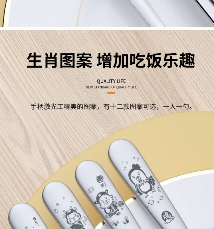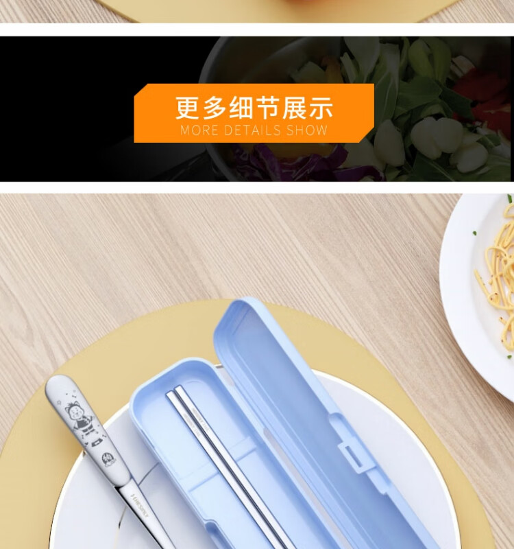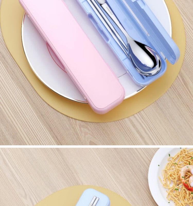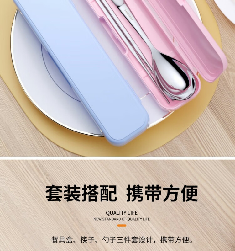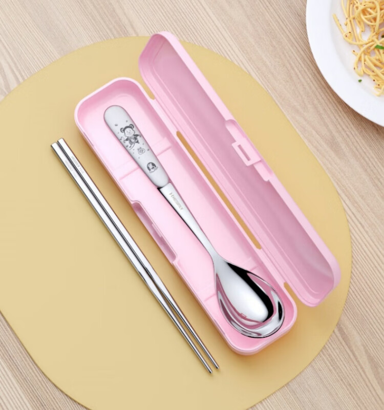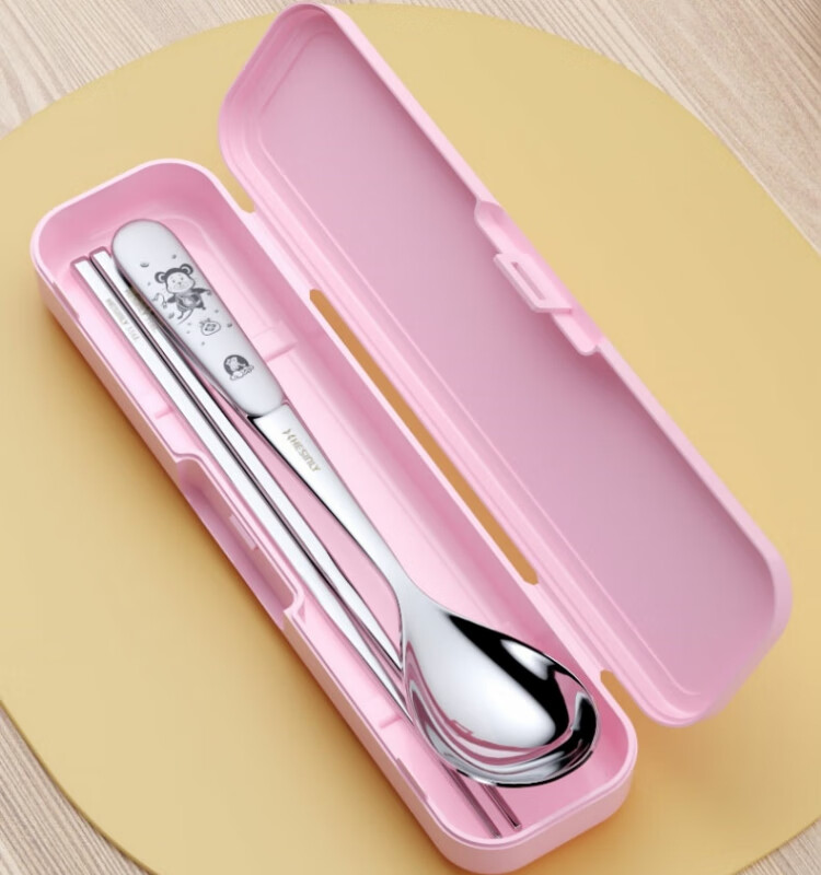 Hexingli 316 stainless steel portable tableware zodiac spoon student chopsticks spoon set work and travel storage box for one person snake spoon + blue box